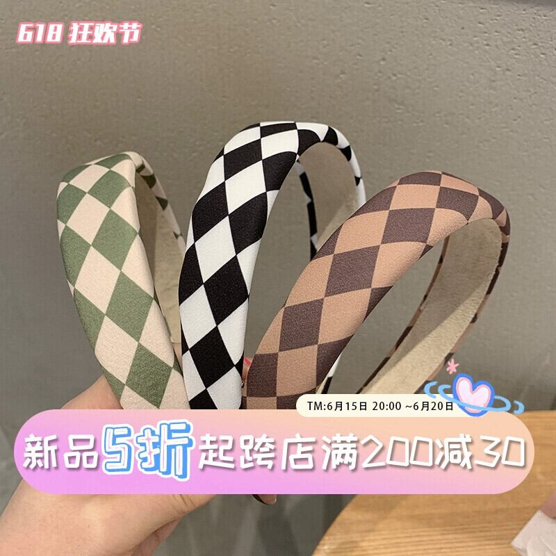 黒と白の市松模様のヘッドバンド女性の夏のハイエンドの洗顔感プレスヘアピンフレンチレトロ y 気質ヘッドバンドヘッドドレス ホワイト ブラック サマー 夏物 ヘアバンド ヘアアクセサリー 15dd79499511268