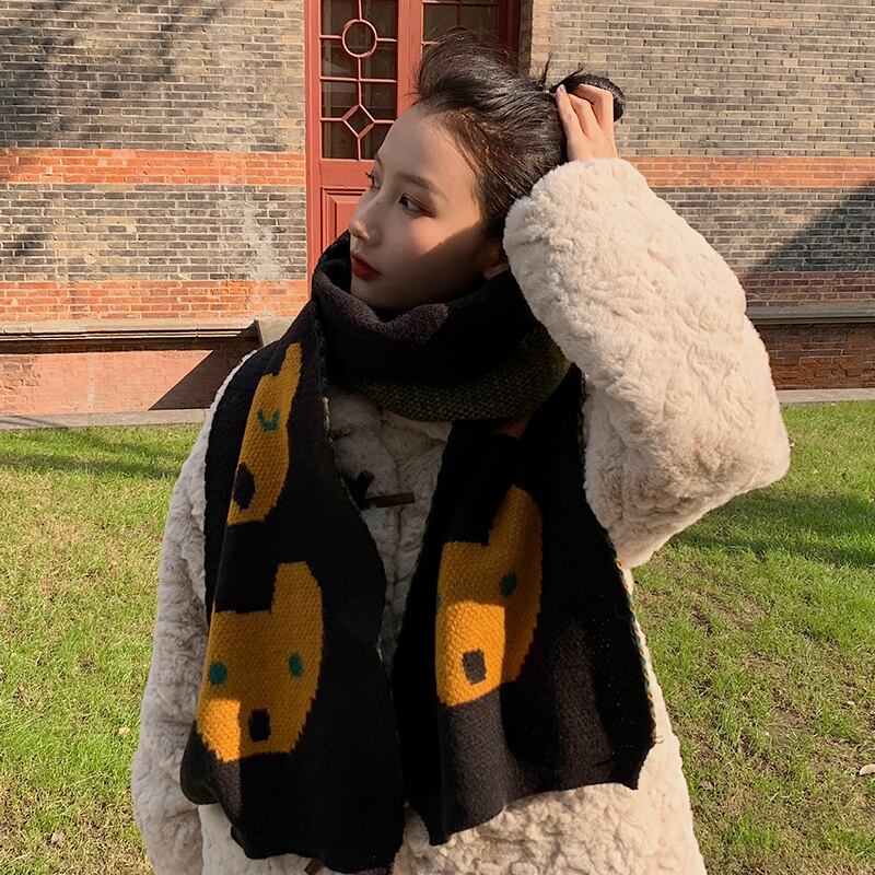 これらのかわいいクマのスカーフ女性の冬バージョンのイン潮オールマッチ冬暖かいニット二重目的ウールスカーフ 大人ガーリー スウィート キュート カジュアル ウィンター 冬物 15dd45767290568
