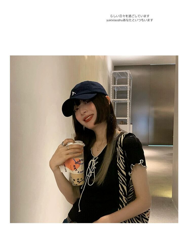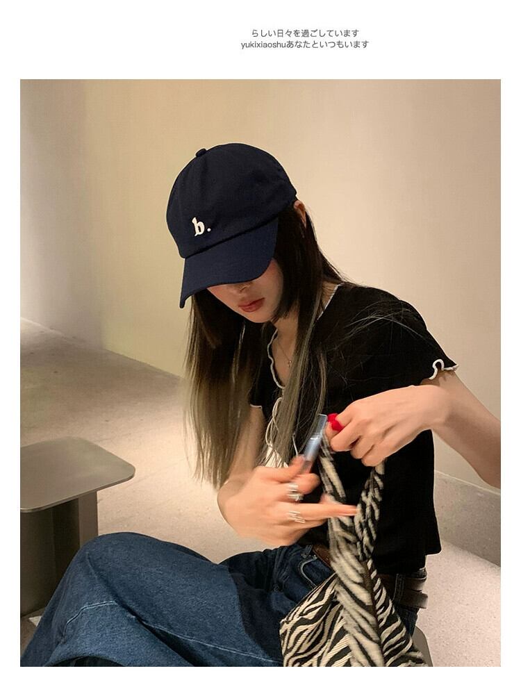 帽子レディースサマーベースボールキャップネットレッドブラックフェイス小文字bひさしキャップソフトトップニッチサンバイザー 夏物 15dd19284413887