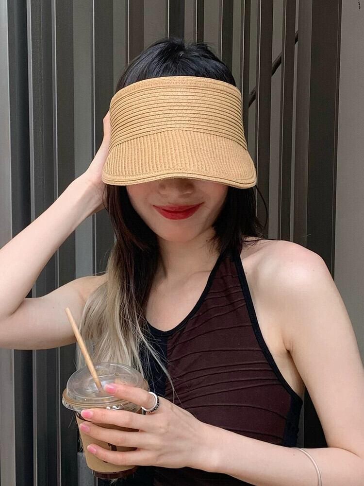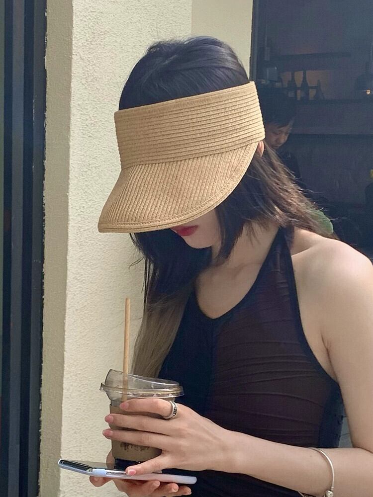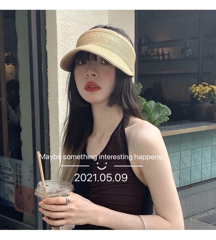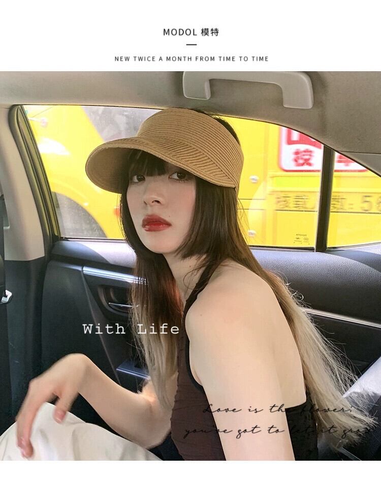 麦わら帽子女性夏空のトップトップなし UV 日焼け防止日焼け止め帽子旅行休暇ファッション顔日焼け止め帽子 サマー 夏物 15dd24561448513