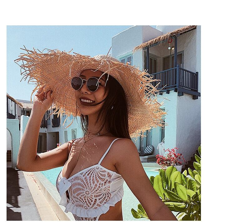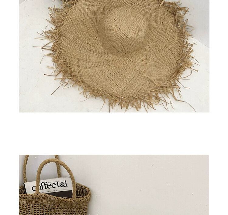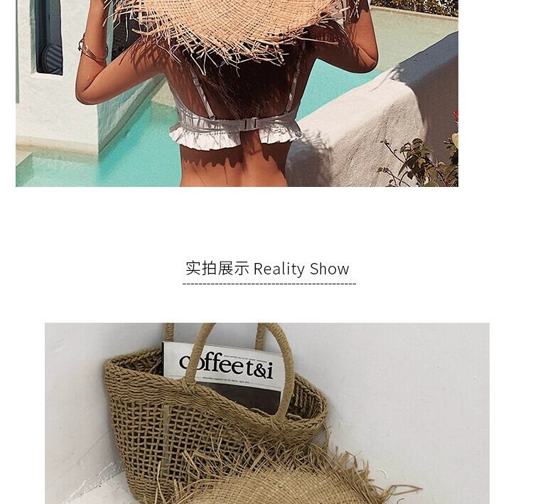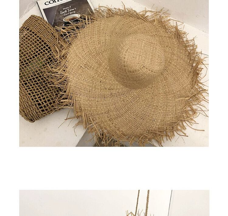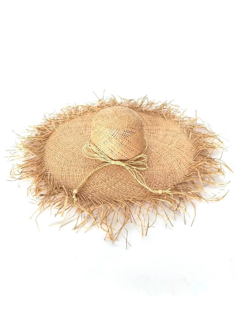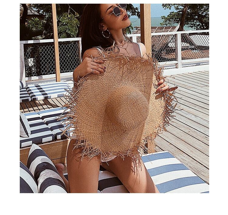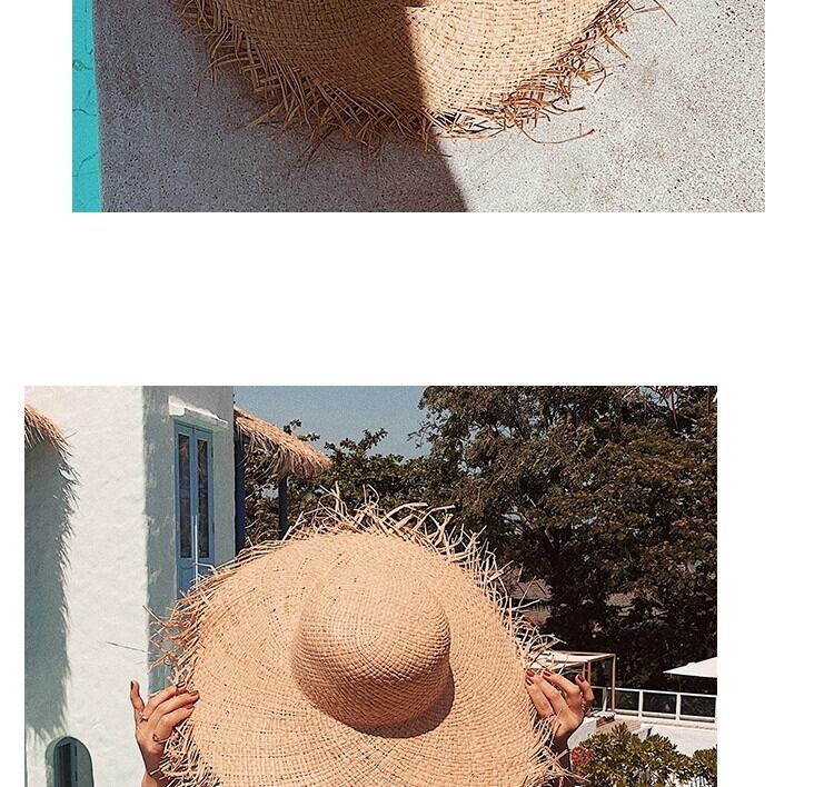 夏イン旅行休暇風ラフィア麦わら帽子女性大きなつばサンシェード日焼け止め毛皮エッジ気質ビーチ帽子 サマー 夏物 15dd69569559454
