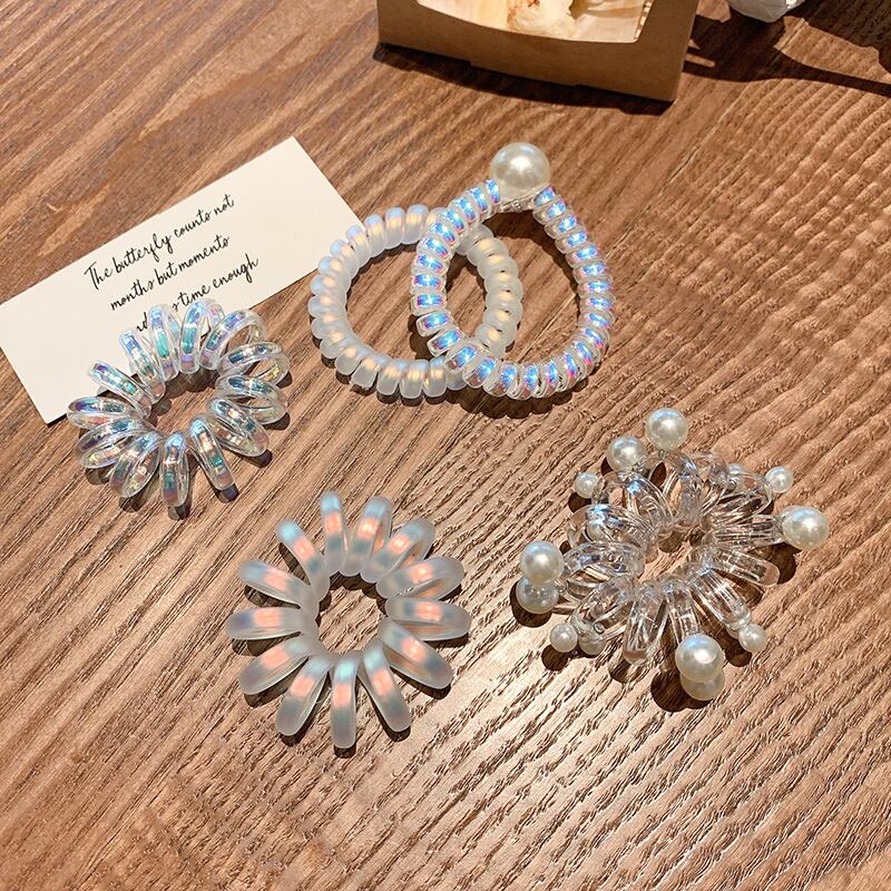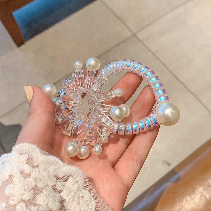 色:大型電話回線,小さな透明なヘアバンド,パール電話回線,小さな白い髪のネクタイ,小さな真珠の髪のネクタイ