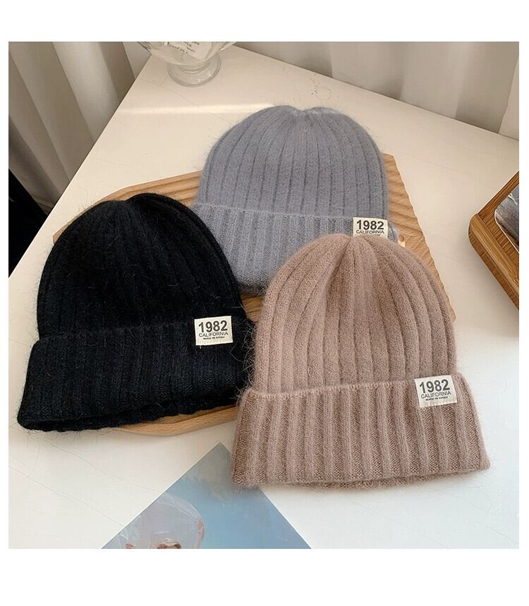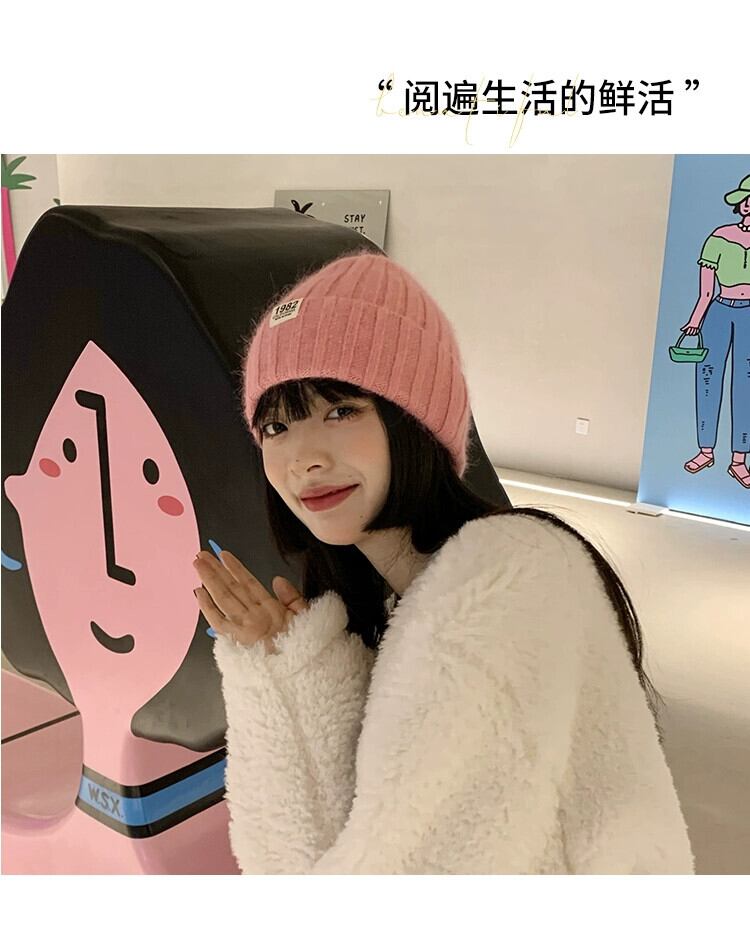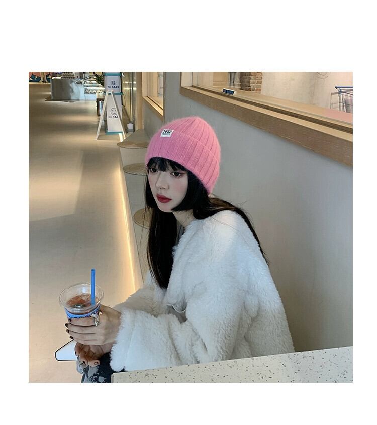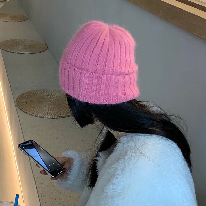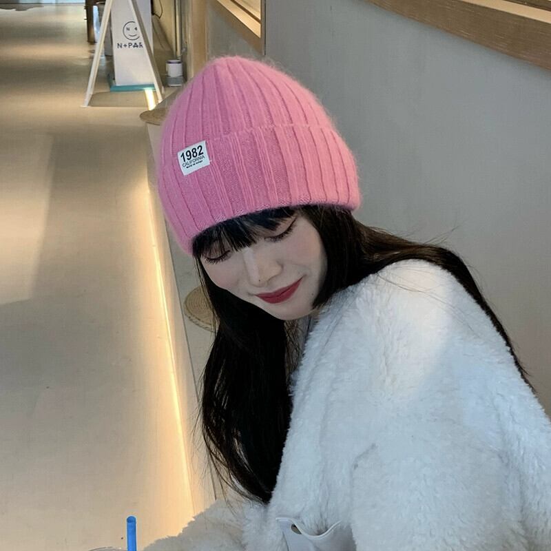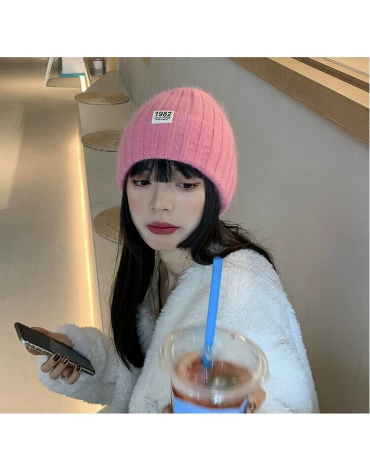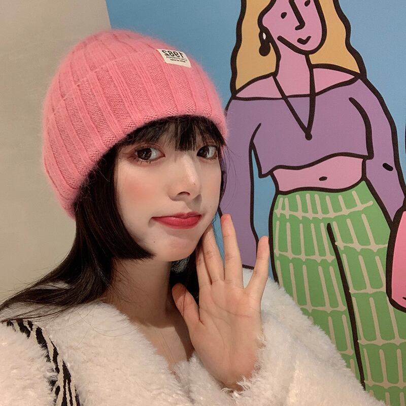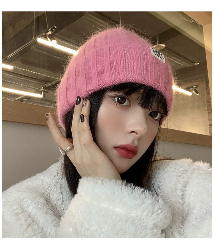 帽子の女性の秋と冬バージョンのイン潮オールマッチ無地ラビットファーニット帽子冬厚く暖かい耳保護ウール帽子 オータム 秋物 ウィンター 冬物 ソリッドカラー 15dd26446164619