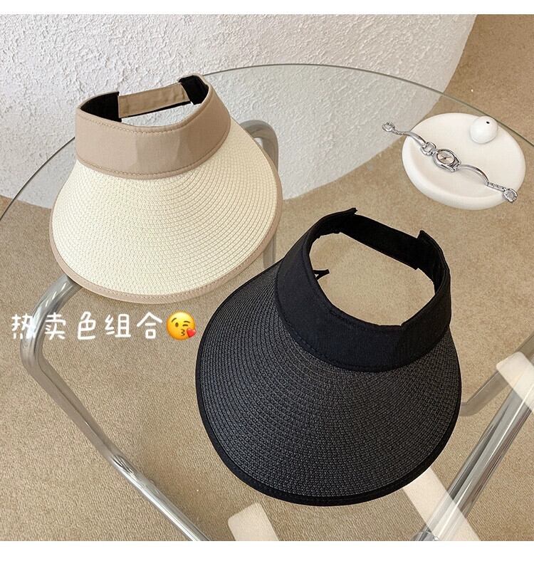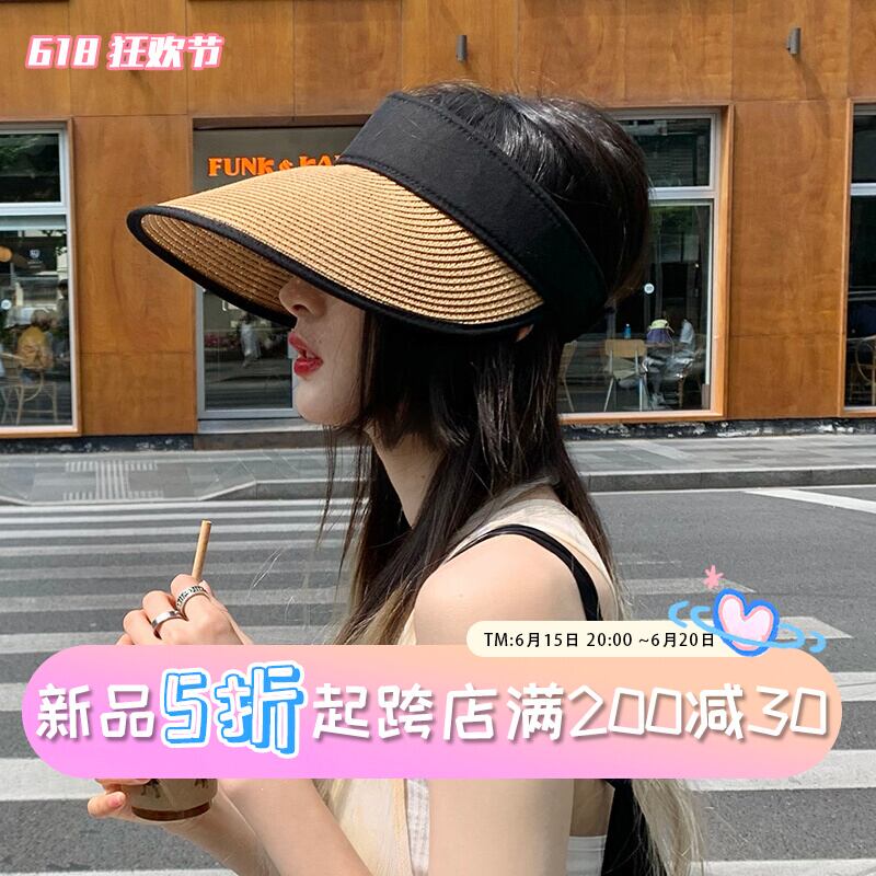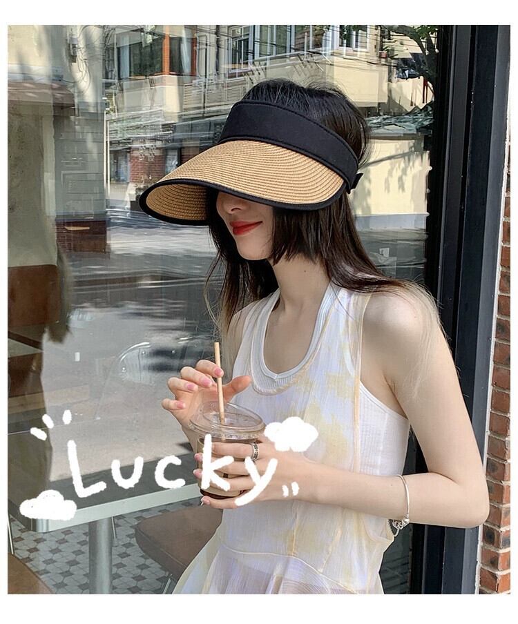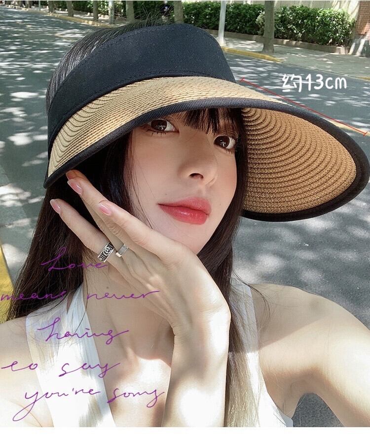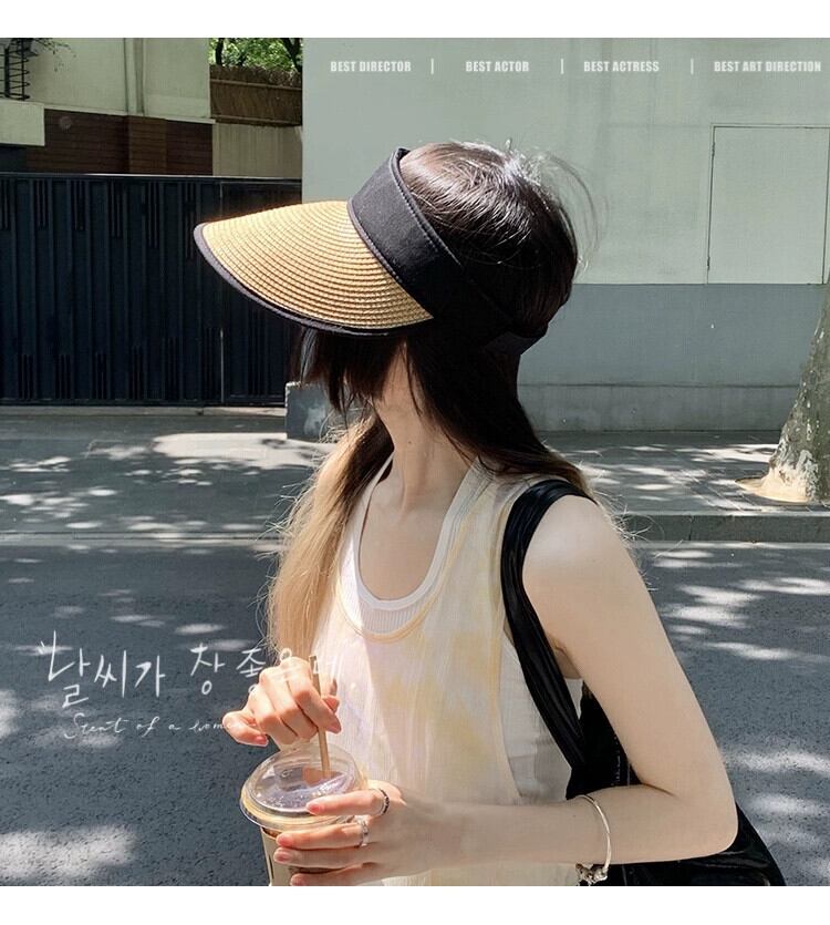 折りたたみ空のシルクハットサンハット夏オールマッチ日焼け止め麦わら帽子女性の夏の新しい屋外休暇トップレスビーチハット サマー 夏物 15dd62483658442
