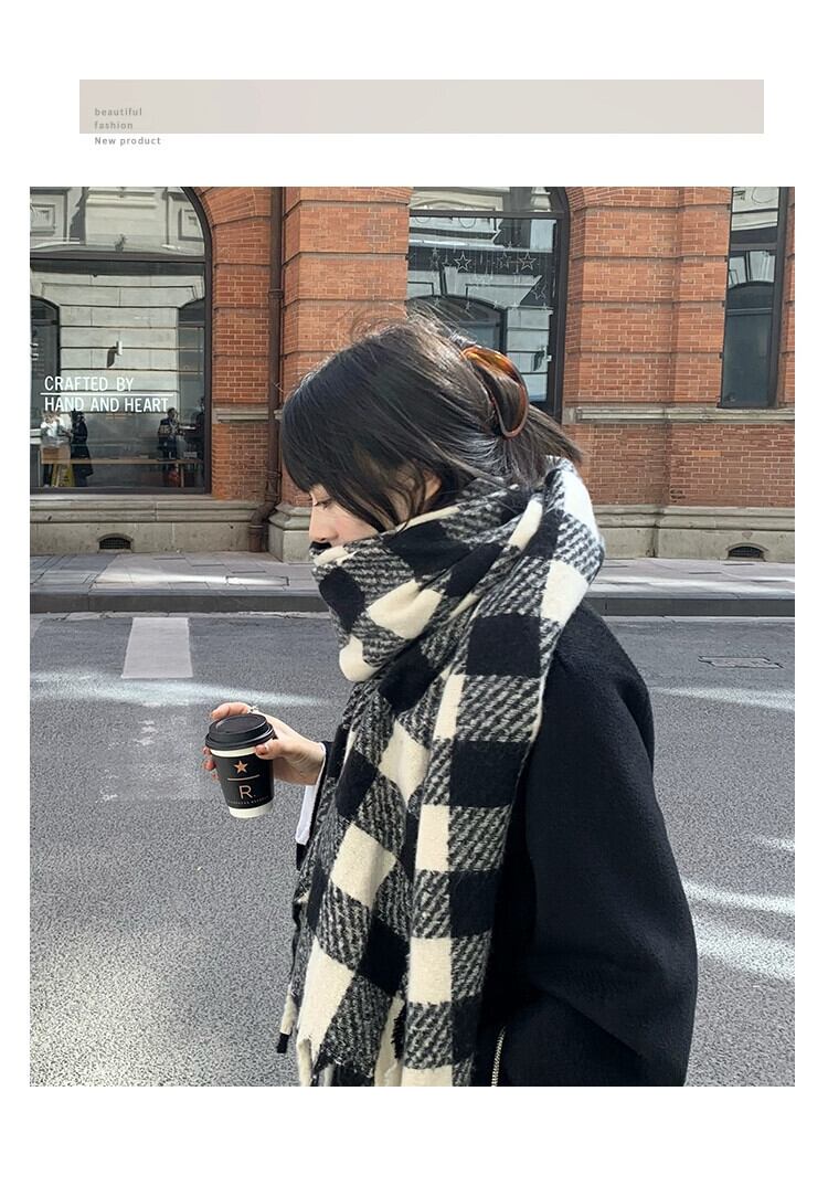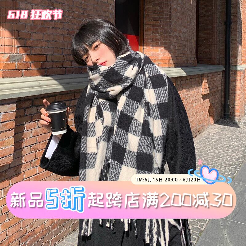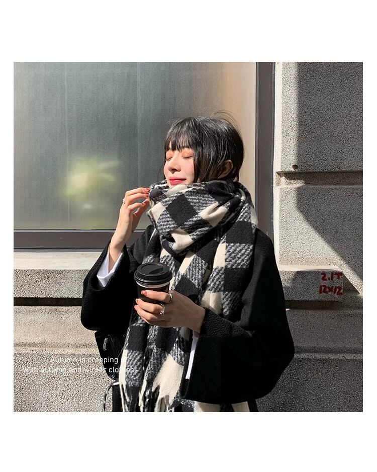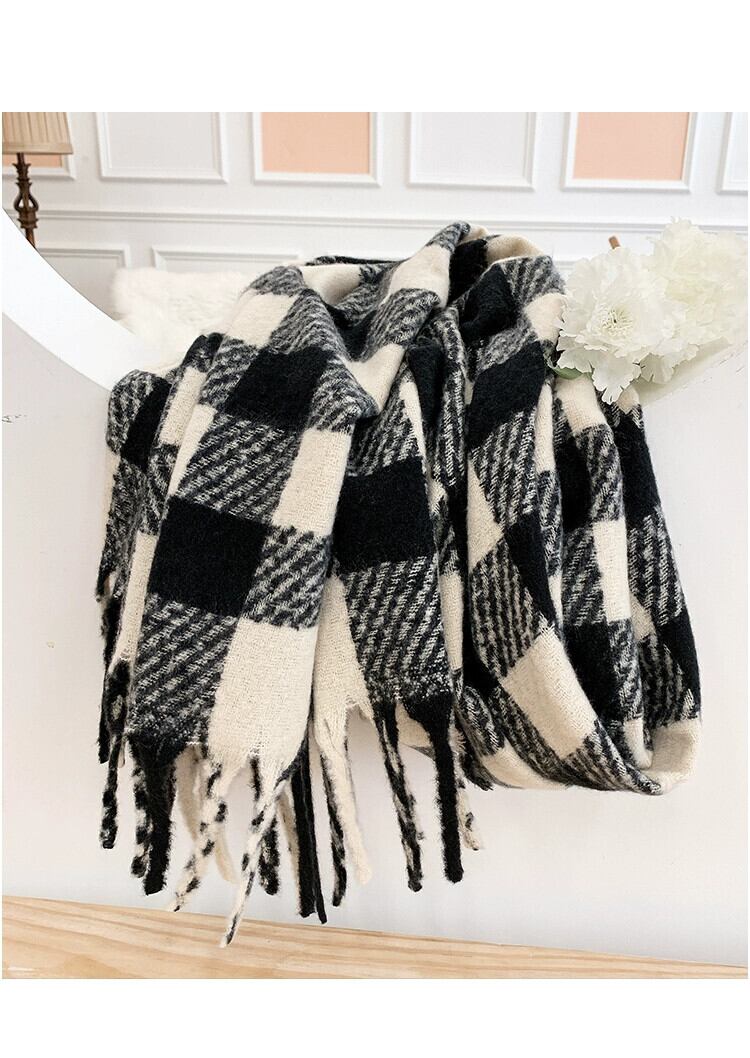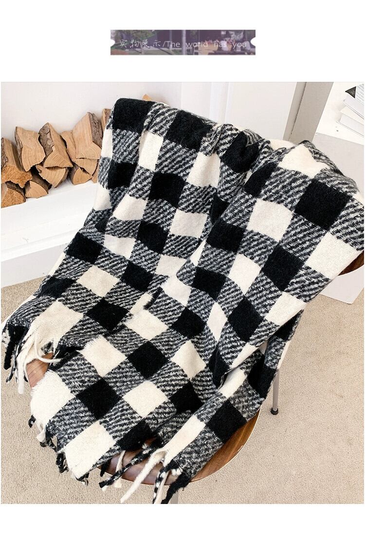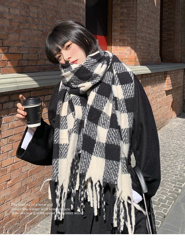 黒と白のチェック柄スカーフ女性の冬英国クリックチェック柄模造カシミヤバージョンオールマッチ暖かい 2022 新しいトレンド ホワイト ブラック ウィンター 冬物 15dd93327149618
