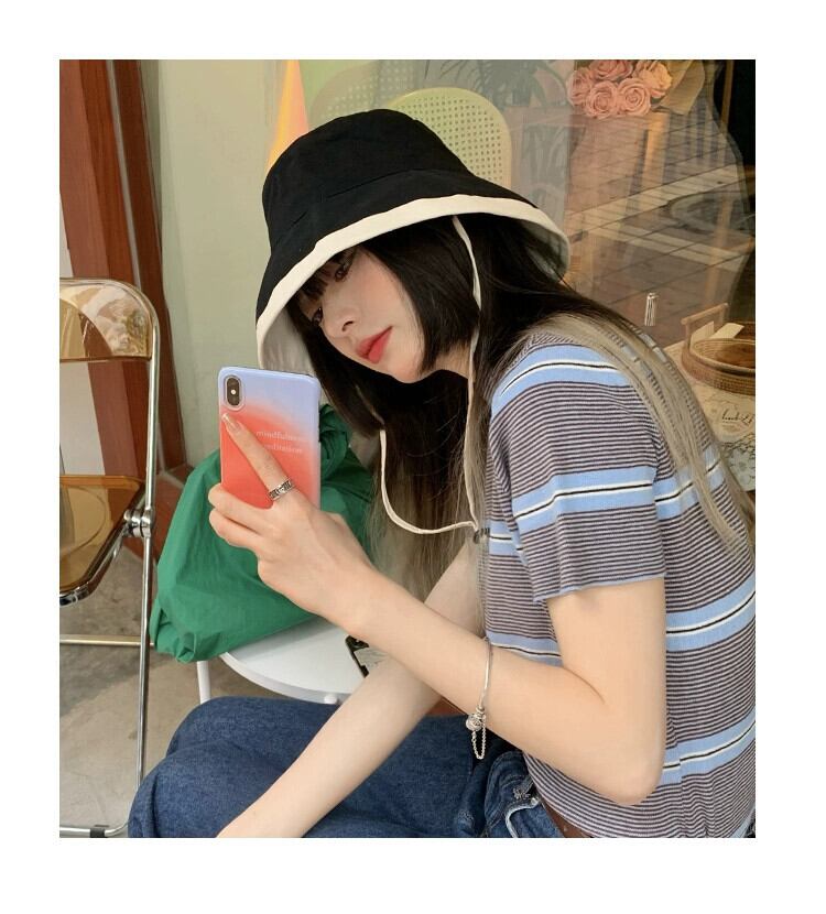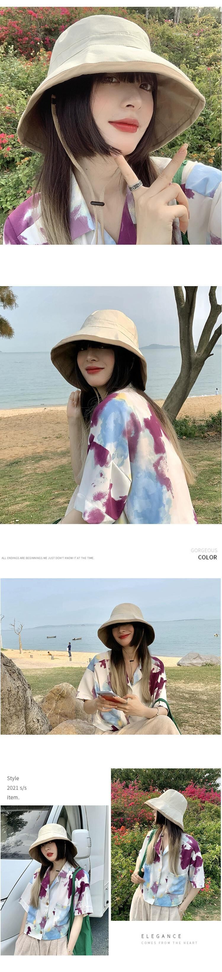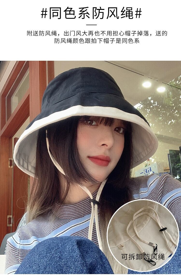 帽子女性の夏の日焼け止め帽子漁師の帽子防風ロープ抗紫外線日よけ顔日よけ帽子 2021 新しい サマー 夏物 15dd83480261003