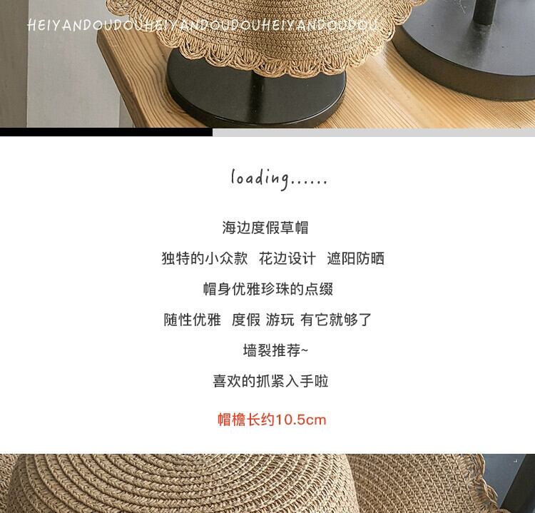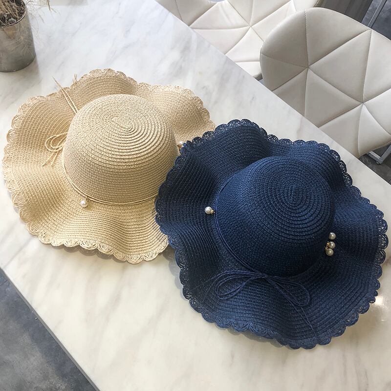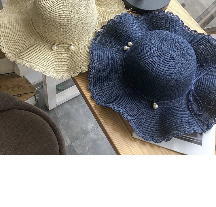 帽子 レディース 夏 小さなフレッシュウェーブ 大きなつばの麦わら帽子バージョンのワイルドパール カジュアル 日焼け止め ビーチ サンバイザー 潮 サマー 夏物 真珠 15dd4076660532