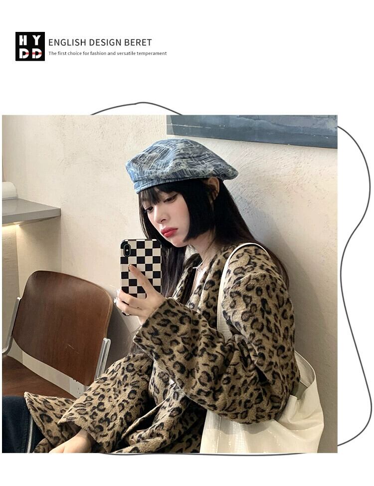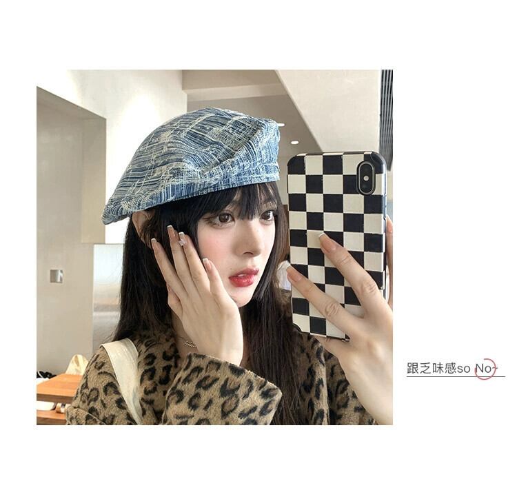 ese レトロデニムベレー帽女性トレンディなイン春と秋のスタイルストリート撮影ファッションネット赤大きな頭囲ペインター帽子夏 レッド スプリング 春物 サマー 夏物 オータム 秋物 ベレット ヘアアクセサリー 15dd31963448419