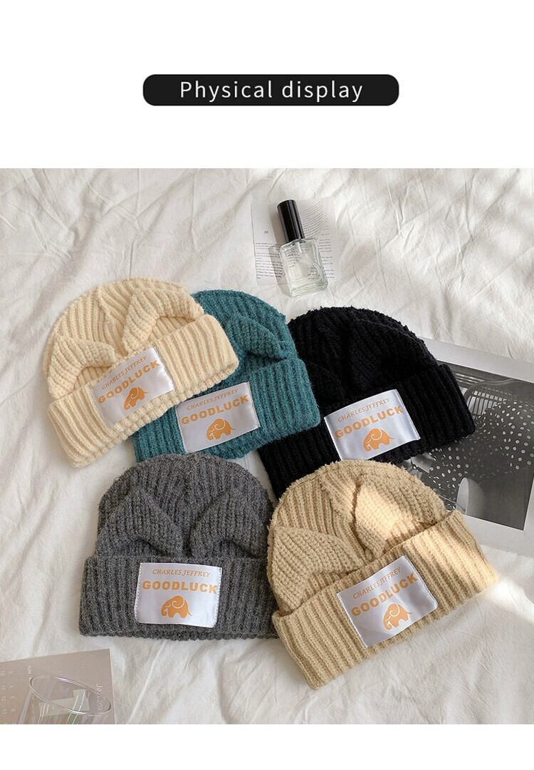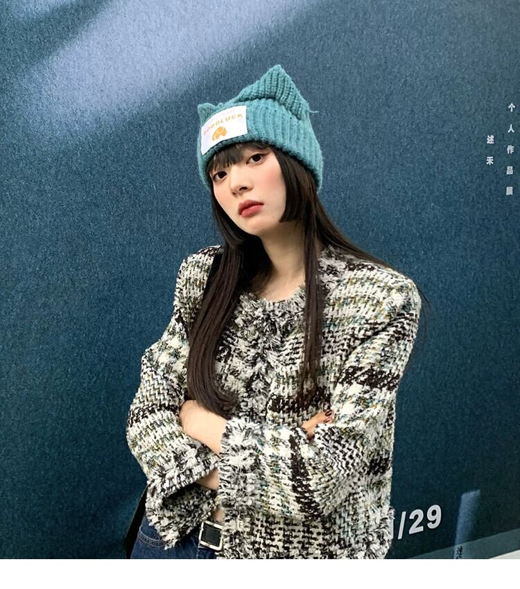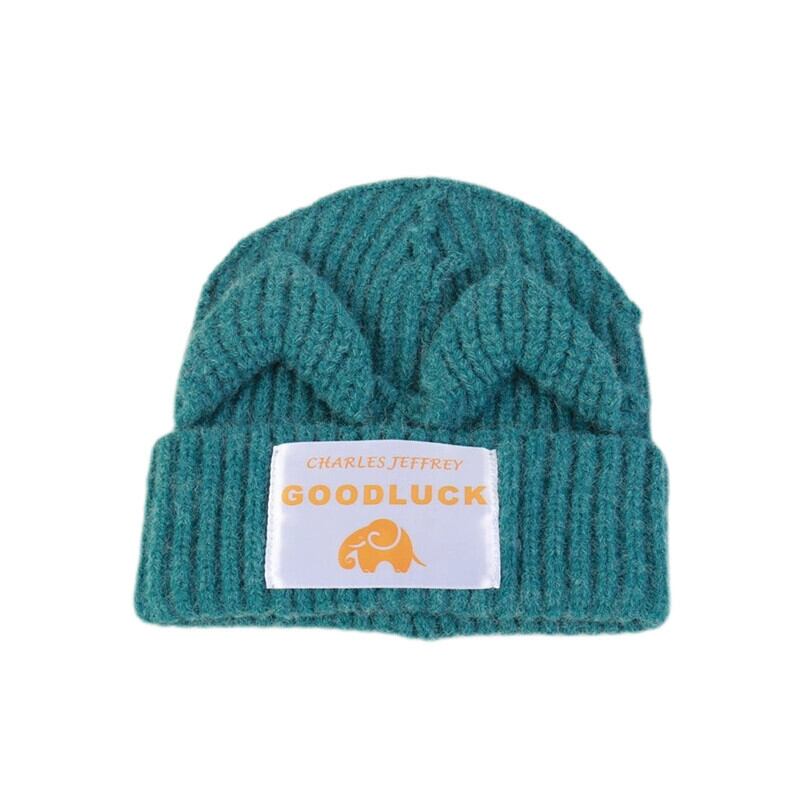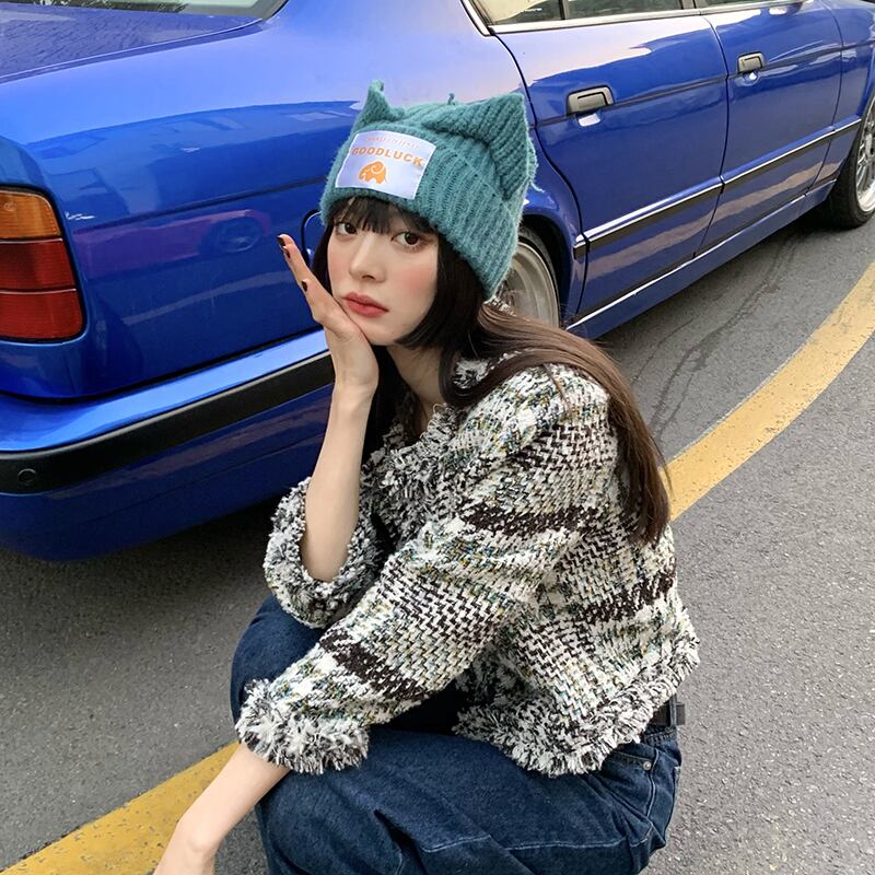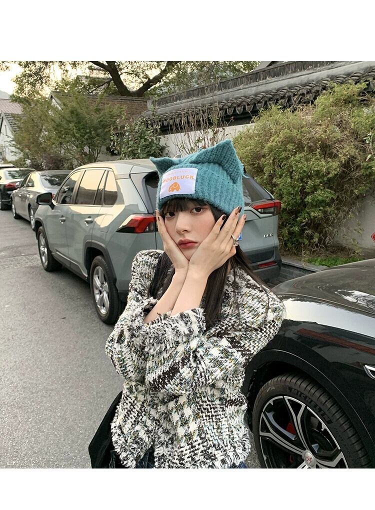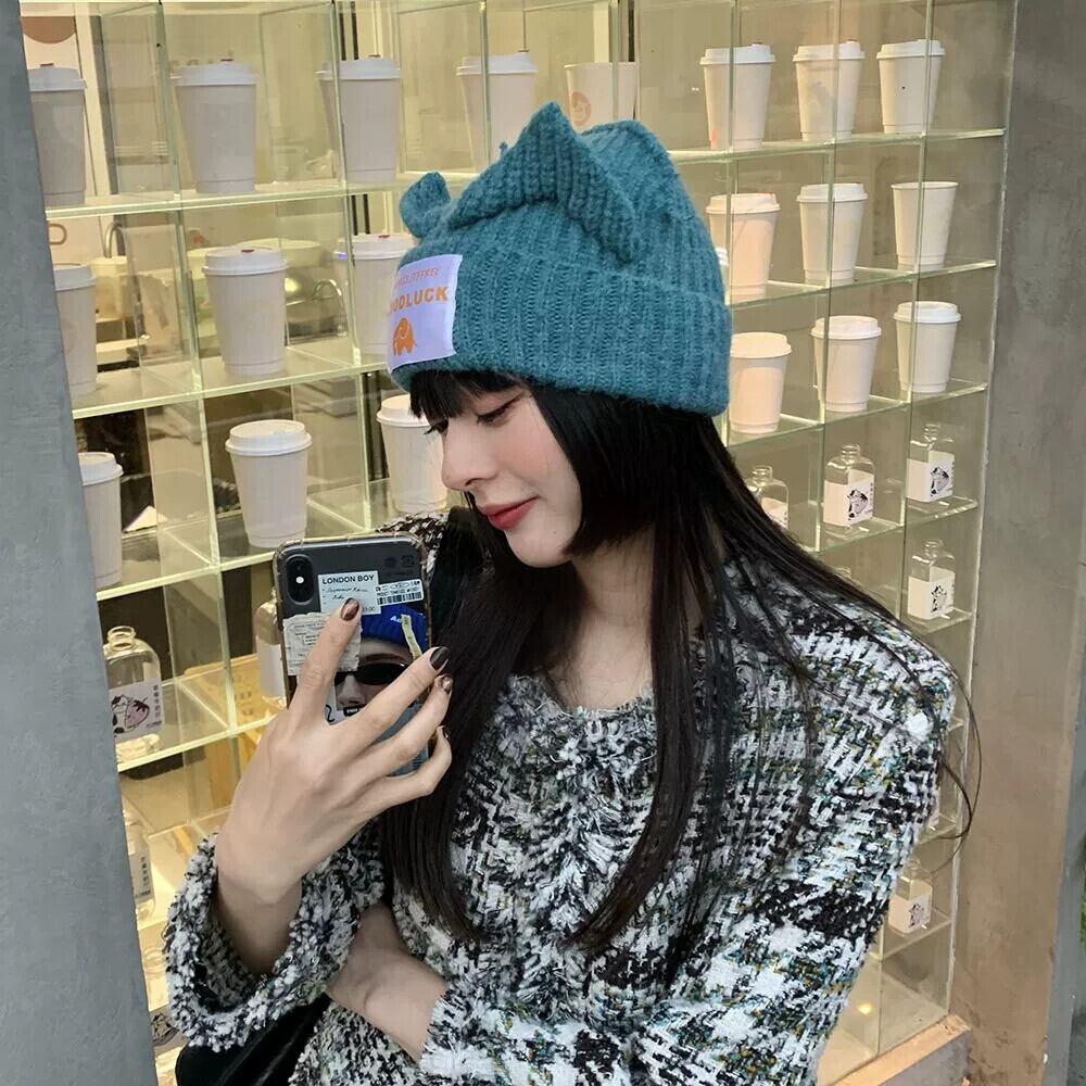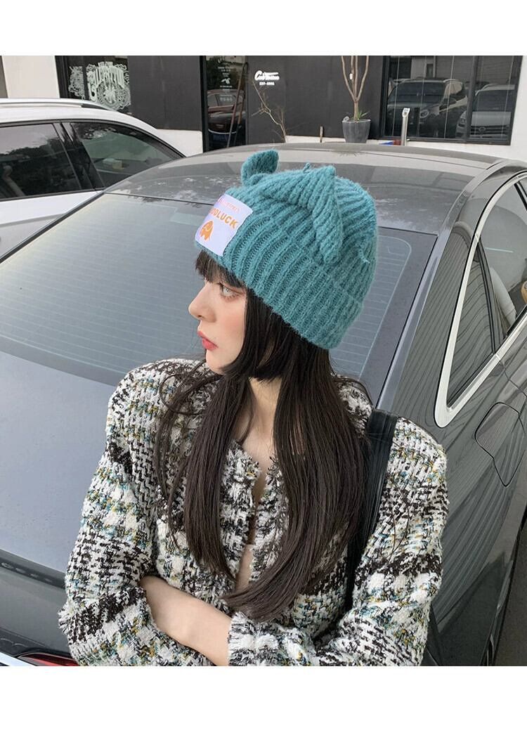 イン潮かわいい猫耳パッチ青いウールの帽子女性冬甘い暖かいニット帽子 ブルー 大人ガーリー スウィート キュート カジュアル ウィンター 冬物 15dd16226536179