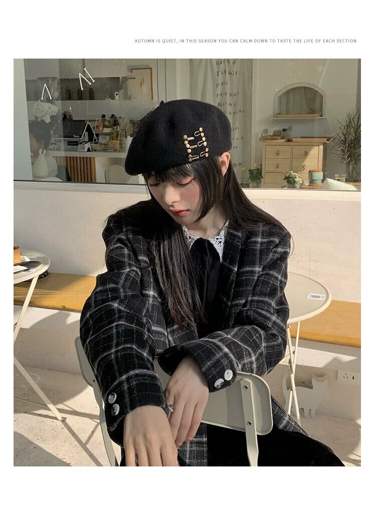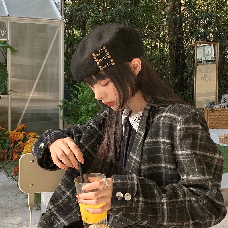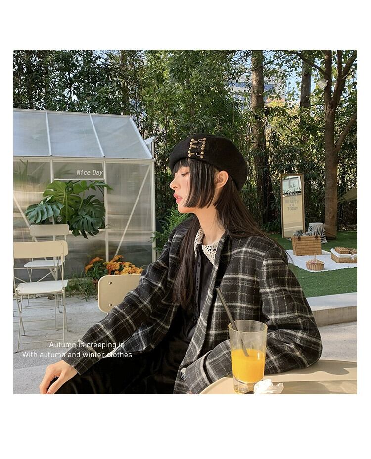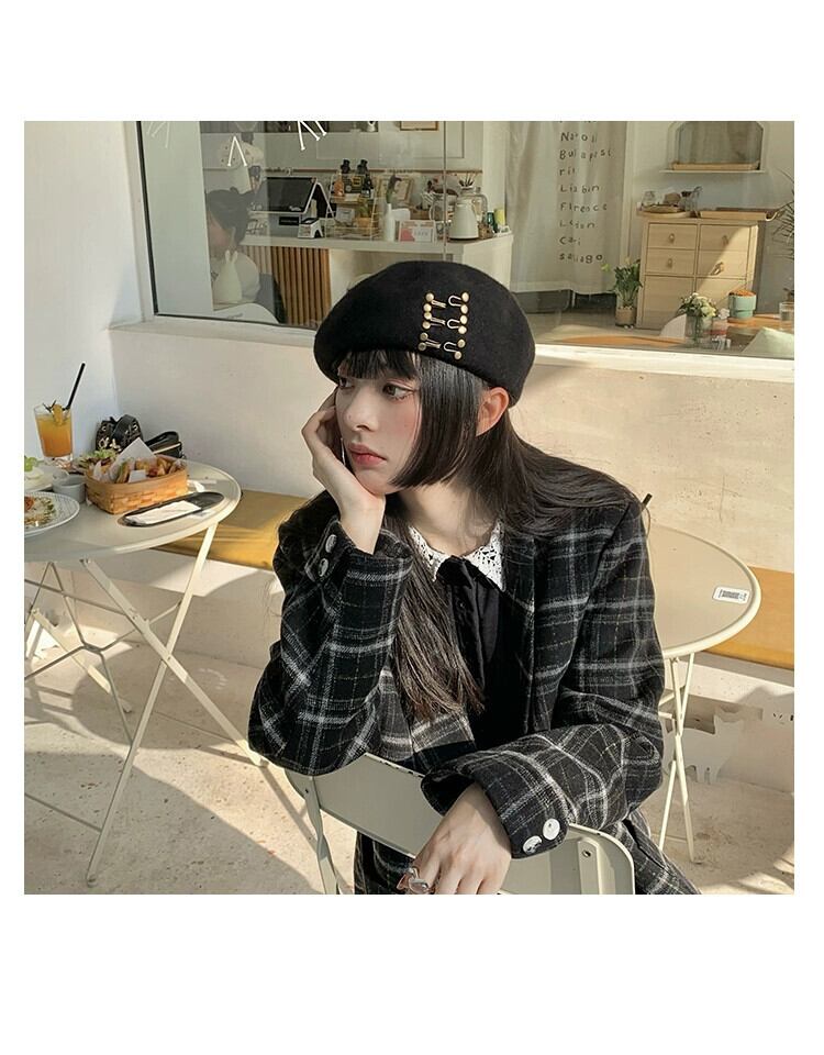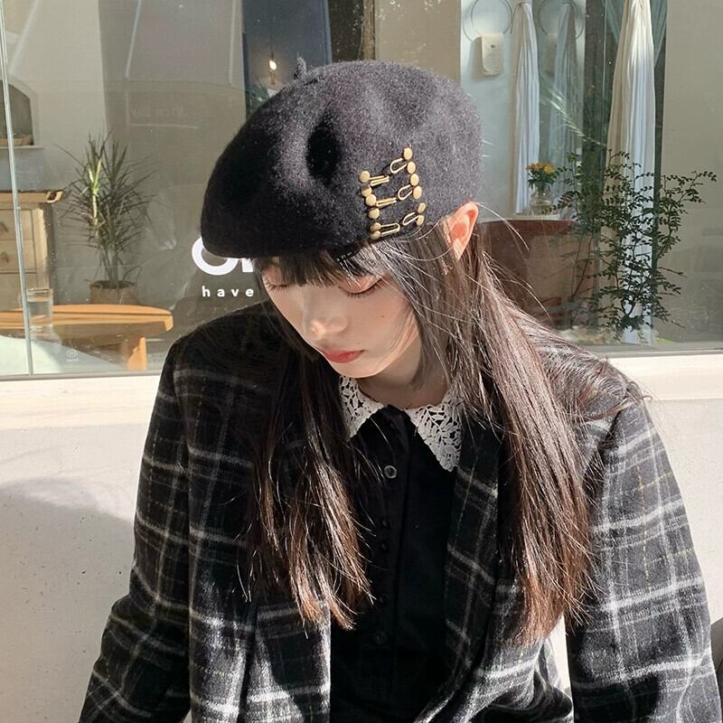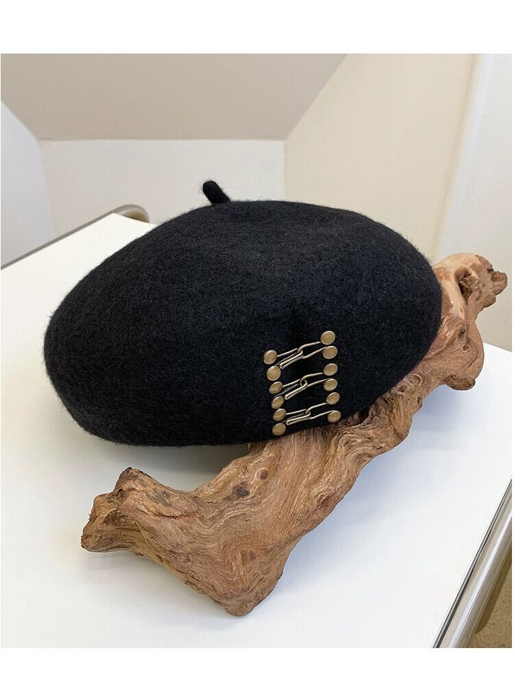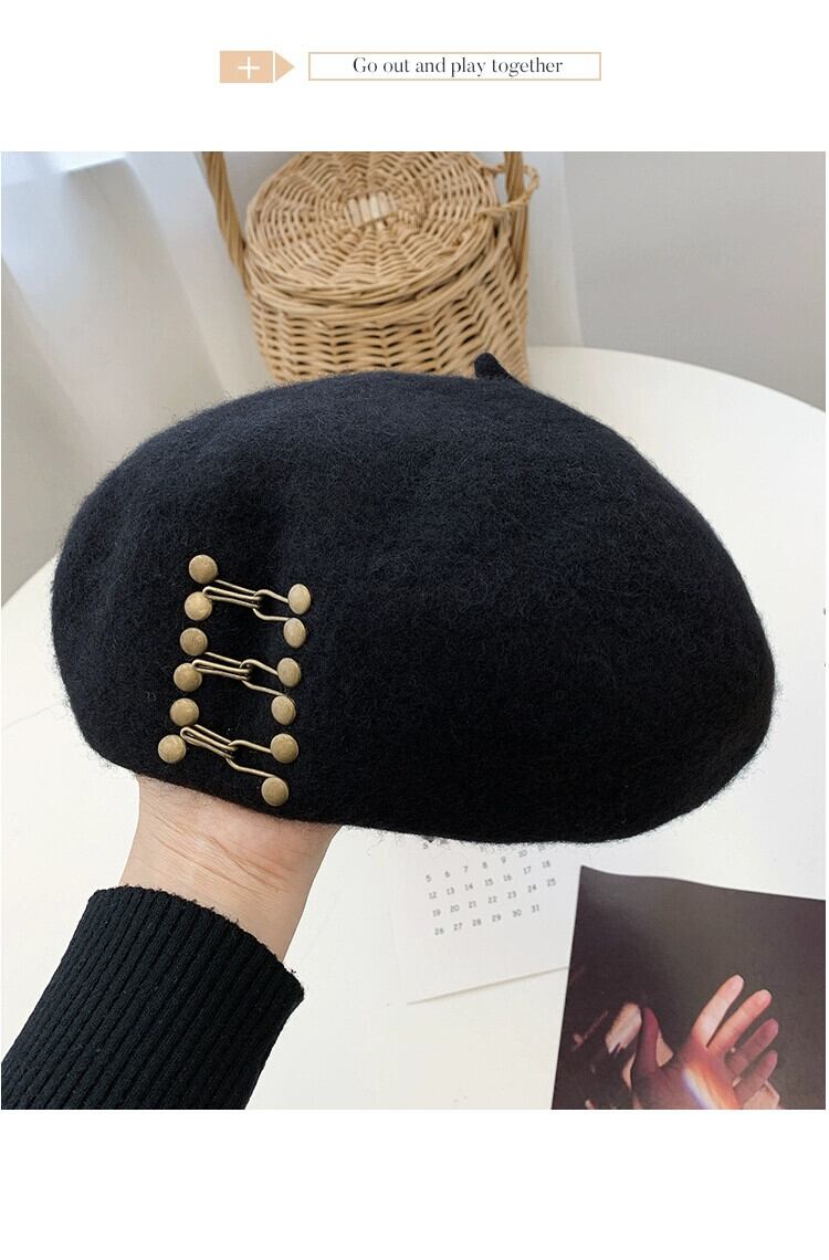-高品質の秋冬ウールのペインターキャップ、手作りメタルバックルの女性用バージョン、英国のレトロな個性ネットレッドベレー帽。 オータム 秋物 ウィンター 冬物 ベレット ヘアアクセサリー 15dd89605178867