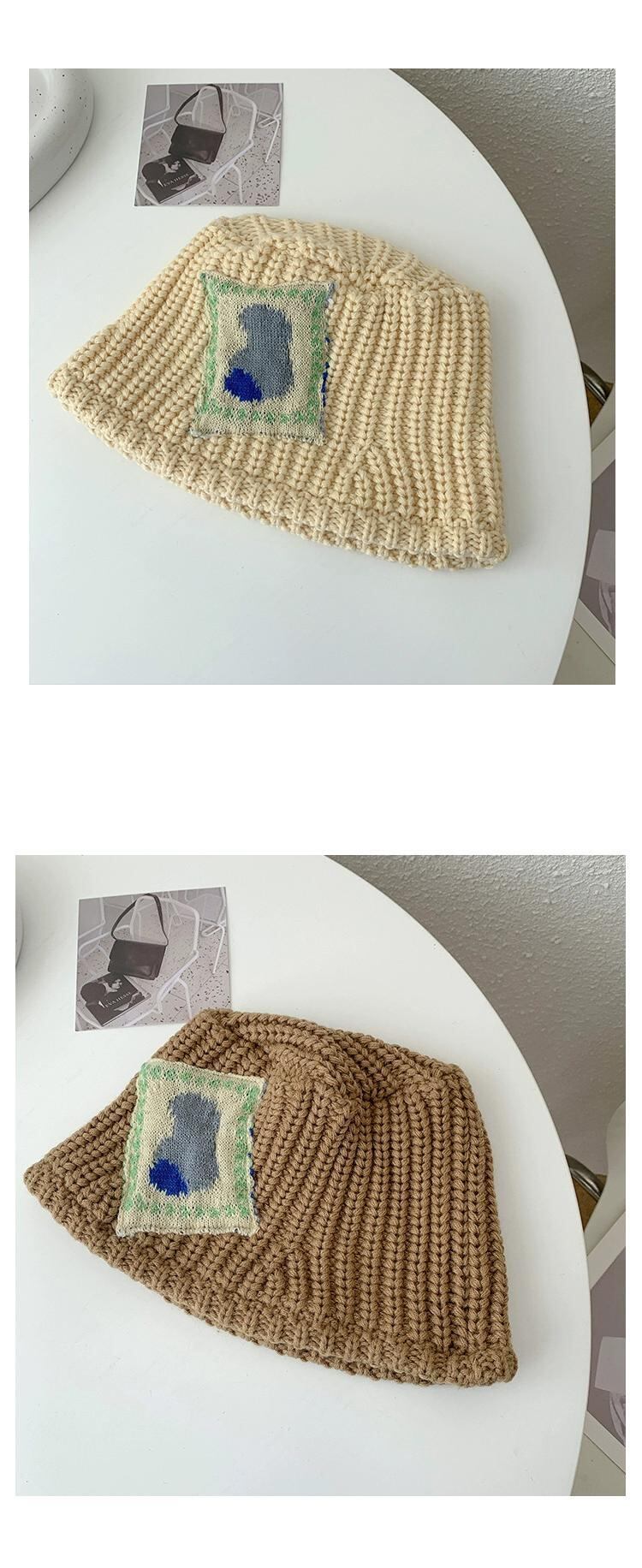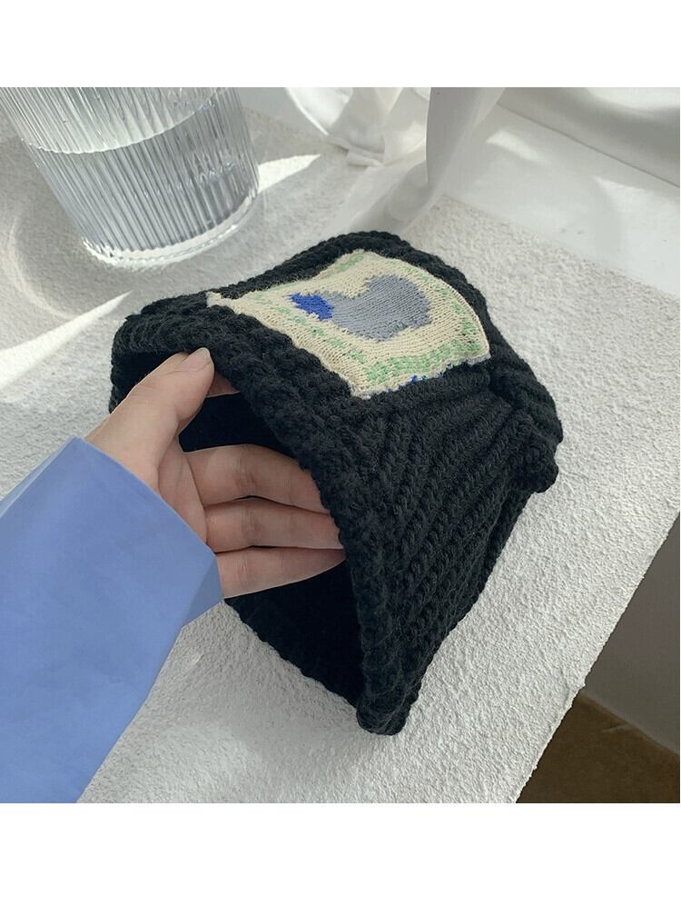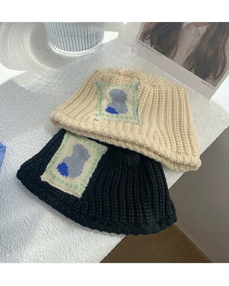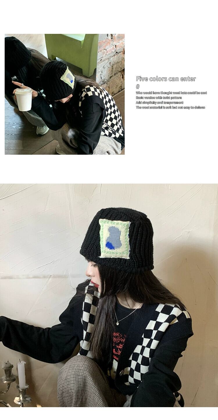ins パッチのバージョンのウール帽子女性の秋と冬オールマッチ黒ニット帽子顔見せ小さな暖かい耳保護バケットハット ブラック オータム 秋物 ウィンター 冬物 15dd51259666555