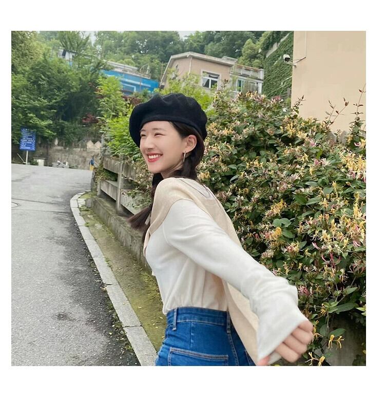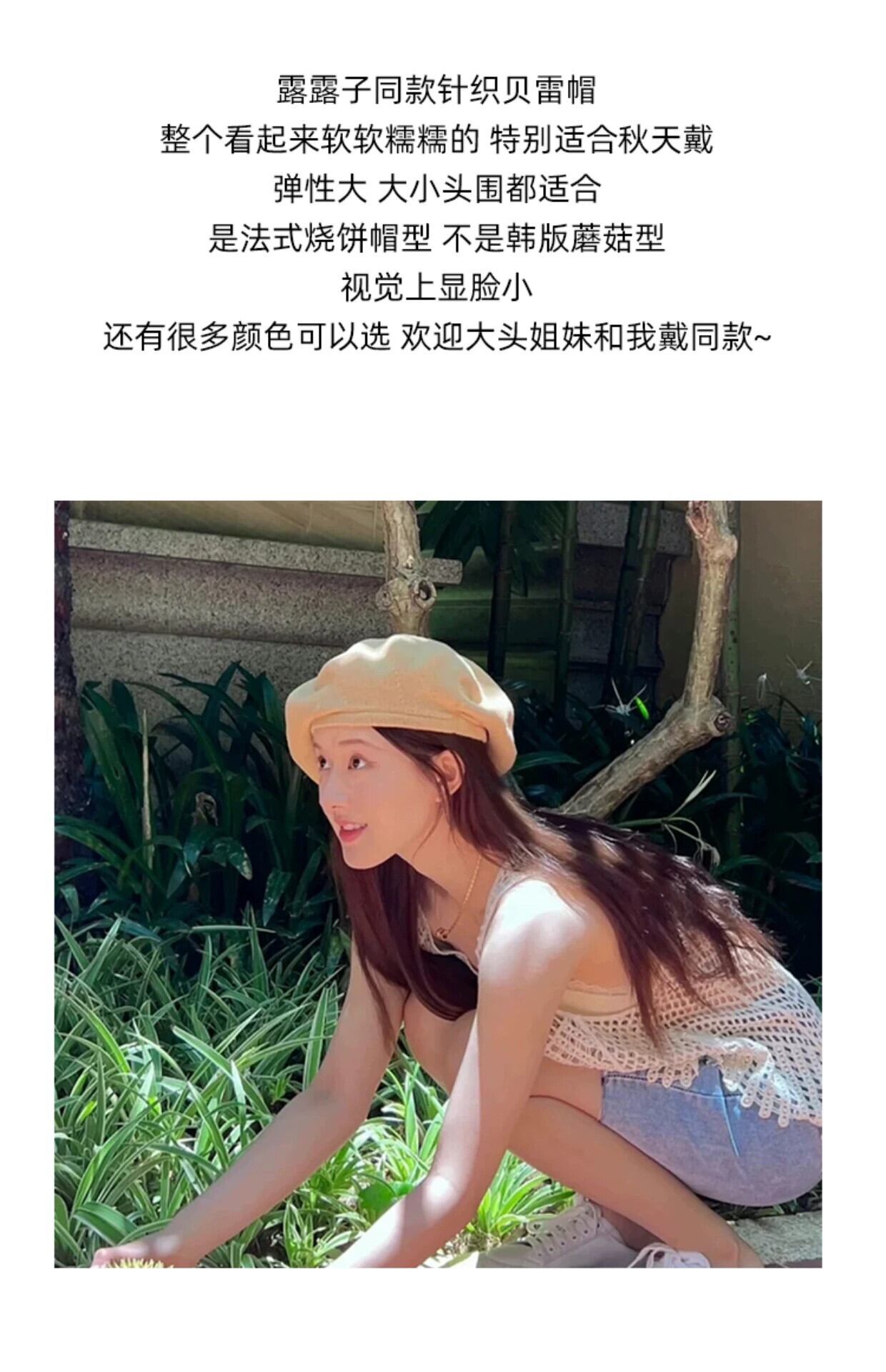 Zhao Lusiの同じニット帽秋冬英国レトロ大きな頭囲ウールビーズ帽子オールマッチショーフェイス小さな画家の帽子 オータム 秋物 ウィンター 冬物 15dd58233097176