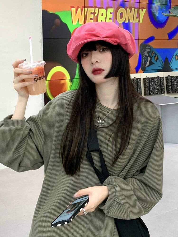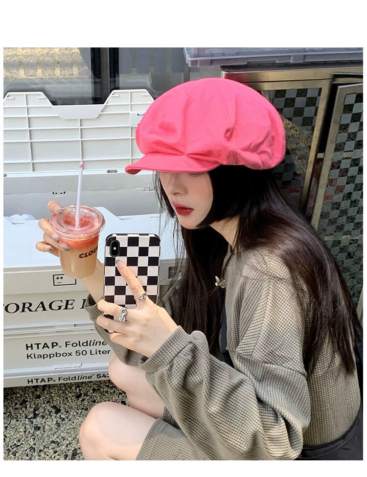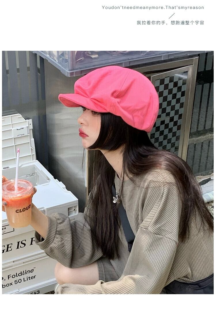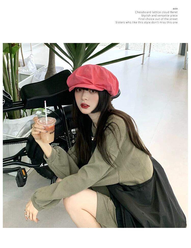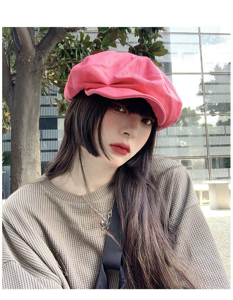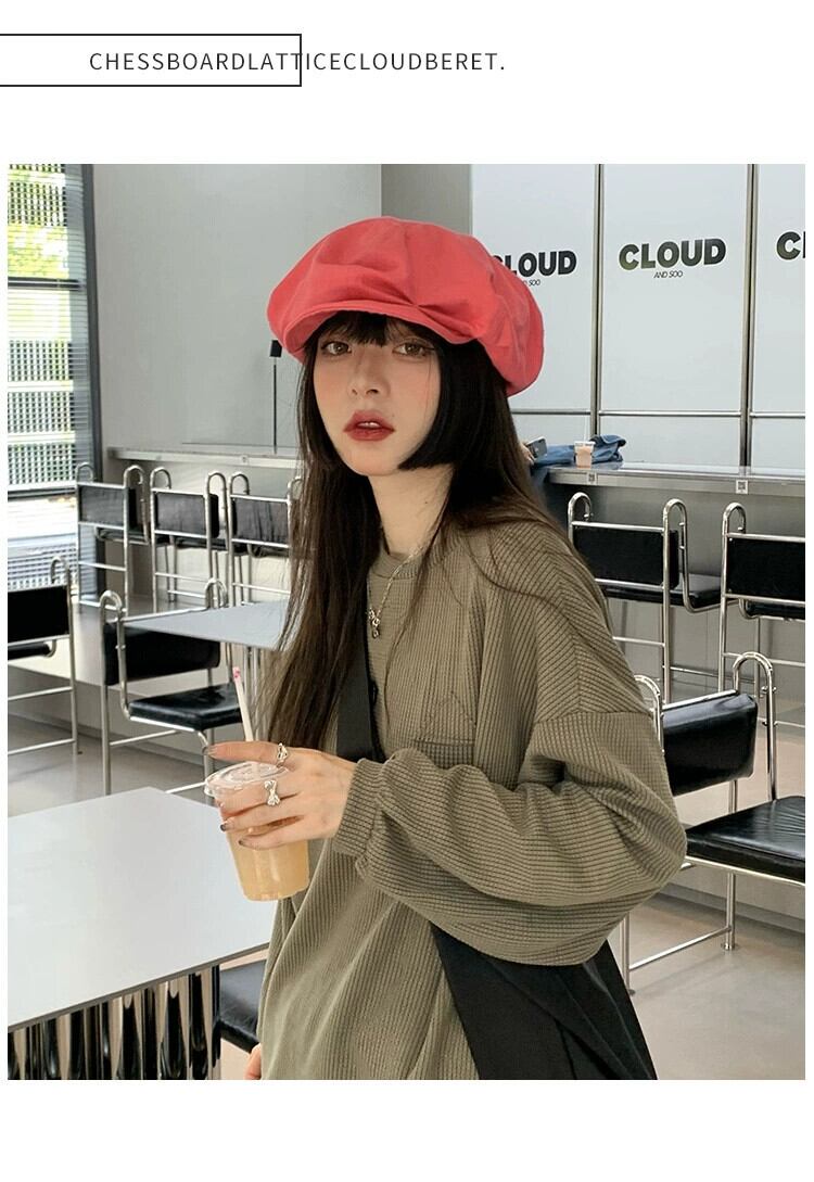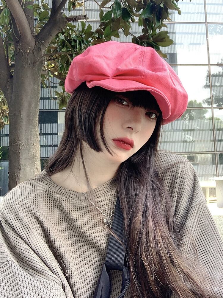 大きな頭雲ベレー帽女性春と秋インネット赤ショー顔小さなバラ赤いアヒルの舌八角形の帽子レトロ画家の帽子 レッド スプリング 春物 オータム 秋物 ベレット ヘアアクセサリー 15dd3025123125