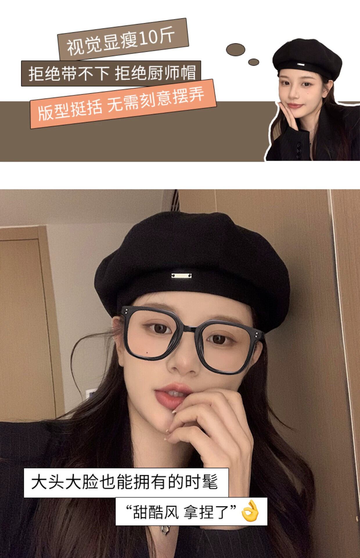 黒ベレー帽女性の秋と冬インネット赤ペインター帽子 ese シリーズ顔小八角帽子大きな頭囲 レッド ブラック オータム 秋物 ウィンター 冬物 ベレット ヘアアクセサリー 15dd59471441561