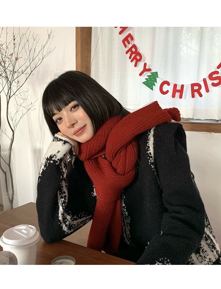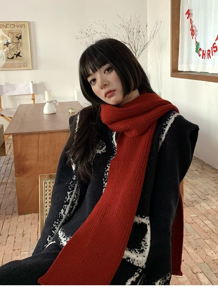 スカーフ女性冬かわいいバージョンの野生のイン潮学生ニットウールカップル暖かい赤いスカーフ レッド 大人ガーリー スウィート キュート カジュアル ウィンター 冬物 15dd43929314440