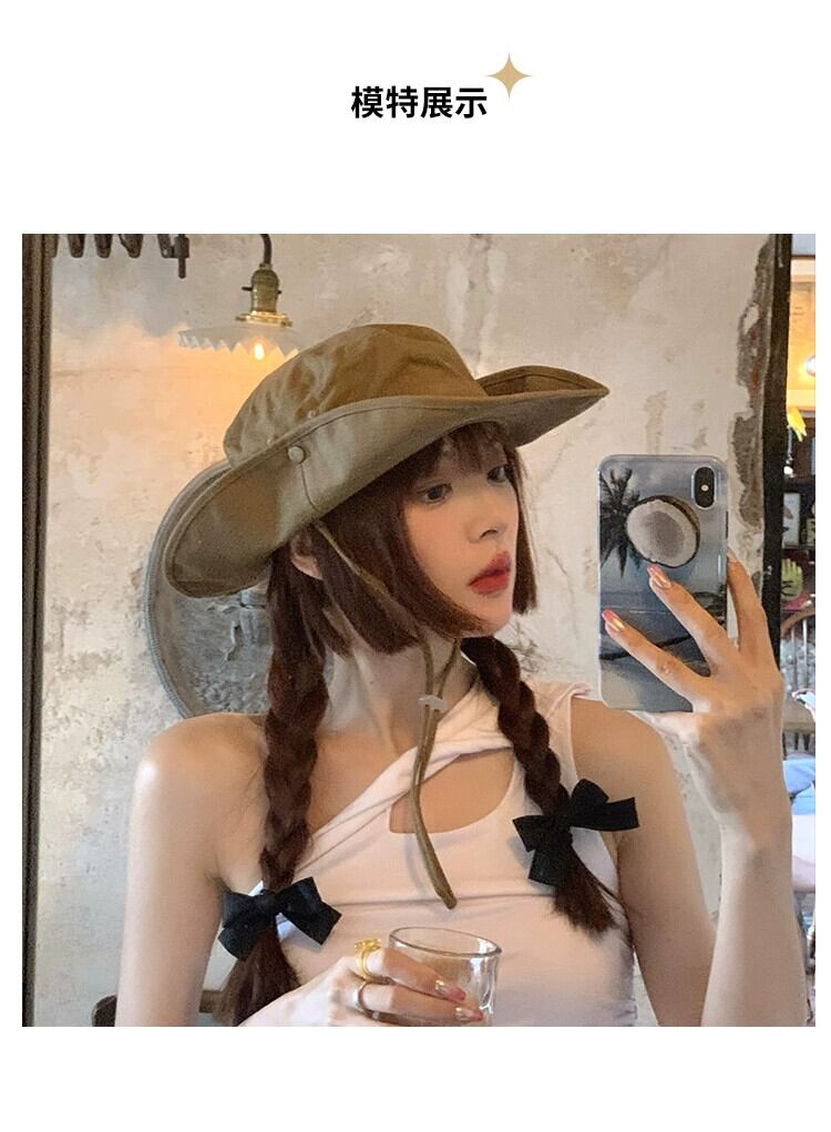 ウエスタンカウボーイハット女性の夏の巾着漁師の帽子男性の休暇大きなつばの太陽の帽子屋外釣りや登山の日よけの帽子 サマー 夏物 15dd51584938529