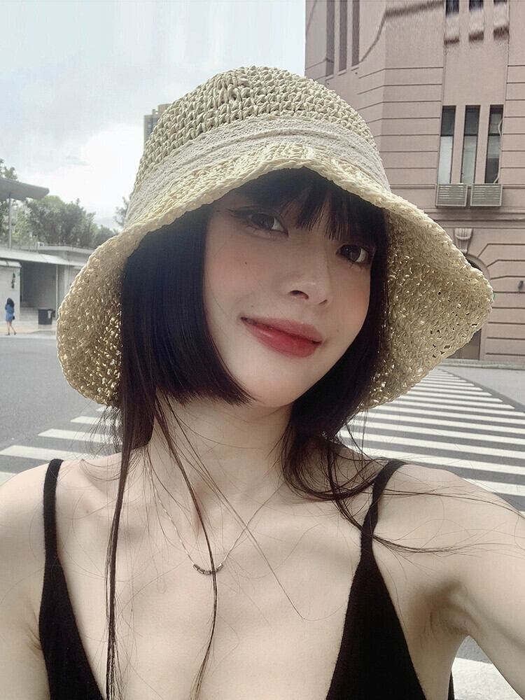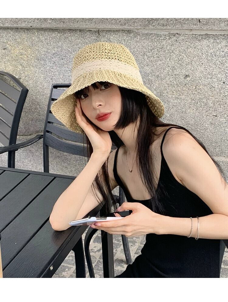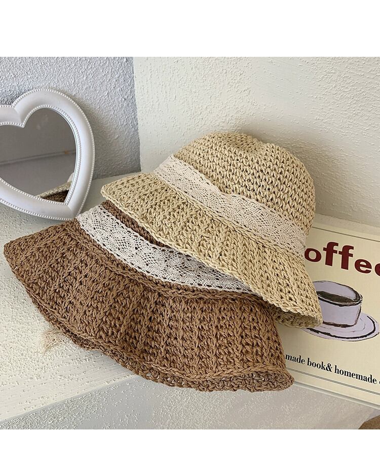ネット赤い麦わら帽子女性のレースレースビーチヘップバーンスタイルホリデー ese 小さな新鮮な日焼け止めサンシェード日よけ帽子夏 レッド サマー 夏物 15dd36610619775