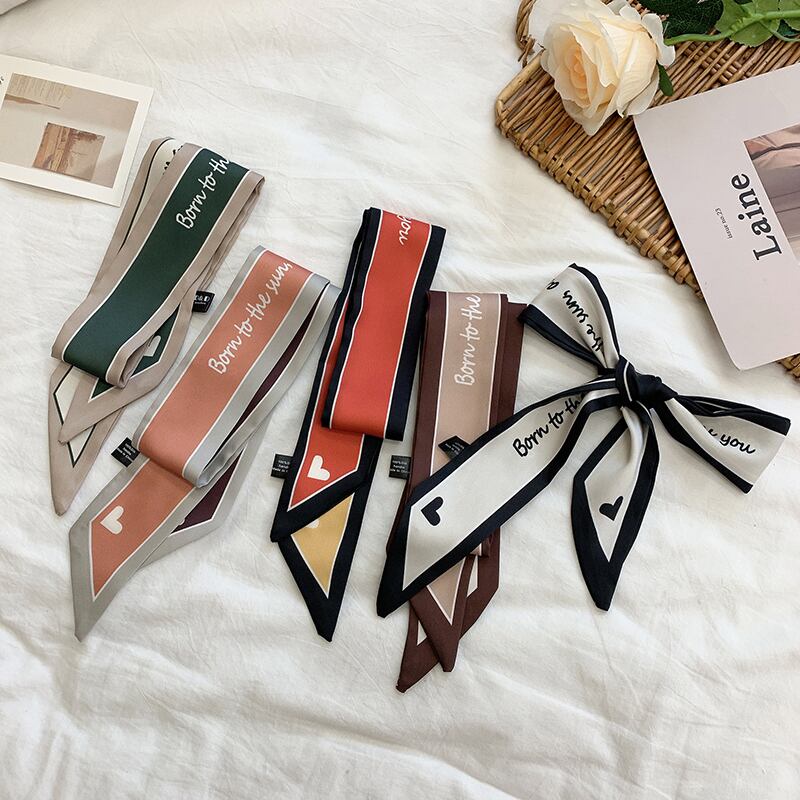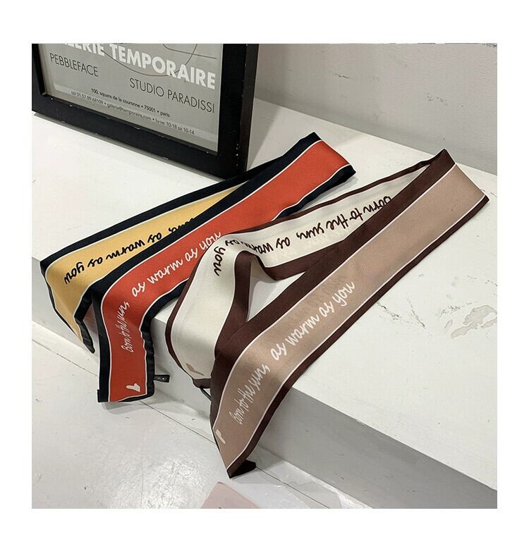 レタースモールロングシルクスカーフヘッドバンド高度なフレンチレトロインスタイルヘアネクタイバッグサマーネクタイヘアリボン狭い 夏物 ヘアバンド ヘアアクセサリー 15dd55075560372