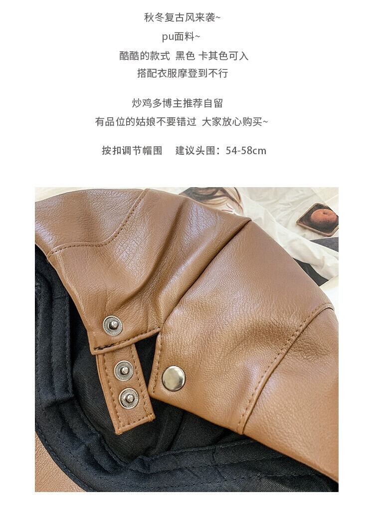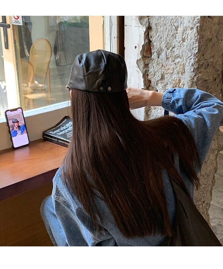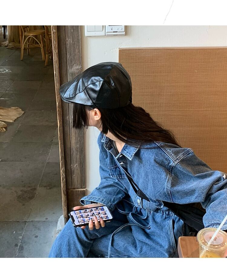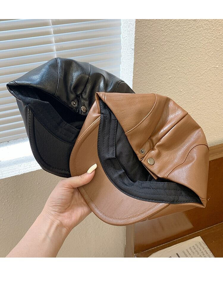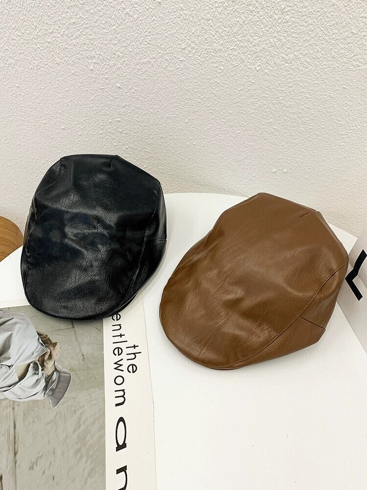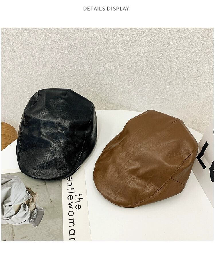 Pu レザー黒ベレー帽女性の夏バージョン人格レトロ英国耐摩耗性区キャップ秋と冬の画家のキャップ ブラック サマー 夏物 オータム 秋物 ウィンター 冬物 ベレット ヘアアクセサリー 15dd79453231506