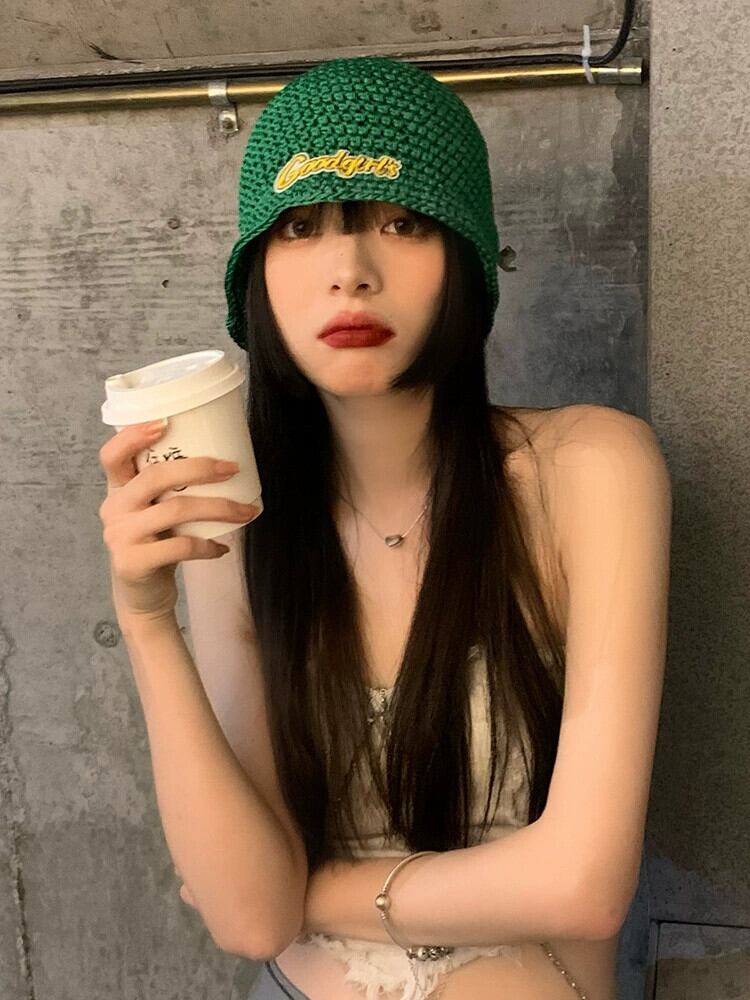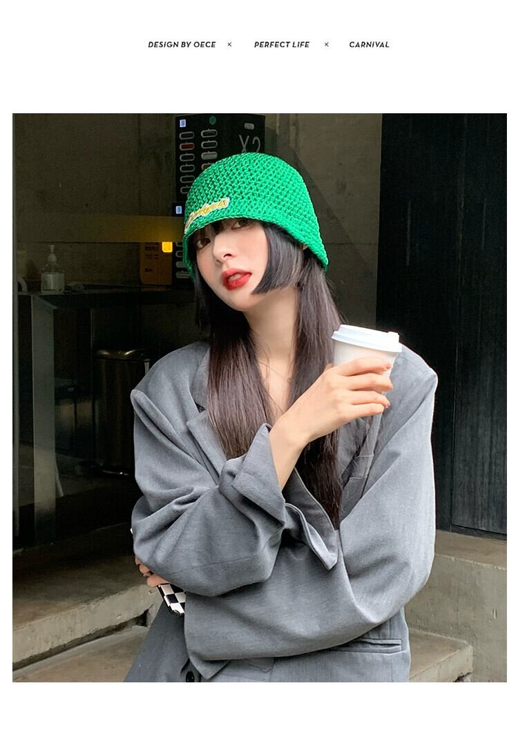個性ニッチ漁師帽子女性の春と秋のトレンディなヒップホップアルファベットバケットハットネットレッドストリートポービッグヘッドニット帽子 スプリング 春物 オータム 秋物 15dd19920497850