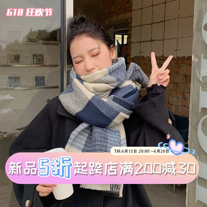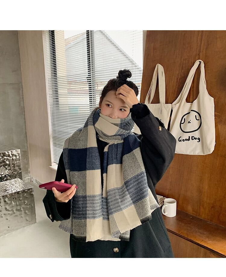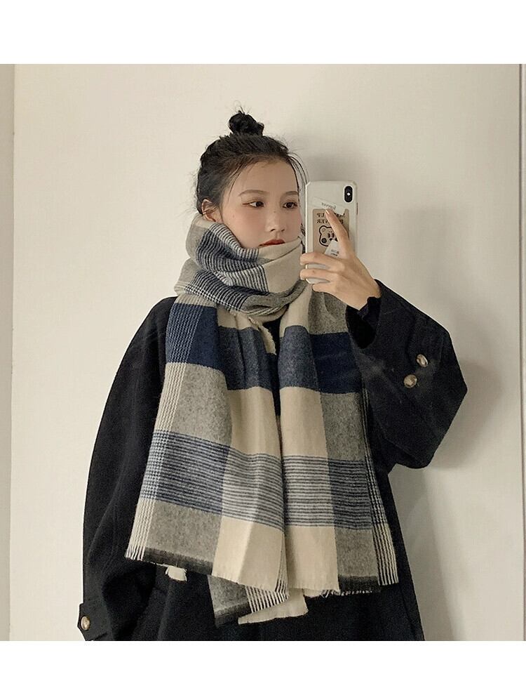 インチェック柄スカーフ女性冬レトロオールマッチファッションショール兼用学生暖かい模造カシミヤスカーフ ウィンター 冬物 15dd91039267199