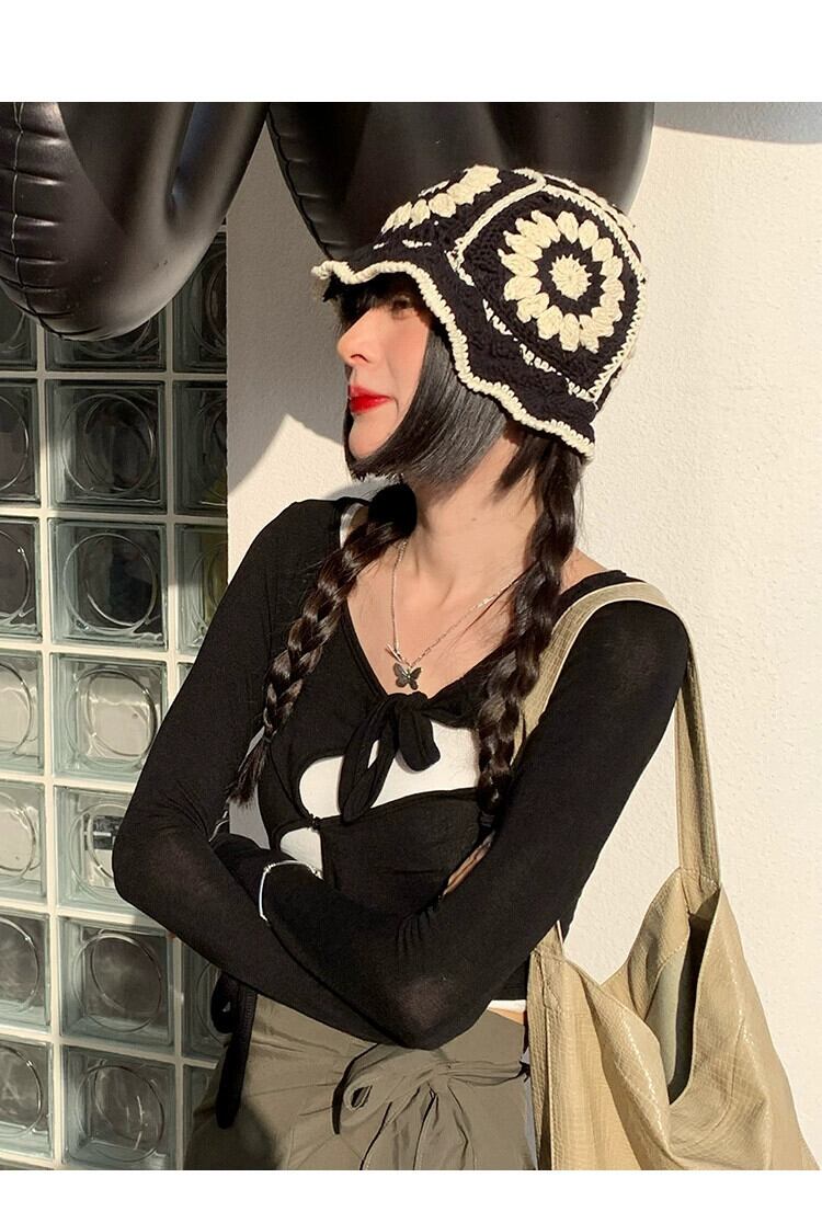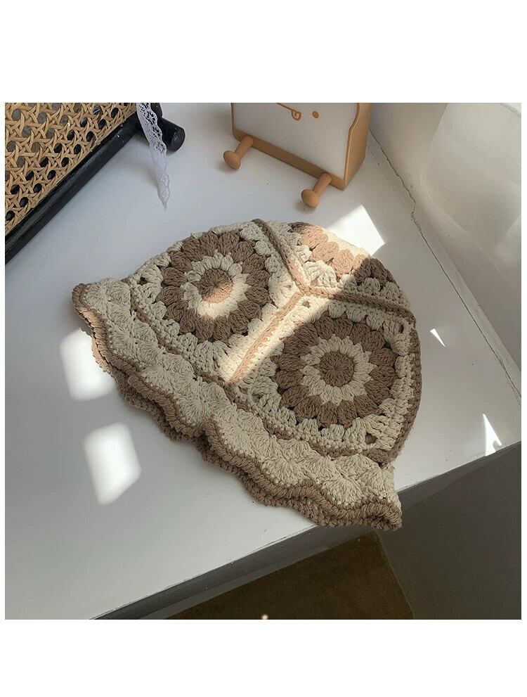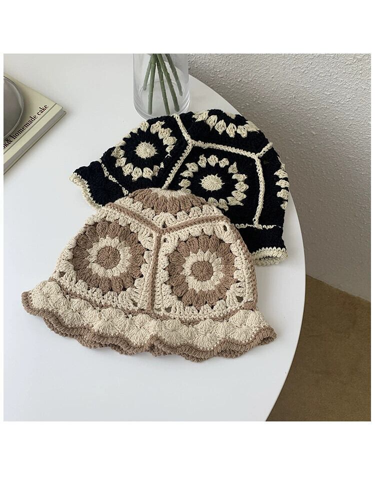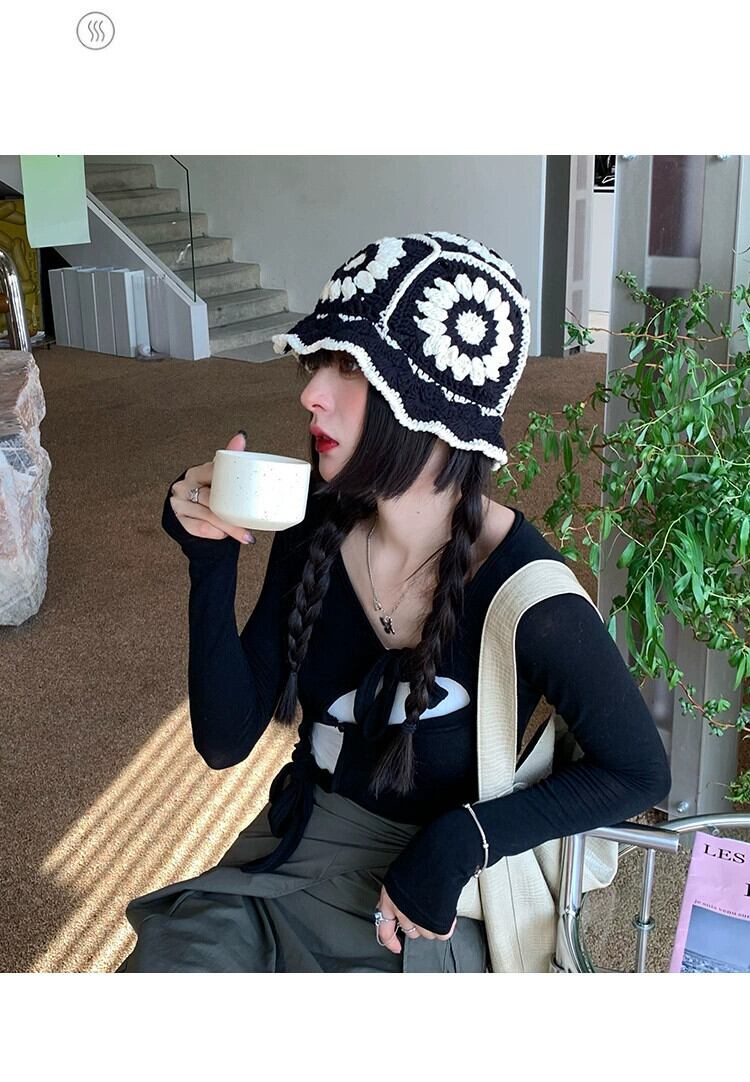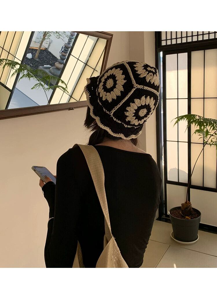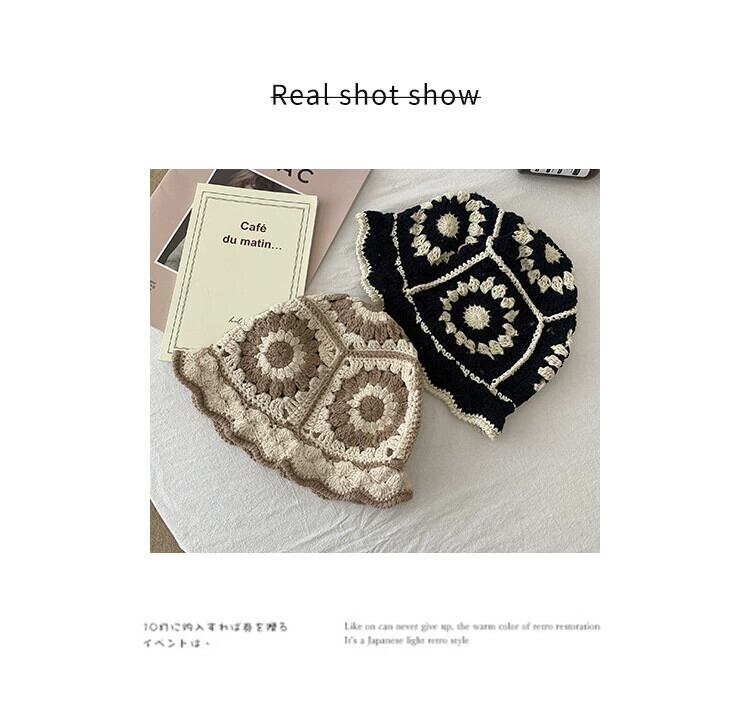 インヒョナスタイル中空編みウール帽子漁師の帽子女性バージョンオールマッチかわいい大きな頭周り盆地帽子小顔を見せます 大人ガーリー スウィート キュート カジュアル 15dd60240467665