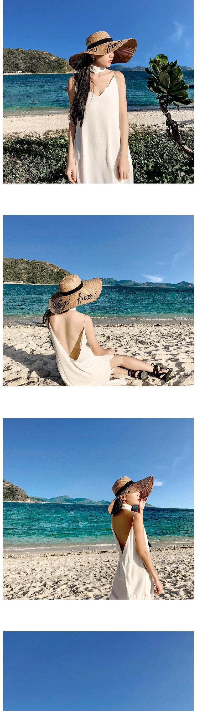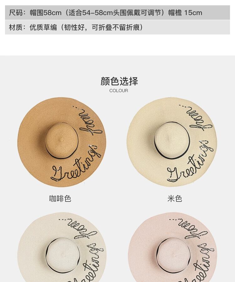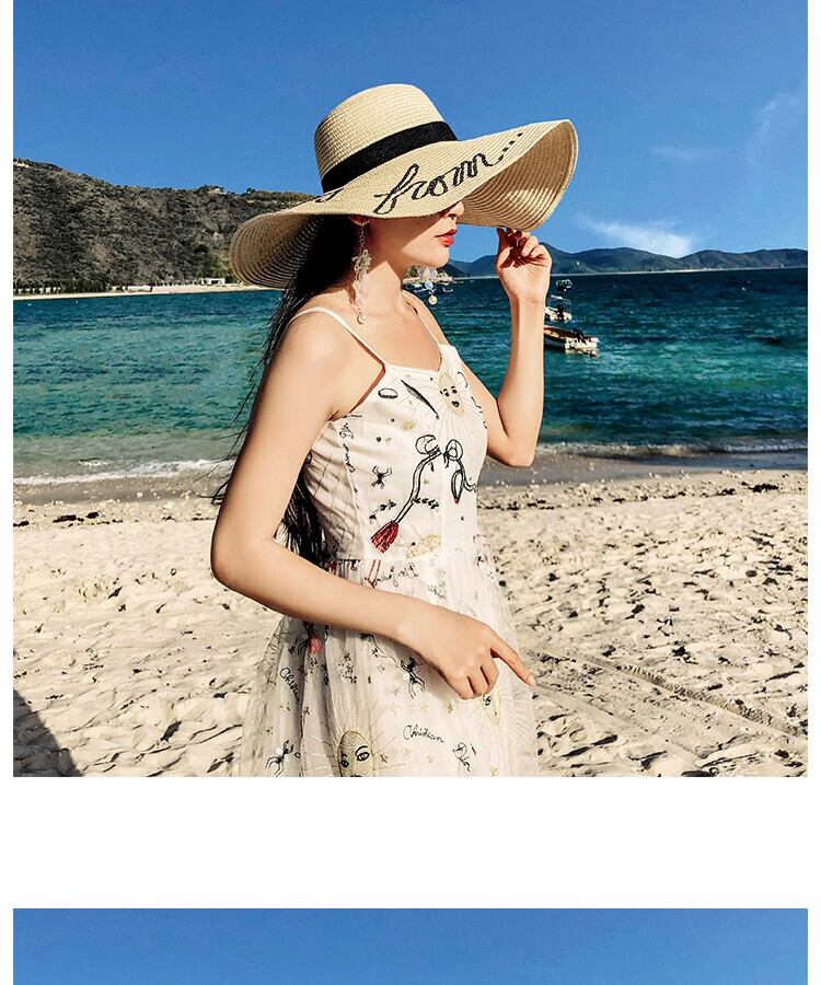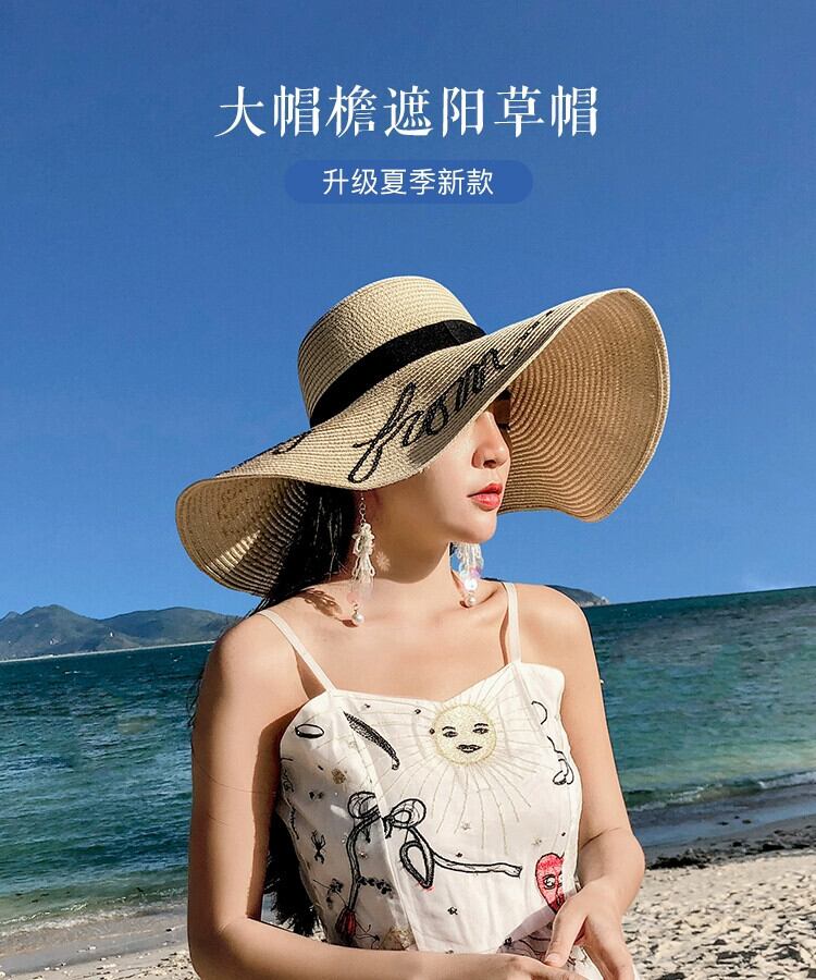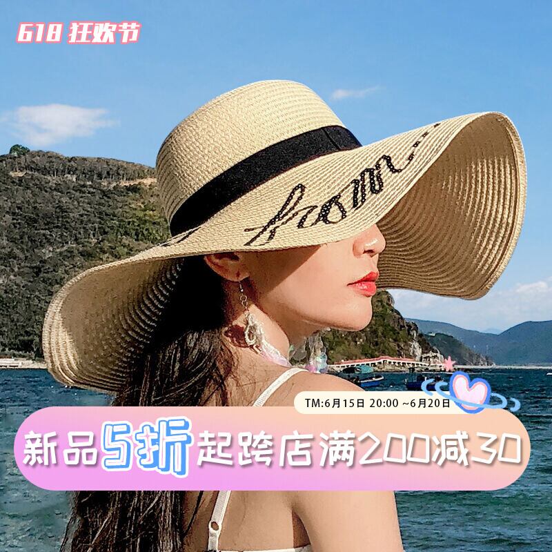 麦わら帽子 レディース 日焼け止め サンシェード ビーチ シーサイド 大きなつばバージョンのホリデー トラベル ネット レッド 小さなフレッシュ オールマッチ サンハット 15dd20293392829