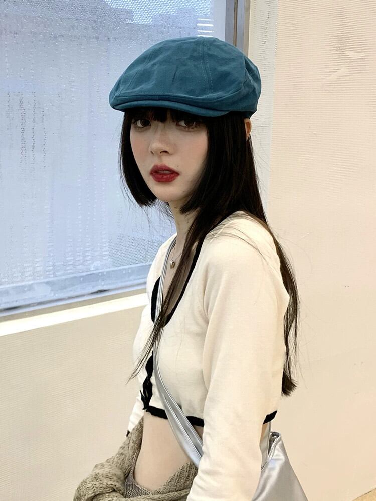 ese レトロトレンドベレー帽女性の春と秋バージョンオールマッチ英国ビッグヘッド痩身ワードキャップアーティストキャップ スプリング 春物 オータム 秋物 ベレット ヘアアクセサリー 15dd58525393913