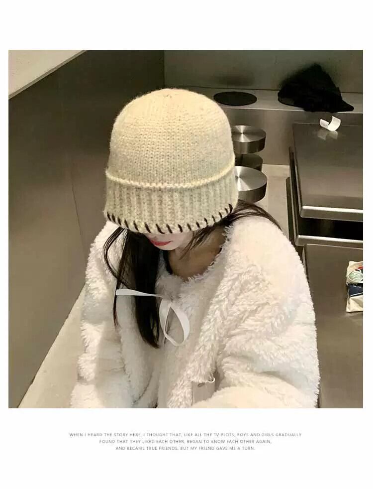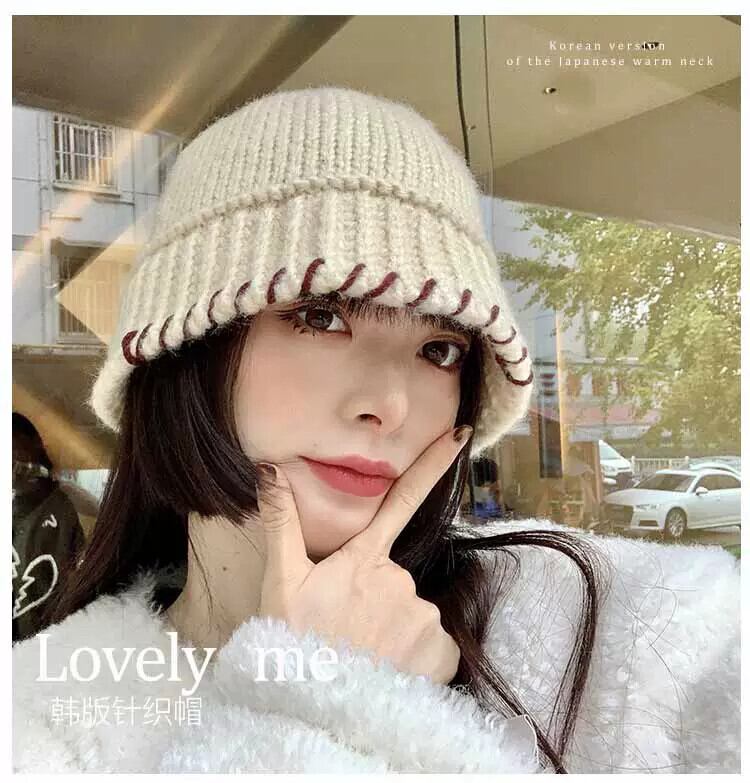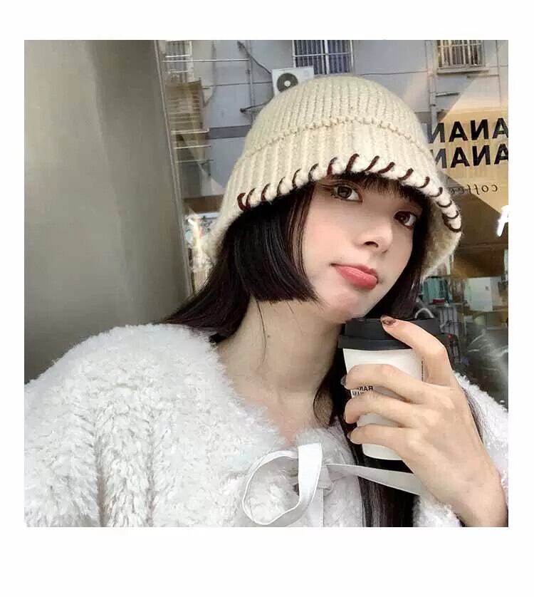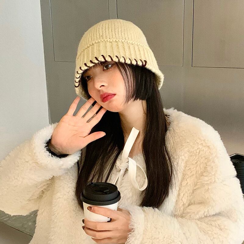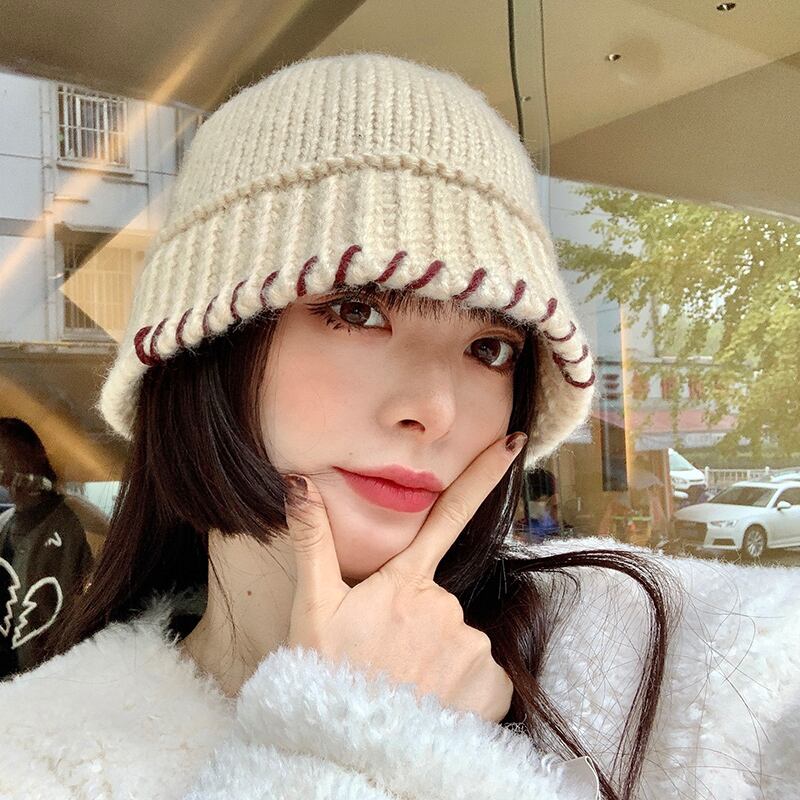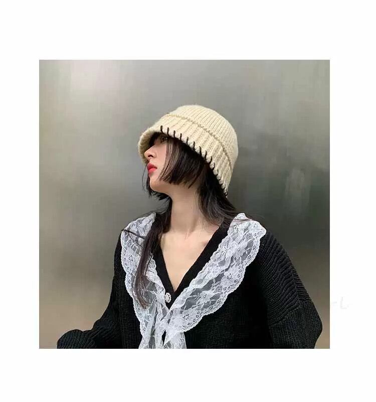 ベージュの粗編みウール漁師の帽子の女性の秋と冬バージョンオールマッチビッグヘッド ese トレンディなブランド顔小さな盆地帽子 オータム 秋物 ウィンター 冬物 15dd31281624814