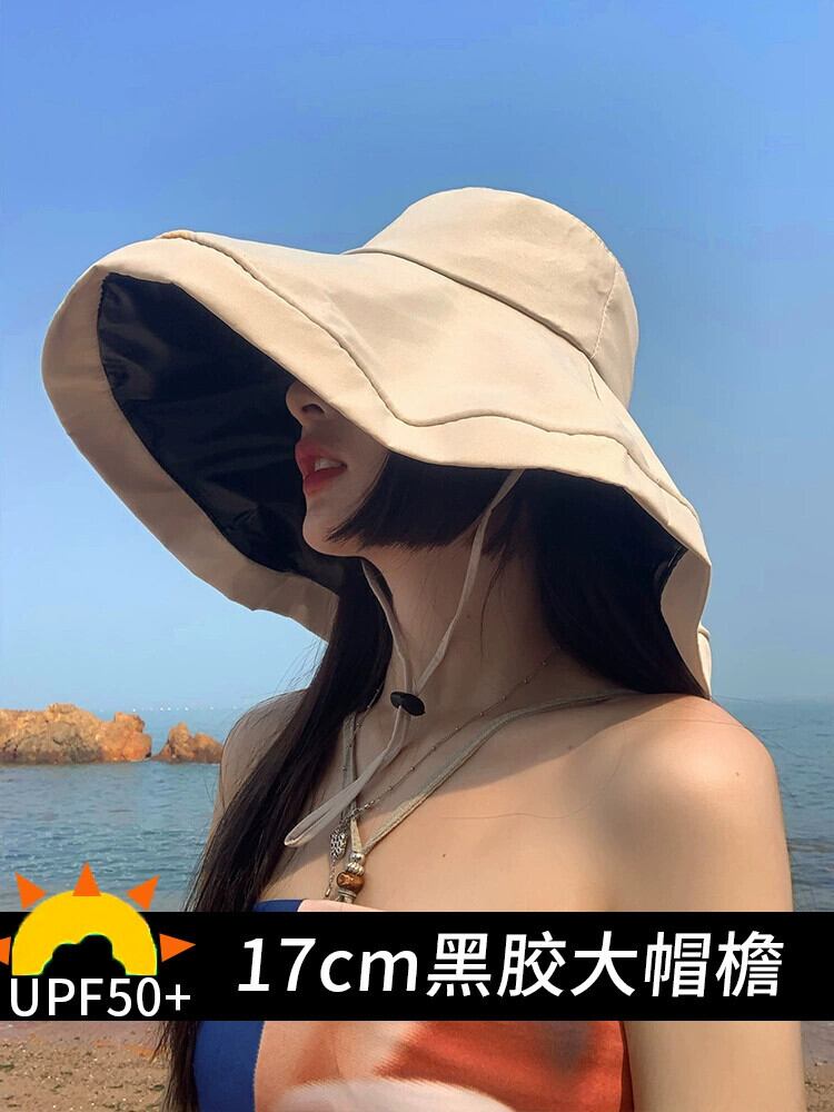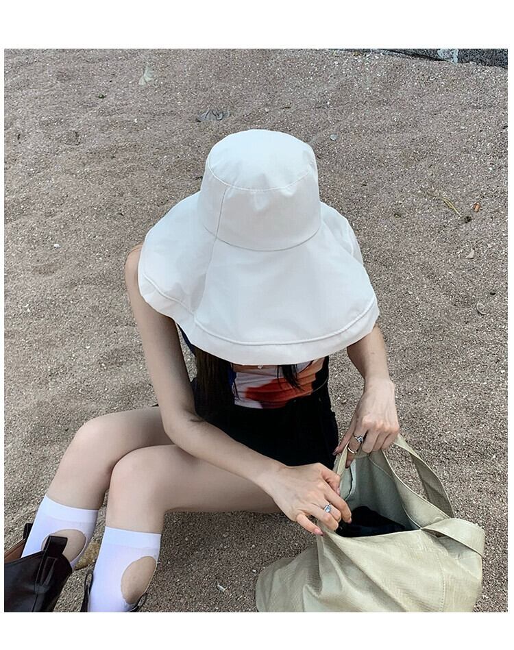黒ゴム漁師の帽子女性の夏超大型ひさし日焼け止め日よけ帽子屋外オールマッチ日よけ帽子抗紫外線顔を覆う帽子 ブラック サマー 夏物 15dd63271084834
