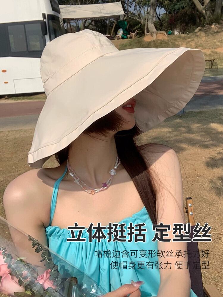帽子レディース夏大きなつばサンハット屋外 UV サンバイザーカバー顔ファッションオールマッチ漁師帽子 サマー 夏物 15dd55555409371