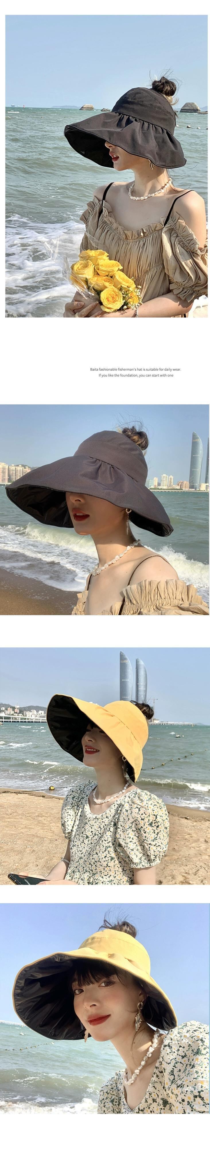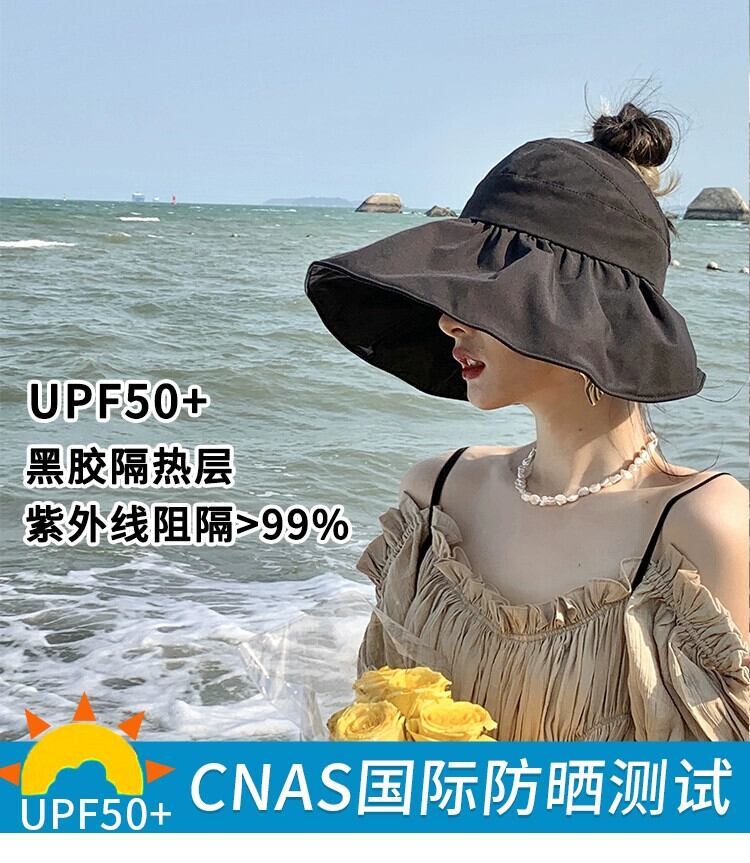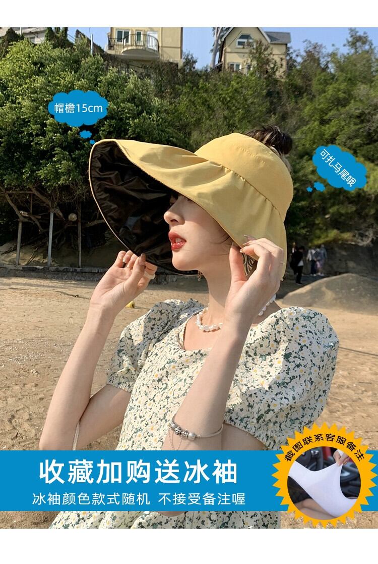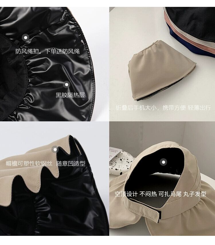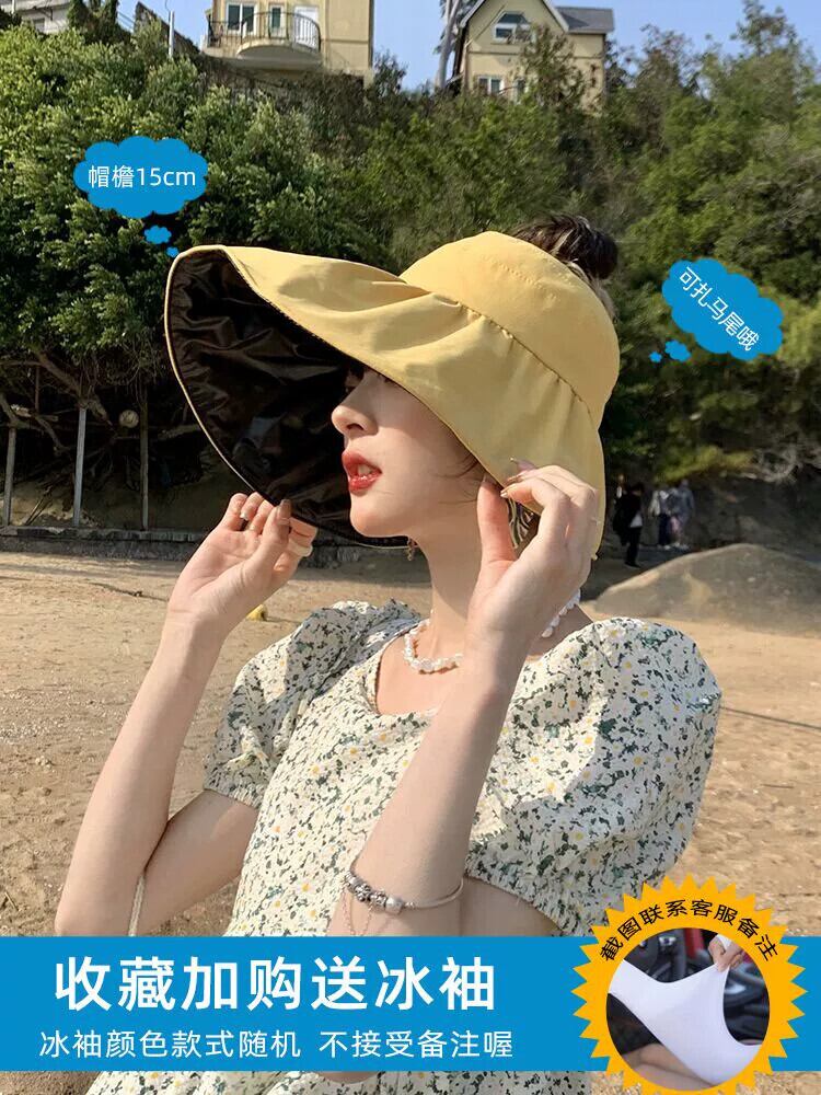サンバイザーハット女性用日焼け止め大きなつば帽子空のトップUVサンハットは、トップサマーハットなしでポニーテールを結んで顔を覆うことができます。 夏物 15dd32646030773