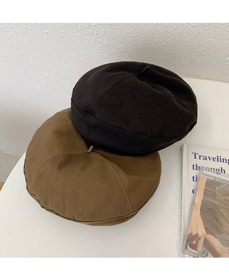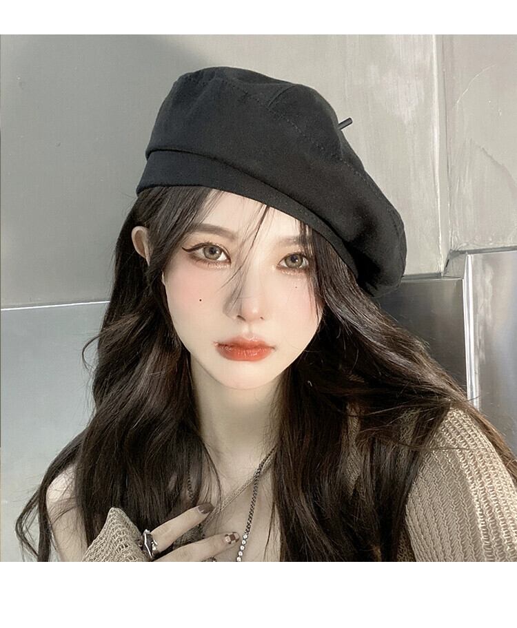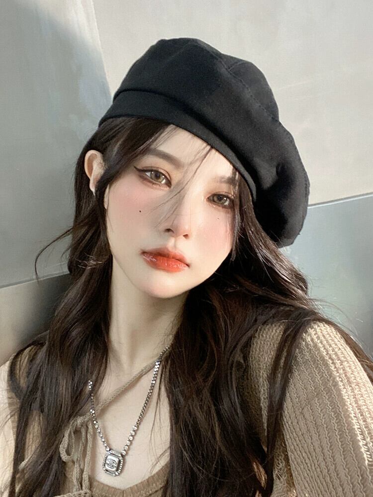 黒のベレー帽の女性の春と秋のモデルはオールマッチ無地のレトロなベレー帽の帽子秋と冬バージョン大きな頭が顔を見せて小さな画家の帽子 ブラック スプリング 春物 オータム 秋物 ウィンター 冬物 ベレット ヘアアクセサリー ソリッドカラー 15dd94272164221