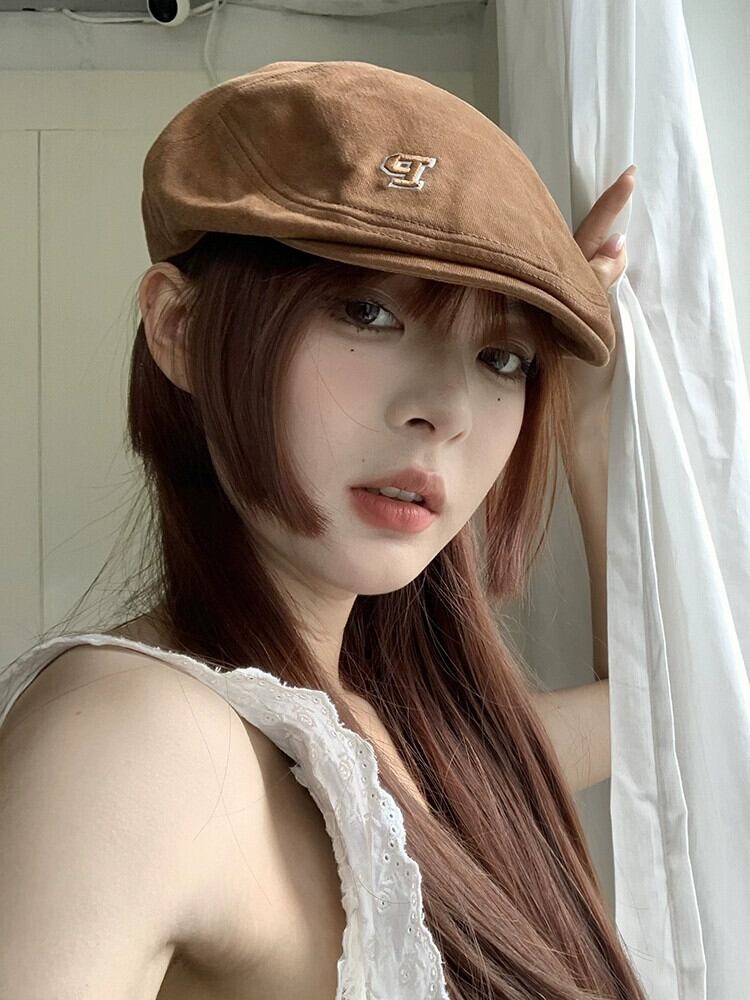 ese レトロレターベレー帽女性の夏薄いセクションオールマッチ文学ピークキャップシンプルな英国区帽子トレンド サマー 夏物 ベレット ヘアアクセサリー 15dd8159357777