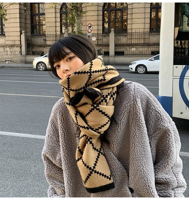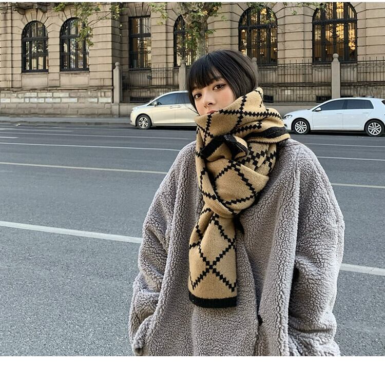 レトロな人格気質両面ウールスカーフ女性の冬暖かい学生ロングネックスカーフ模造カシミヤオールマッチショール ウィンター 冬物 15dd27701326120