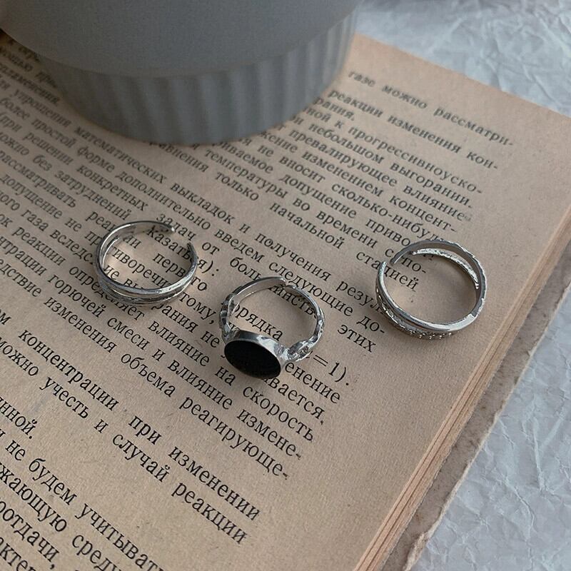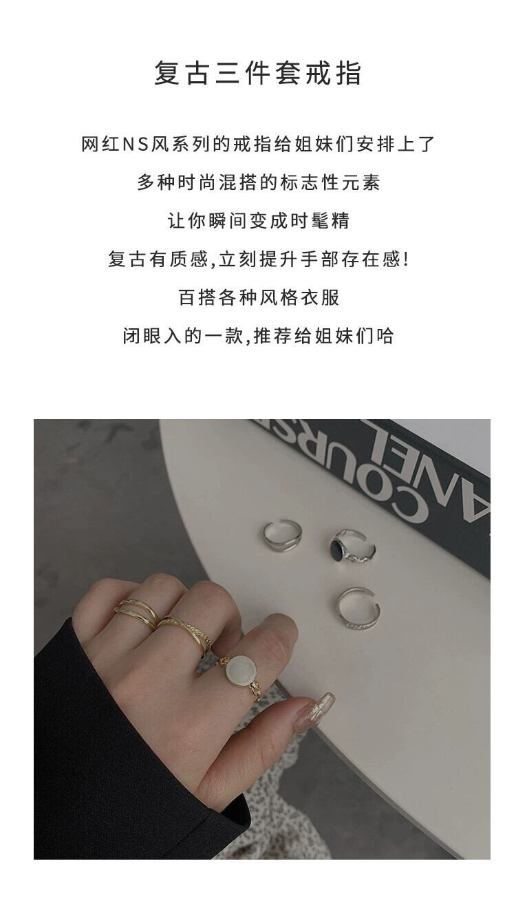 インコールドウィンドスリーピースリング女性ニッチデザインファッションレトロ個性シンプルなオープニング人差し指リング 指輪 15dd96043725107