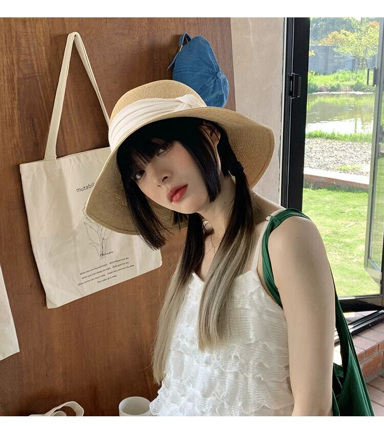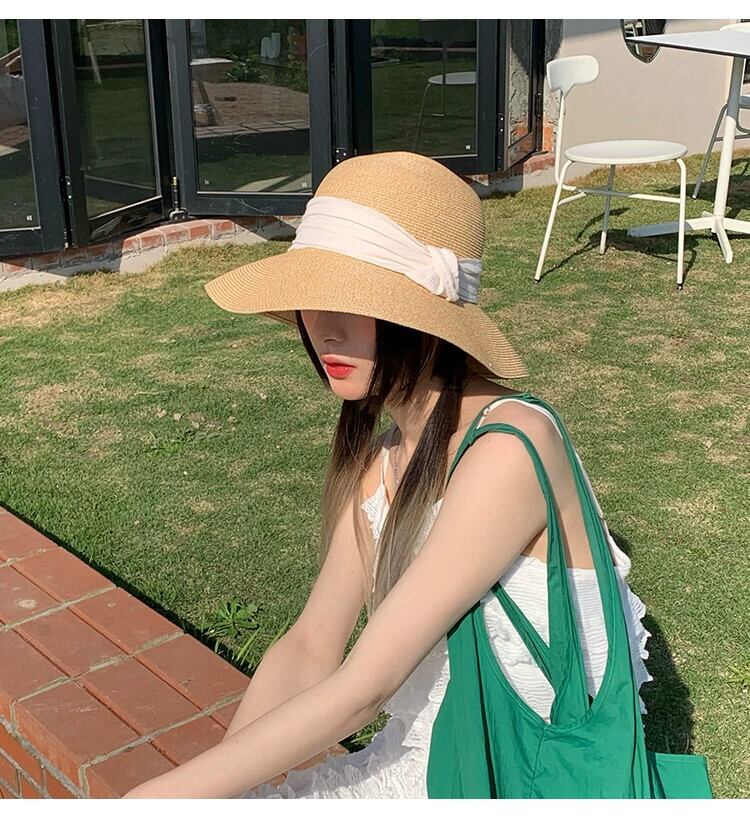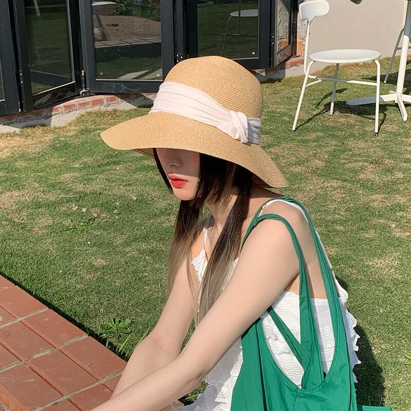 帽子 レディース ビーチ ストロー ハット バージョンのトレンディなオールマッチの夏用サンシェード 日焼け止め 小さなフレッシュ フレンチ カバー フェイス 大きなつば サマー 夏物 15dd4396073596