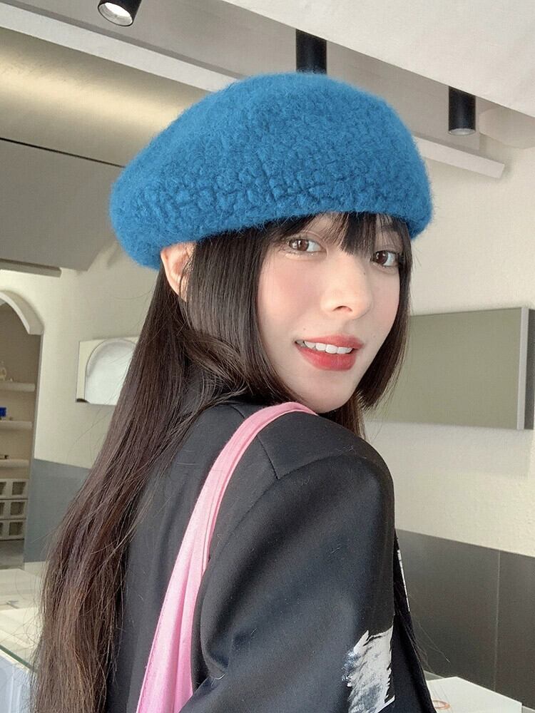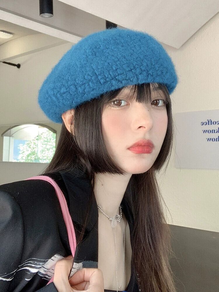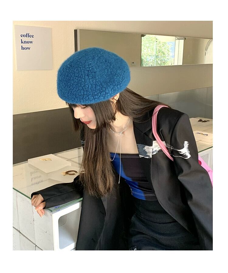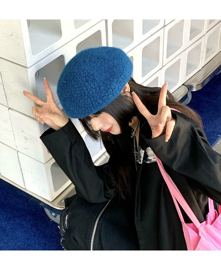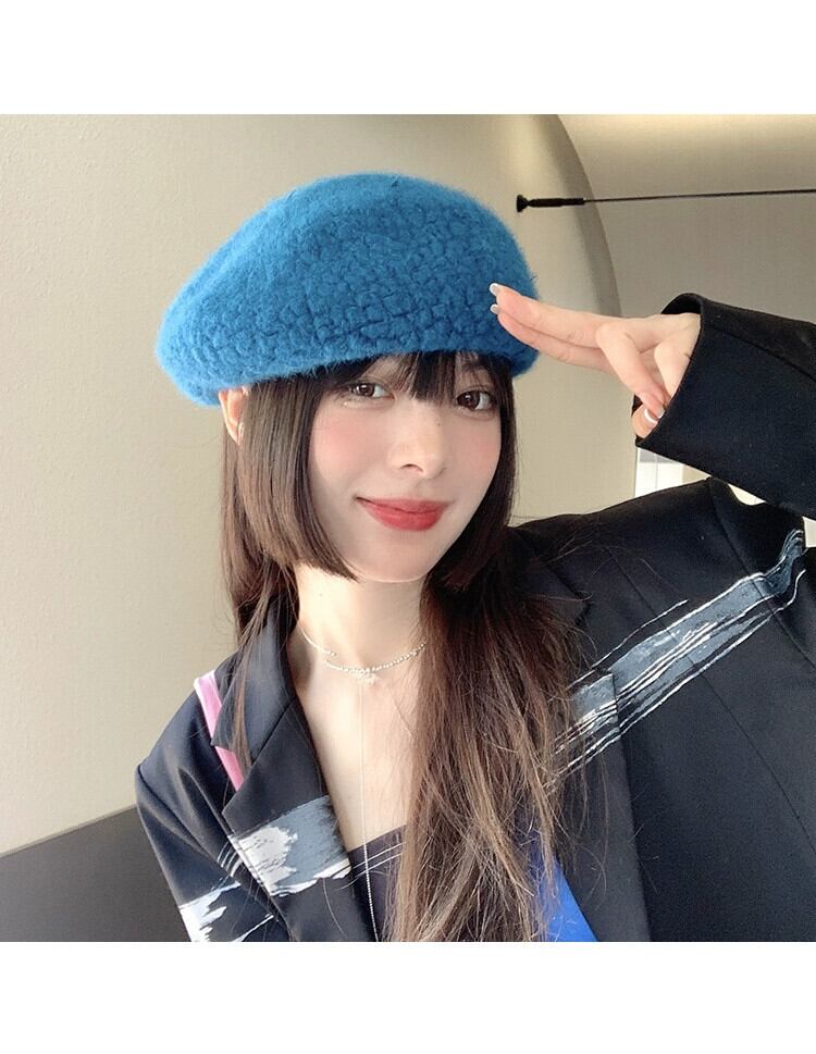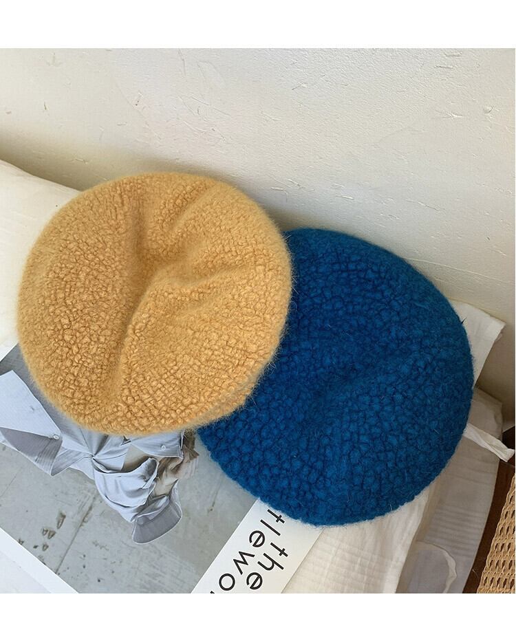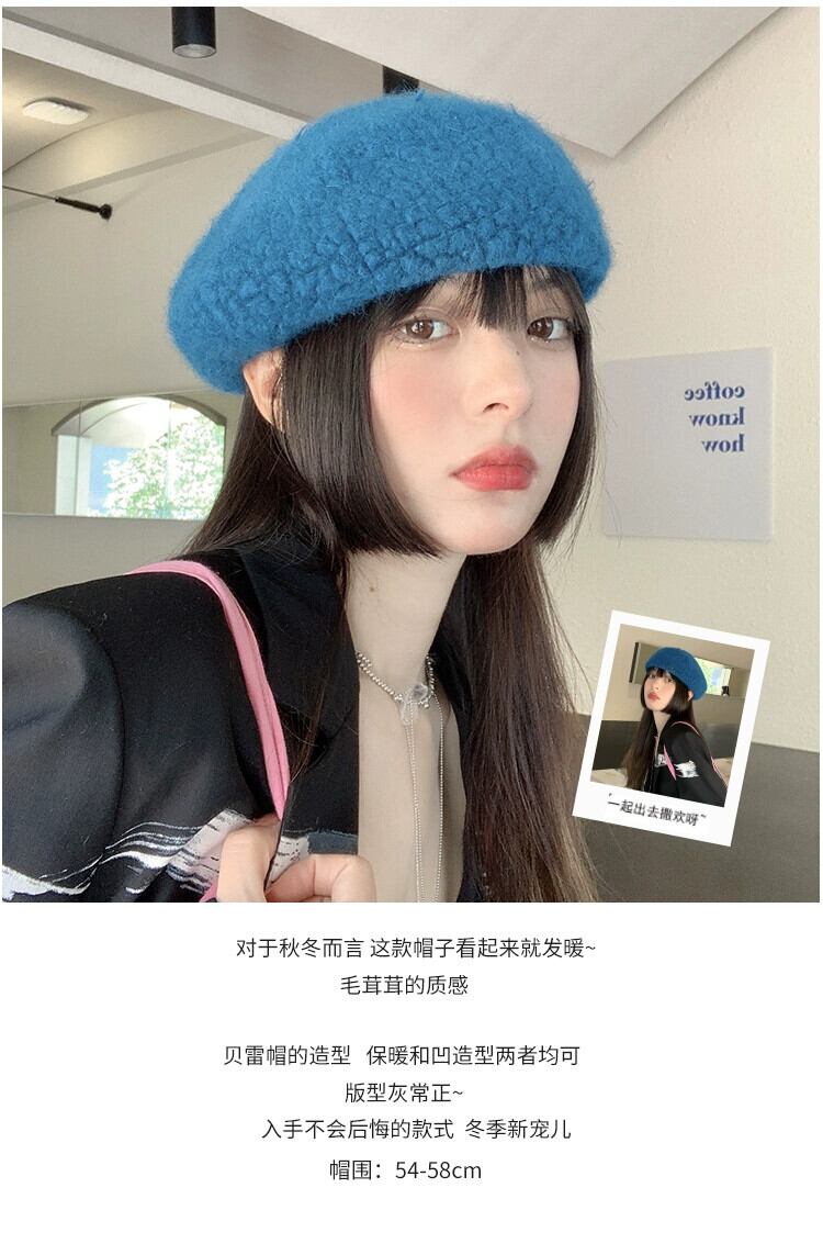 帽子女性の秋と冬バージョンオールマッチ英国レトロベレー帽エセネットレッドウールベルベットビッグヘッドバドペインターハット オータム 秋物 ウィンター 冬物 ベレット ヘアアクセサリー 15dd35204771524