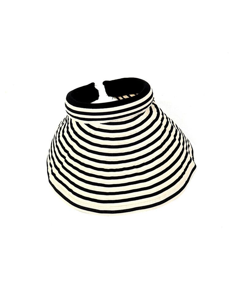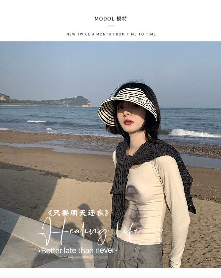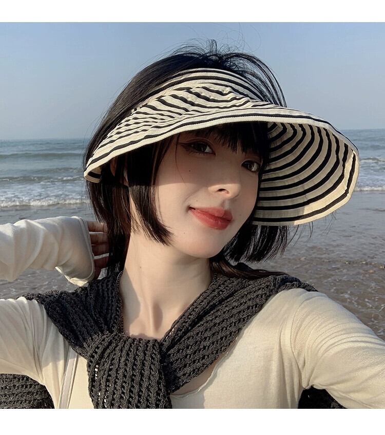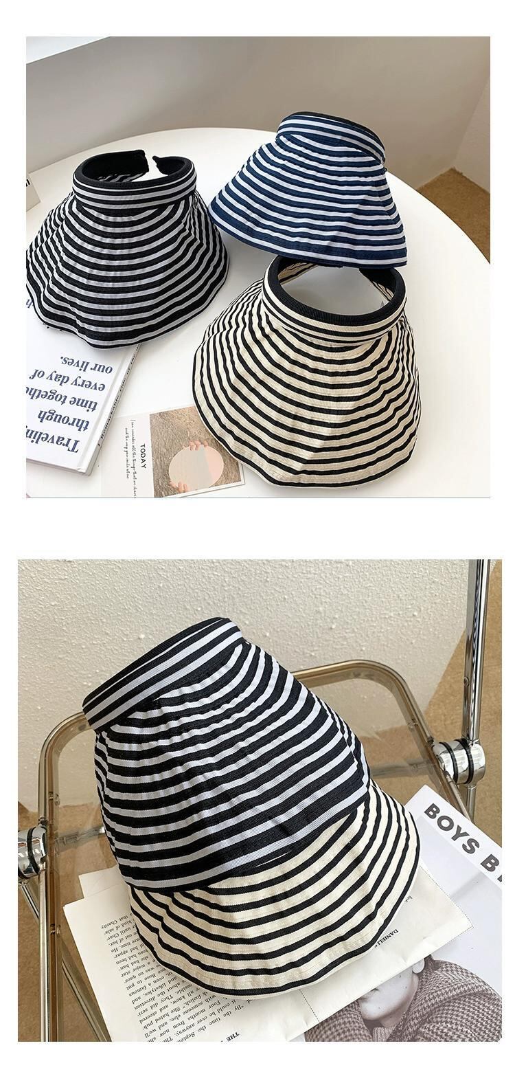 帽子女性の夏のファッションオールマッチトップレス日よけ帽子夏の黒と白のストライプサイクリング日焼け止め折りたたみ式空のシルクハット潮 ホワイト ブラック サマー 夏物 15dd816256882