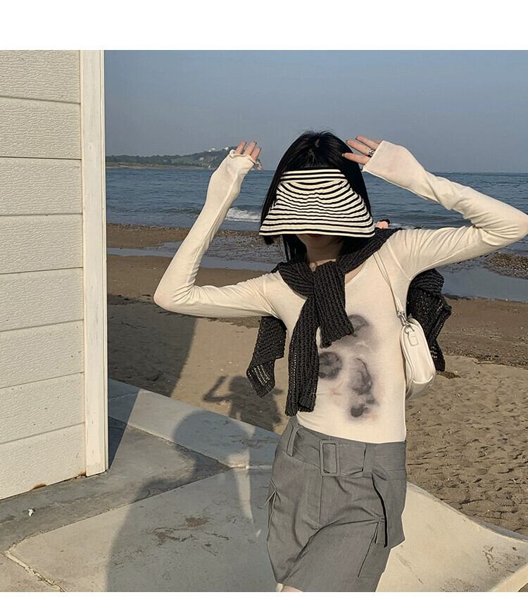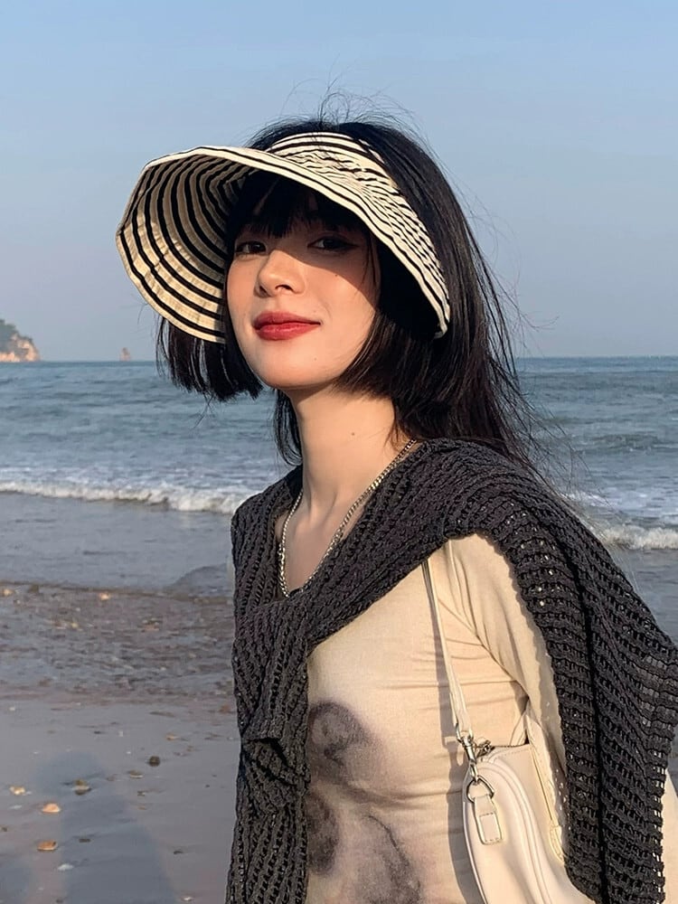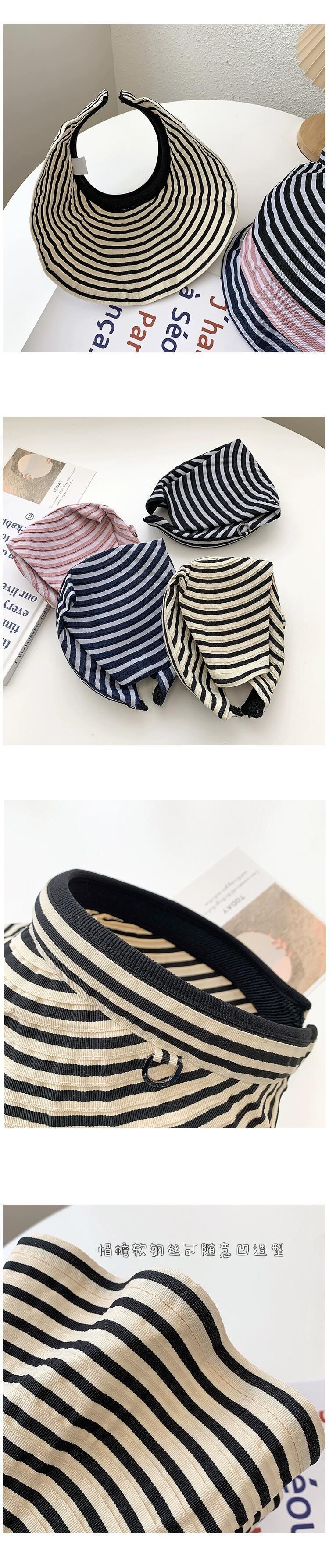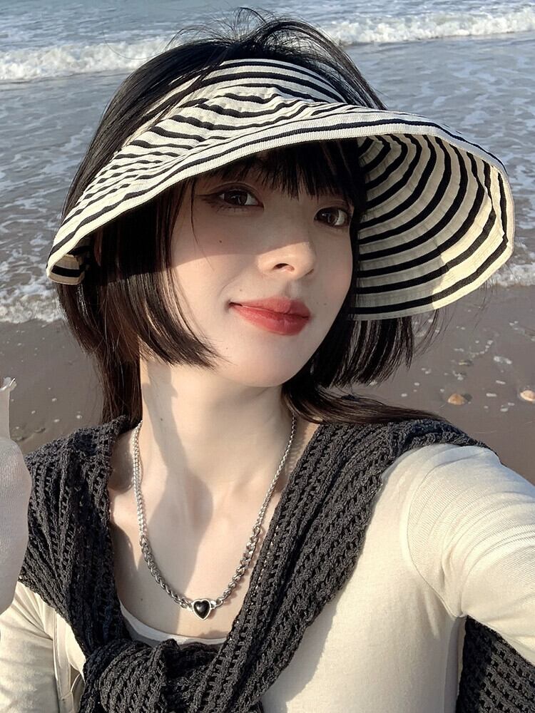 帽子女性の夏のファッションオールマッチトップレス日よけ帽子夏の黒と白のストライプサイクリング日焼け止め折りたたみ式空のシルクハット潮 ホワイト ブラック サマー 夏物 15dd816256882