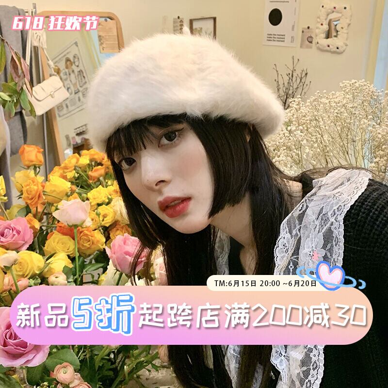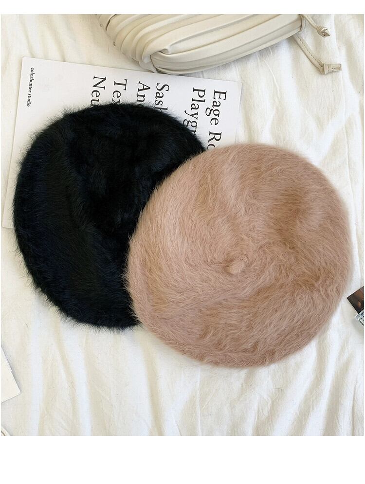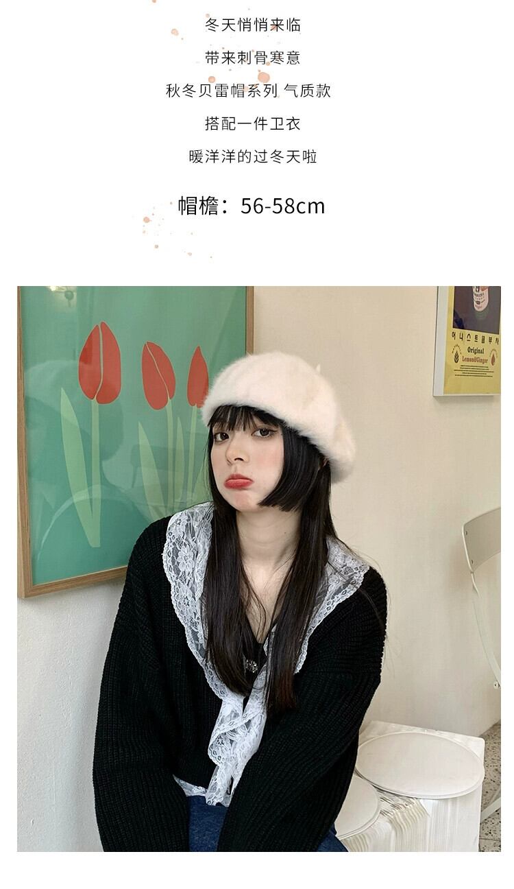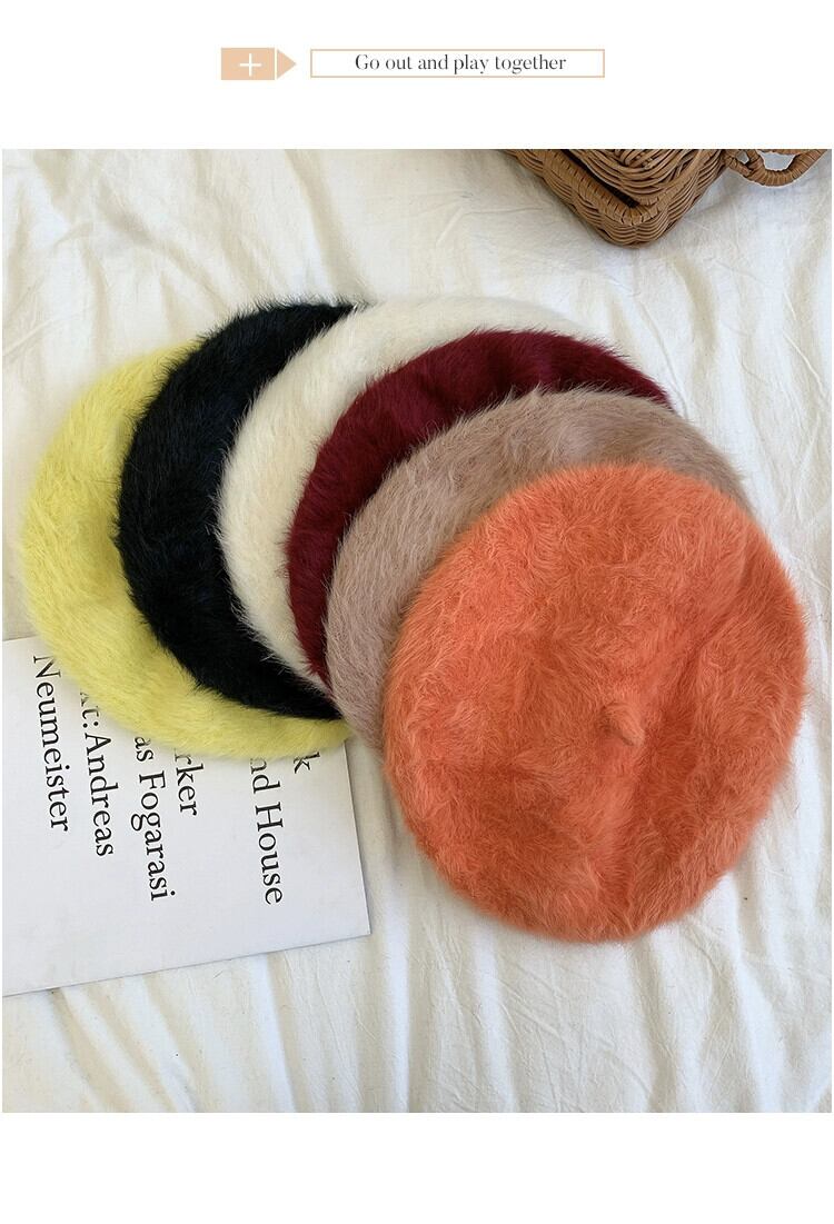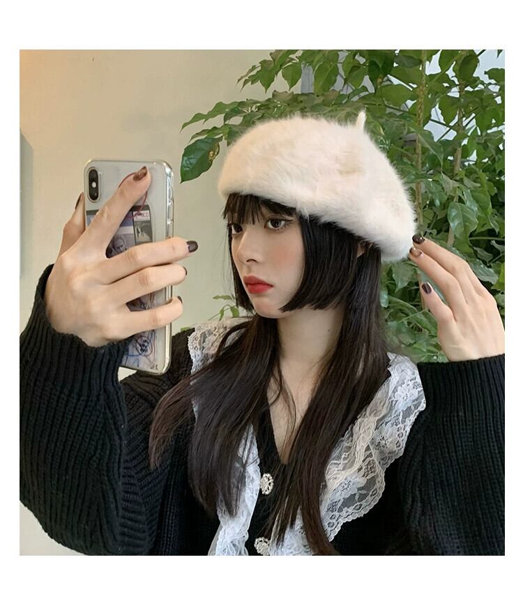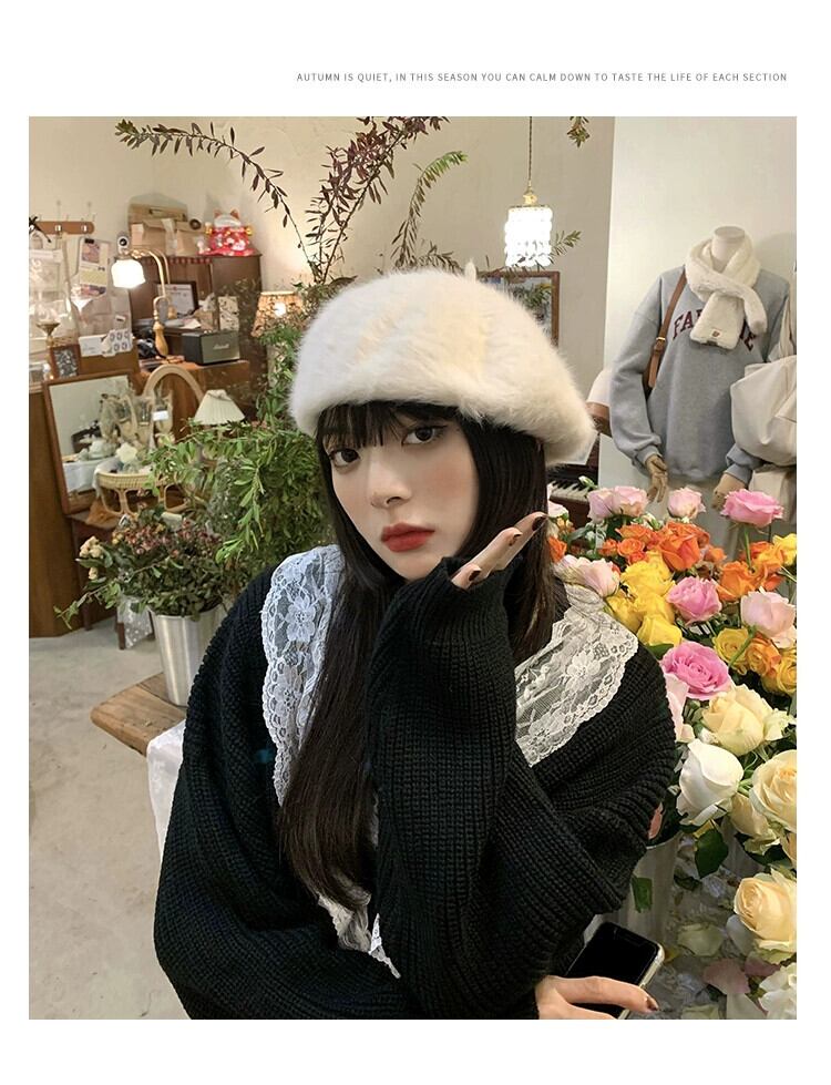 同じ毛皮のようなベレー帽の女性の秋と冬のオールマッチファッション英国レトロな長いウサギの豪華な画家の帽子を持つインターネット有名人 ロング オータム 秋物 ウィンター 冬物 ベレット ヘアアクセサリー 15dd89723349678
