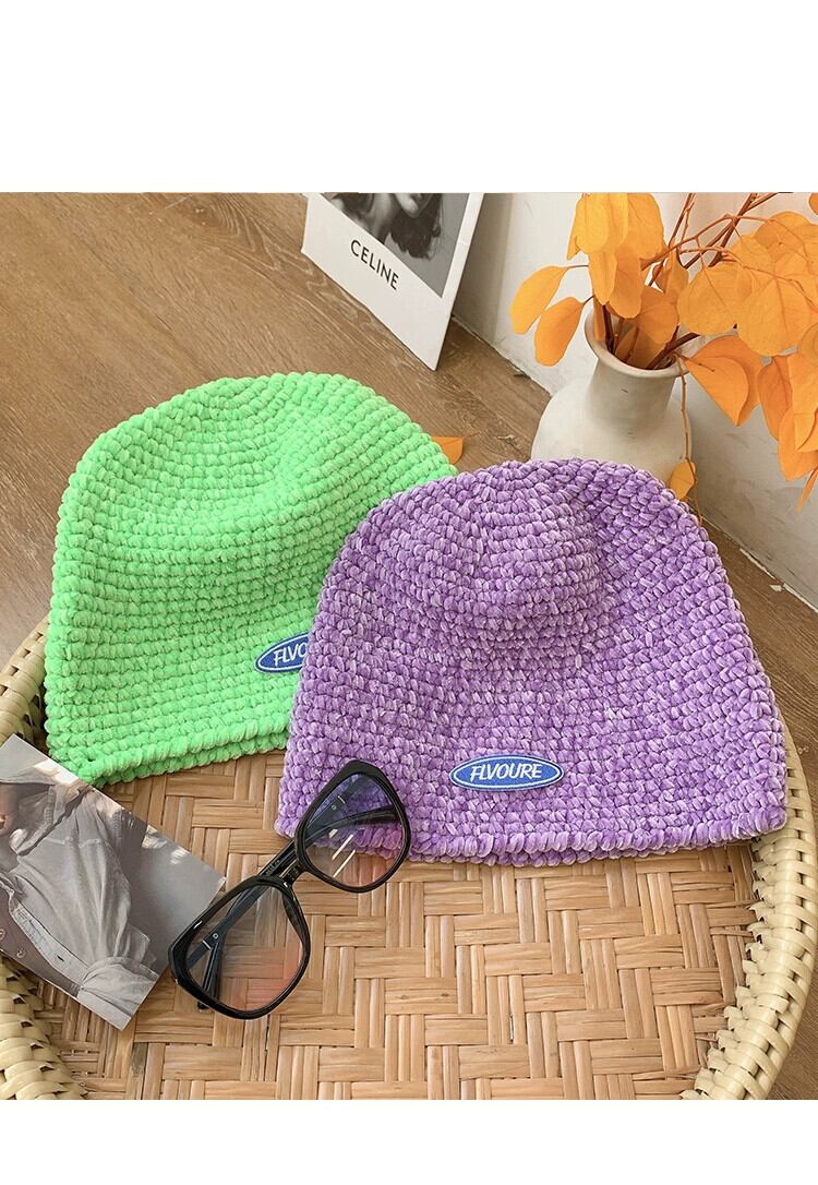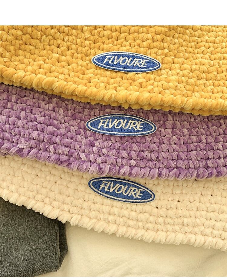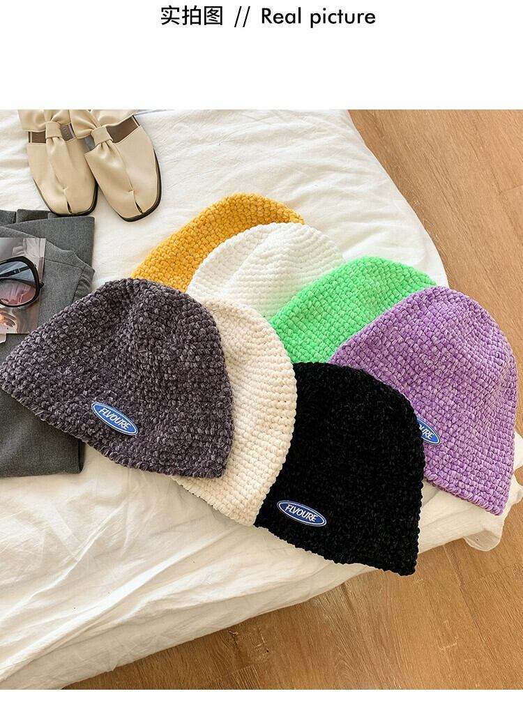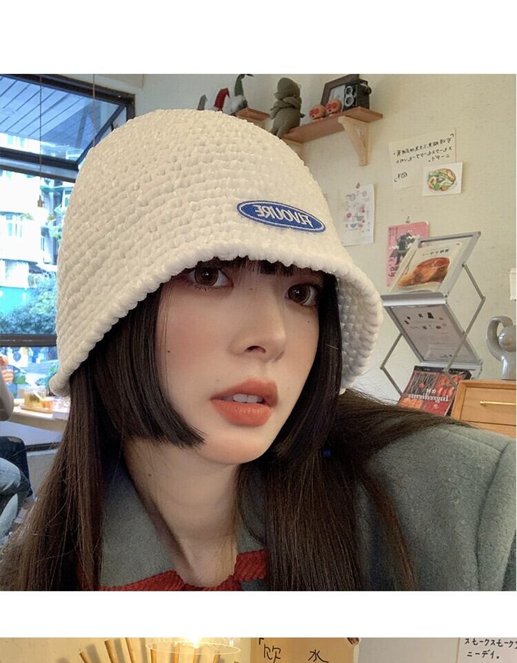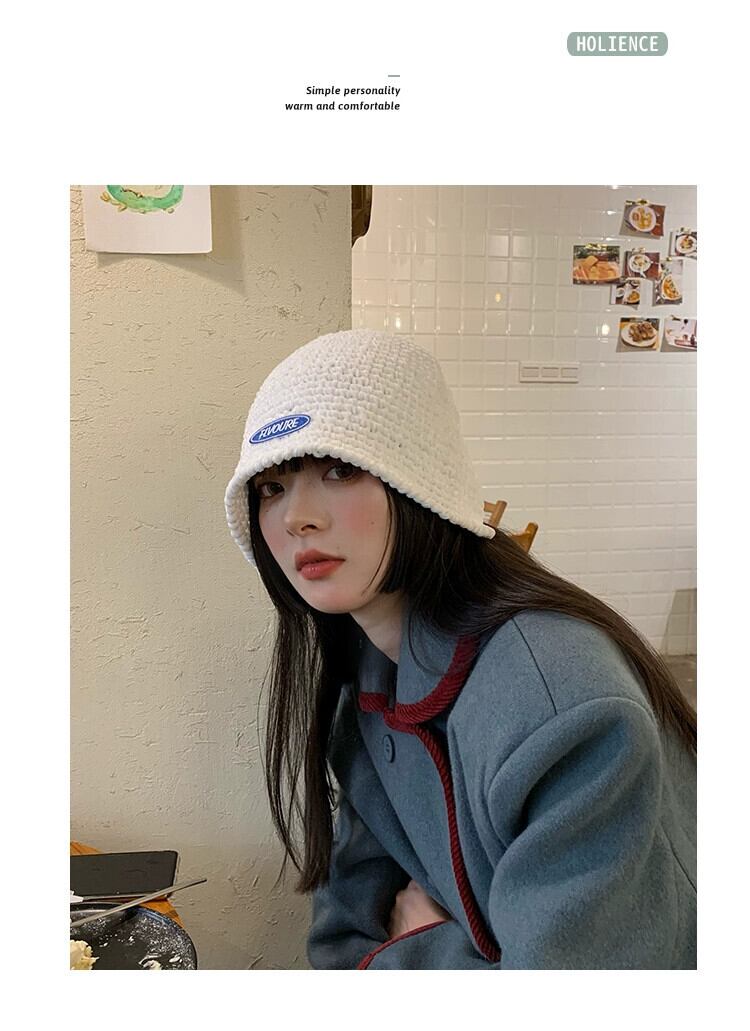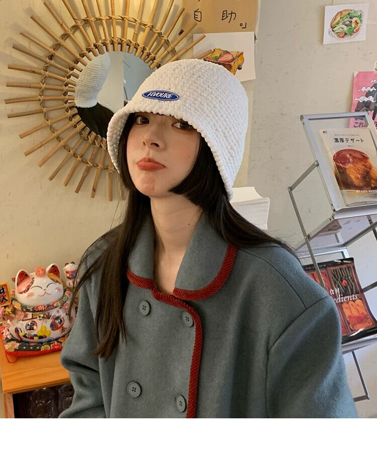 帽子女性の秋と冬のウールの帽子シェニールニットコールドハット大きな頭囲白い顔小さなバケツ漁師の帽子冬 ホワイト オータム 秋物 ウィンター 冬物 15dd44960062319
