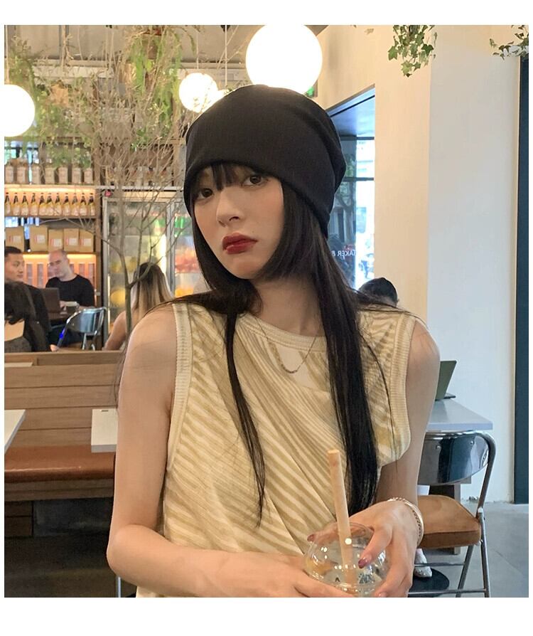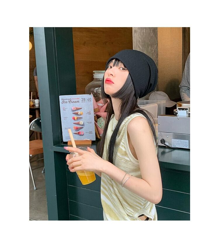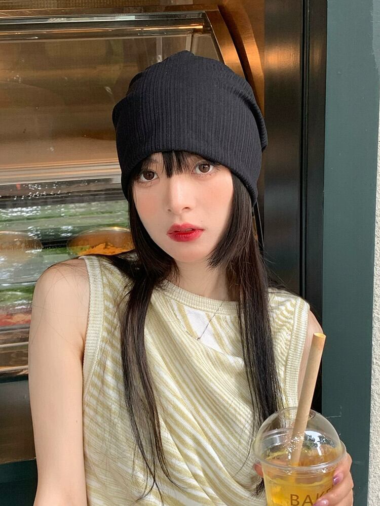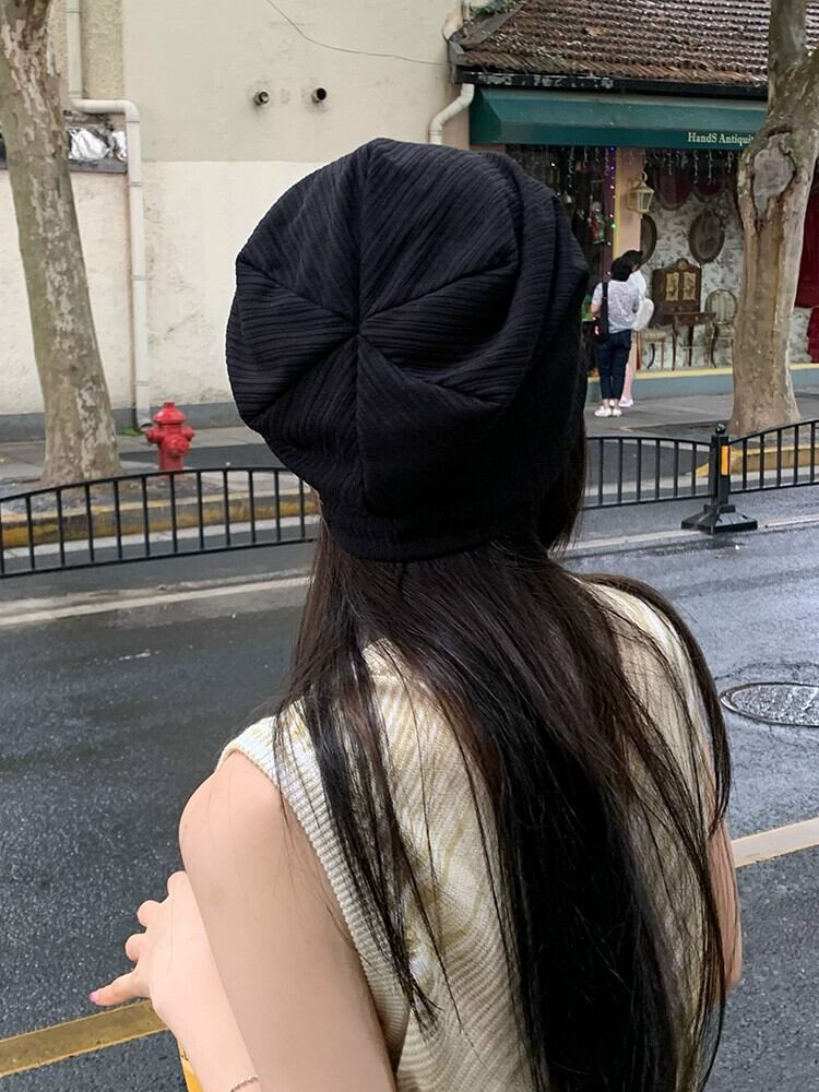 ネット赤揚げストリート帽子女性の春と秋オールマッチ黒薄い包頭監禁帽子バージョントレンディな ese ニットパイル帽子 レッド ブラック スプリング 春物 オータム 秋物 15dd84706432056