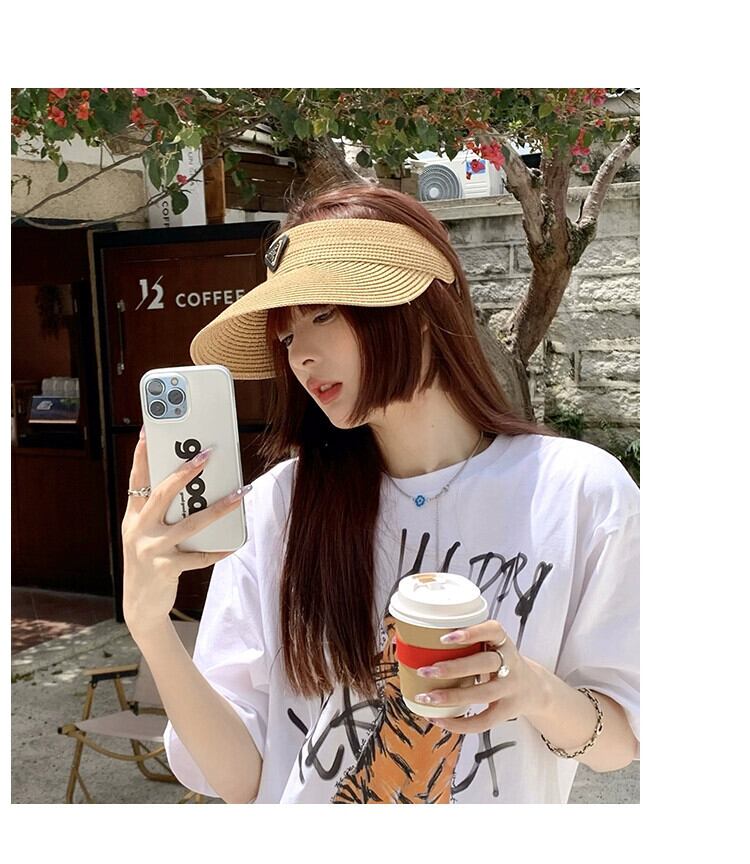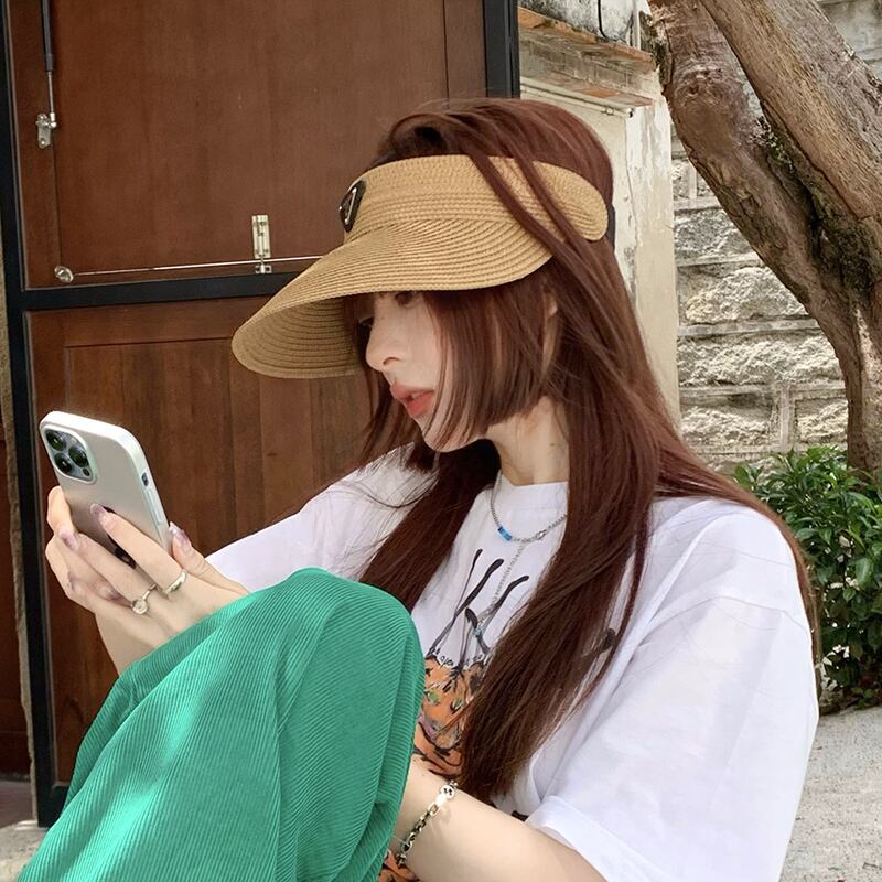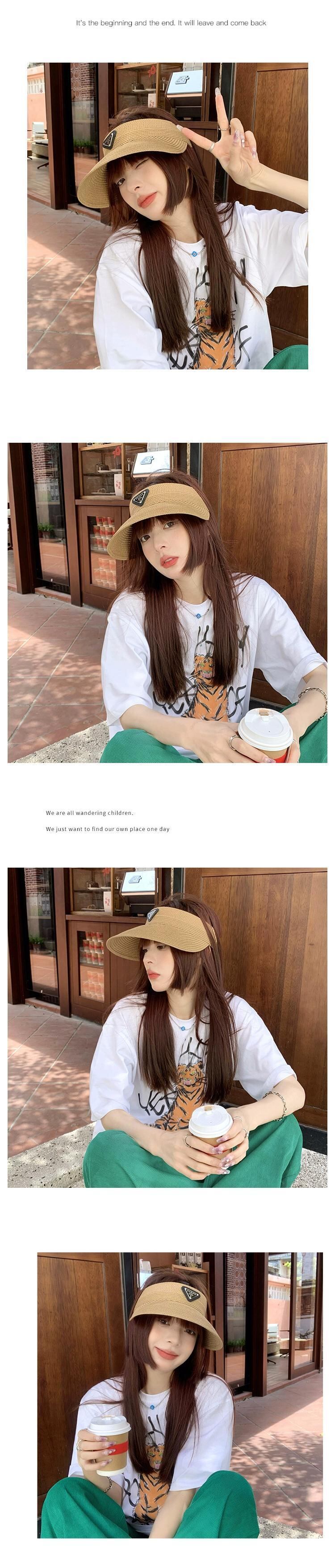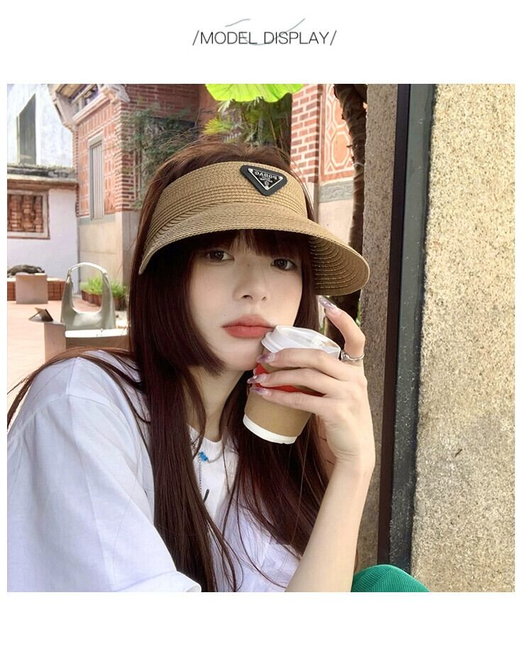 三角形標準わら織り空のシルクハット女性の夏の旅行太陽の帽子大きなひさしカバー顔ファッショントップレスサンバイザービーチ帽子 サマー 夏物 15dd47214232792