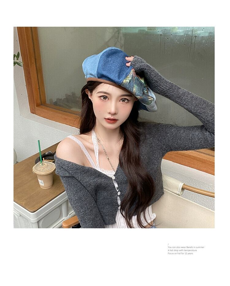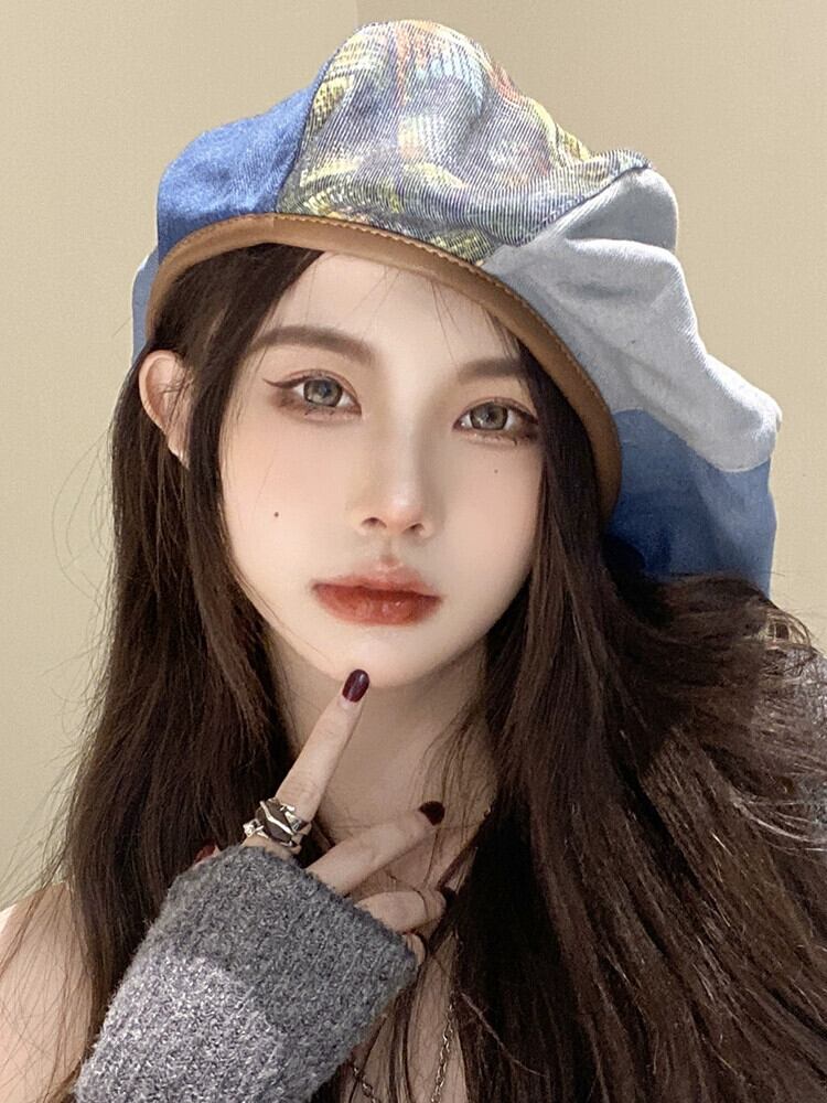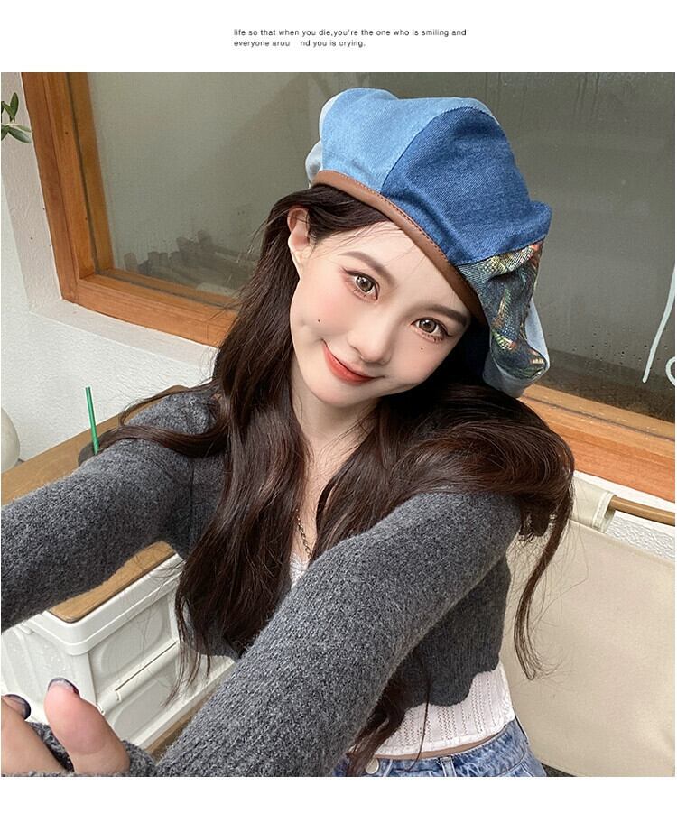 ウォッシュド オールド デニム ベレー帽 レディース 春秋バージョン オールマッチ ニッチ レトロ クラウド ハット 大きな頭囲 アーティストハット 潮 帽子 スプリング 春物 オータム 秋物 ベレット ヘアアクセサリー 15dd85952907980