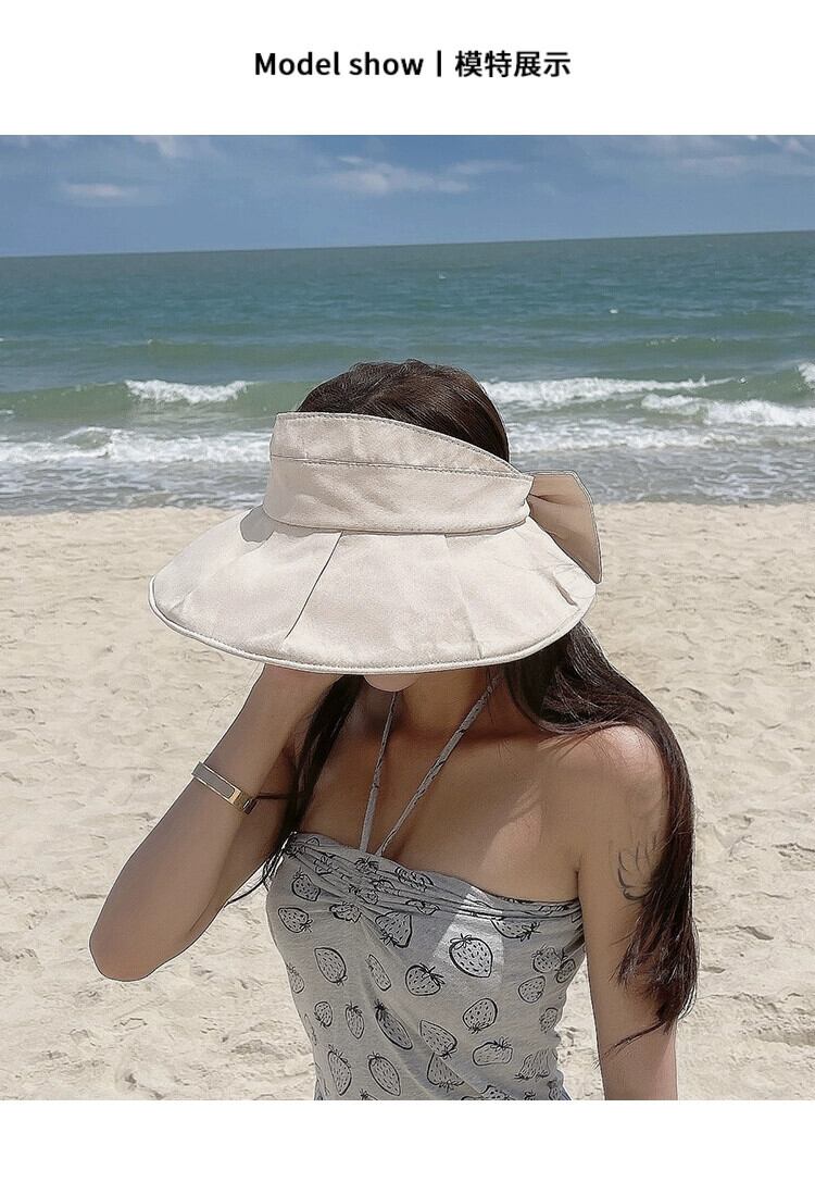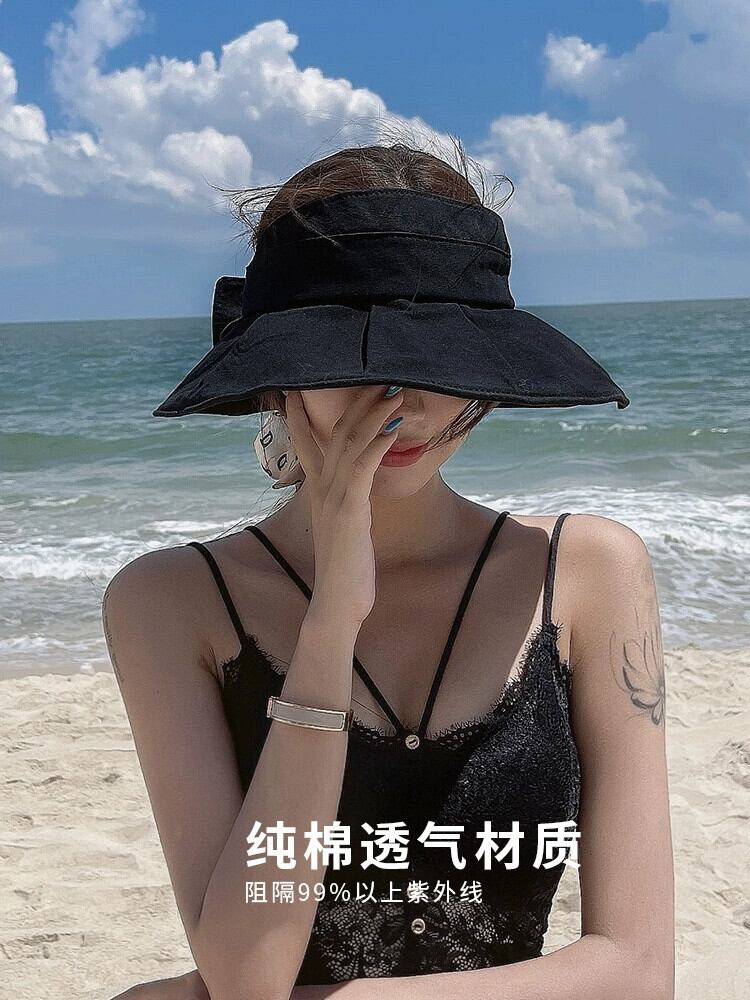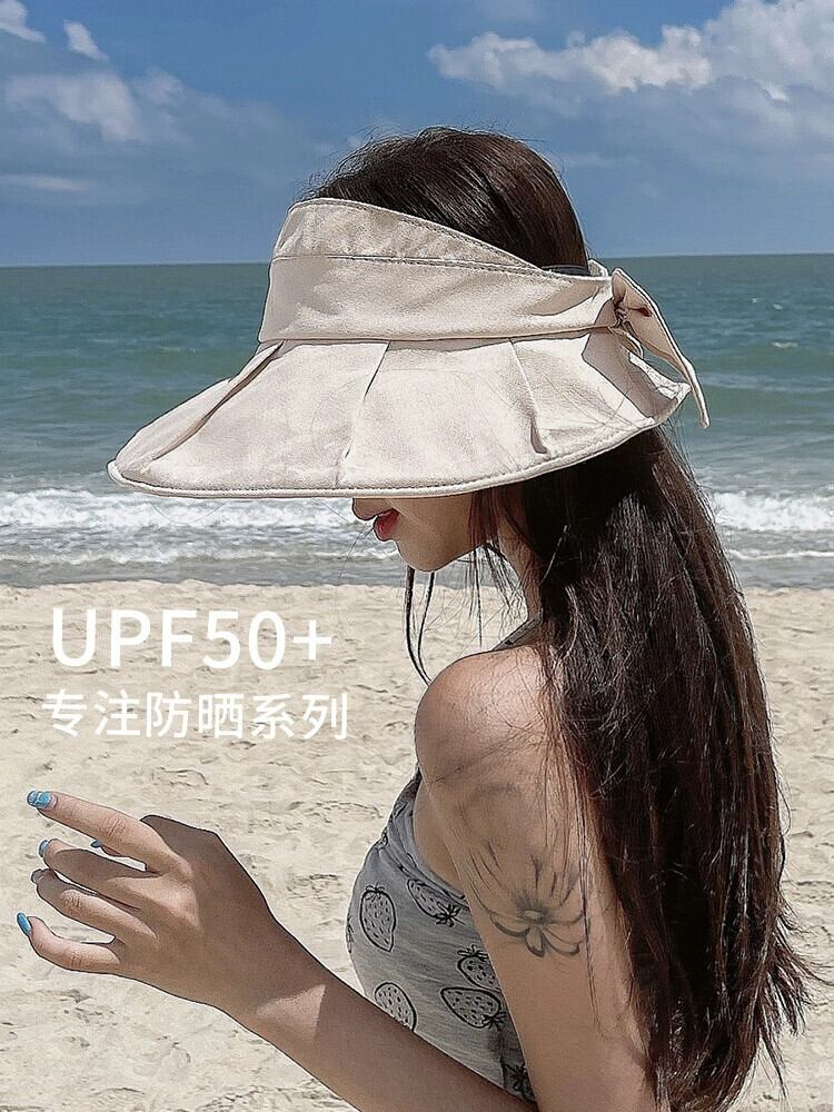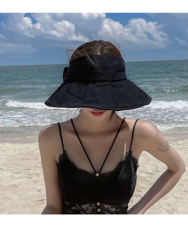 -バリューサンハット〜空のトップサンハット女性の夏の抗UVカバーフェイスビッグエッジボウサンハット リボン 帽子 サマー 夏物 15dd75477600685
