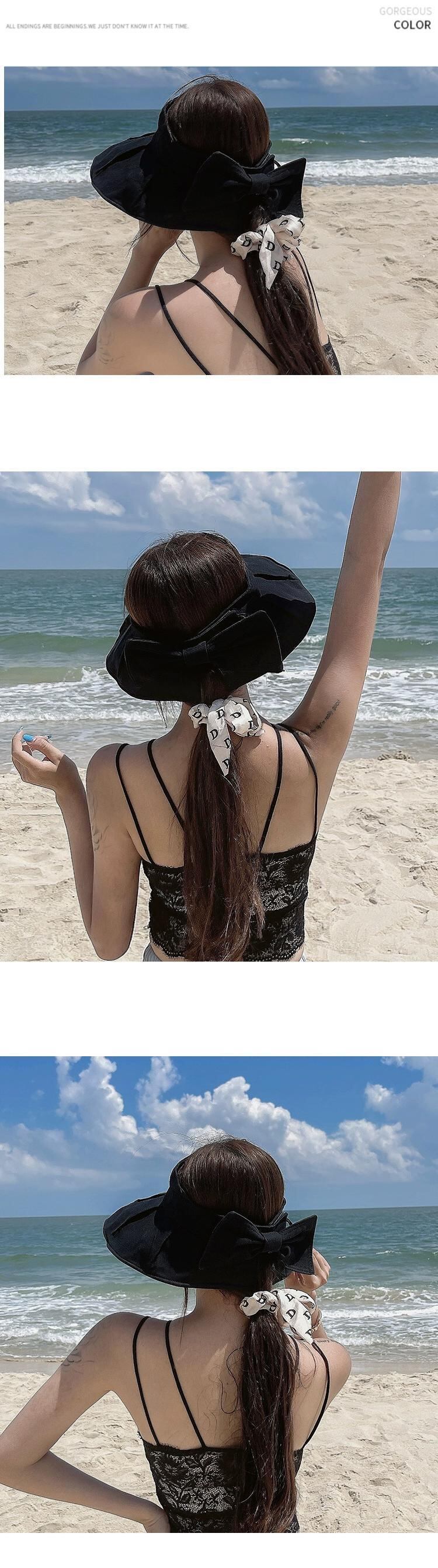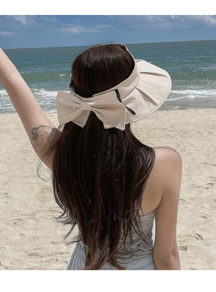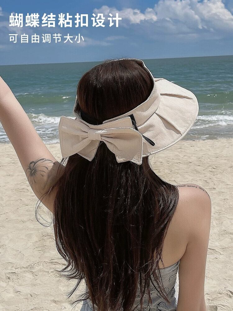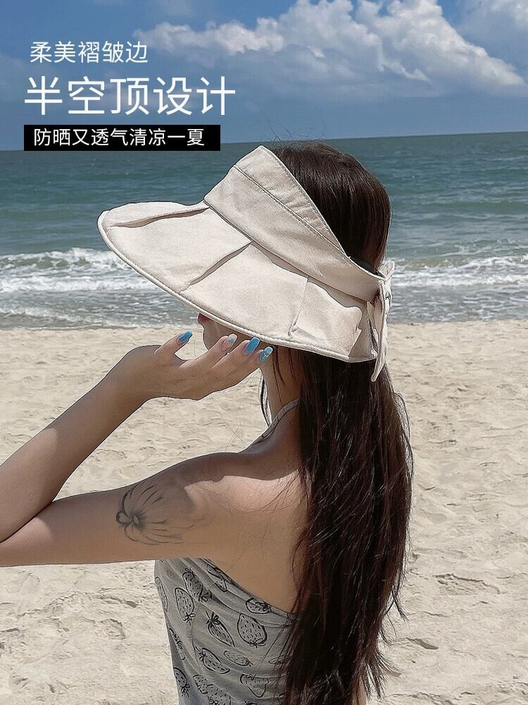 -バリューサンハット〜空のトップサンハット女性の夏の抗UVカバーフェイスビッグエッジボウサンハット リボン 帽子 サマー 夏物 15dd75477600685