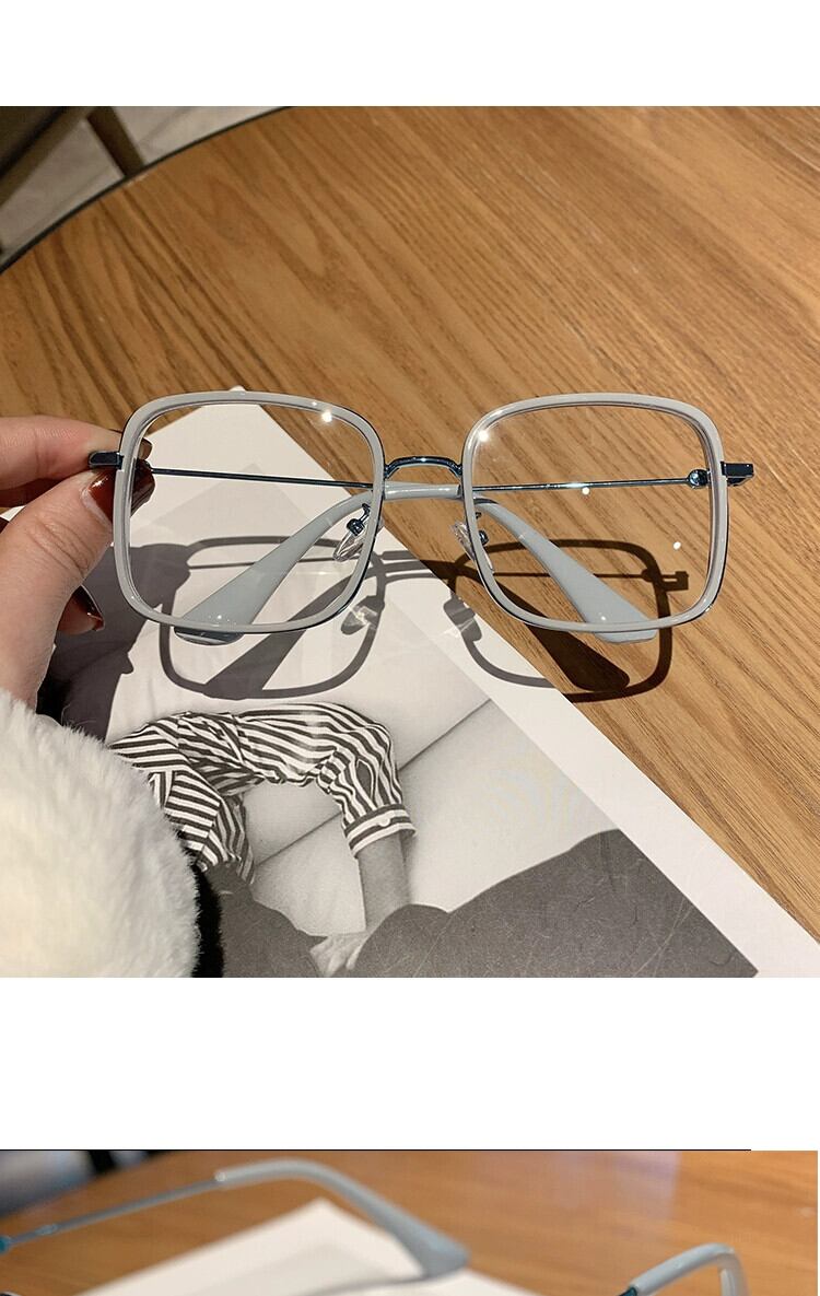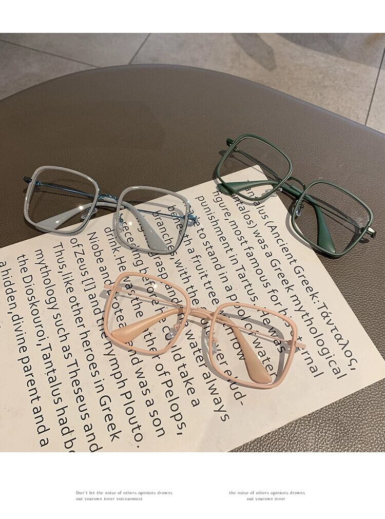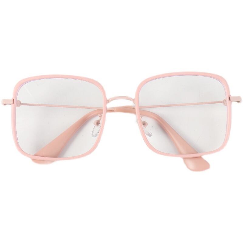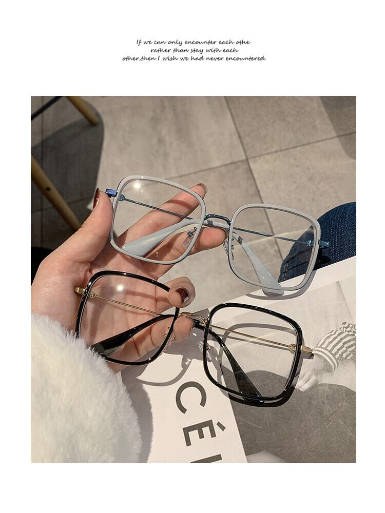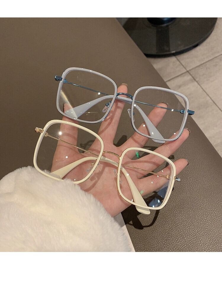 ネット赤無地小顔女性丸顔バージョン個性ファッションスクエアフレームフラットライトミラー抗青色光抗放射線ベージュフレーム潮 レッド ブルー スクウェア 15dd56377675287