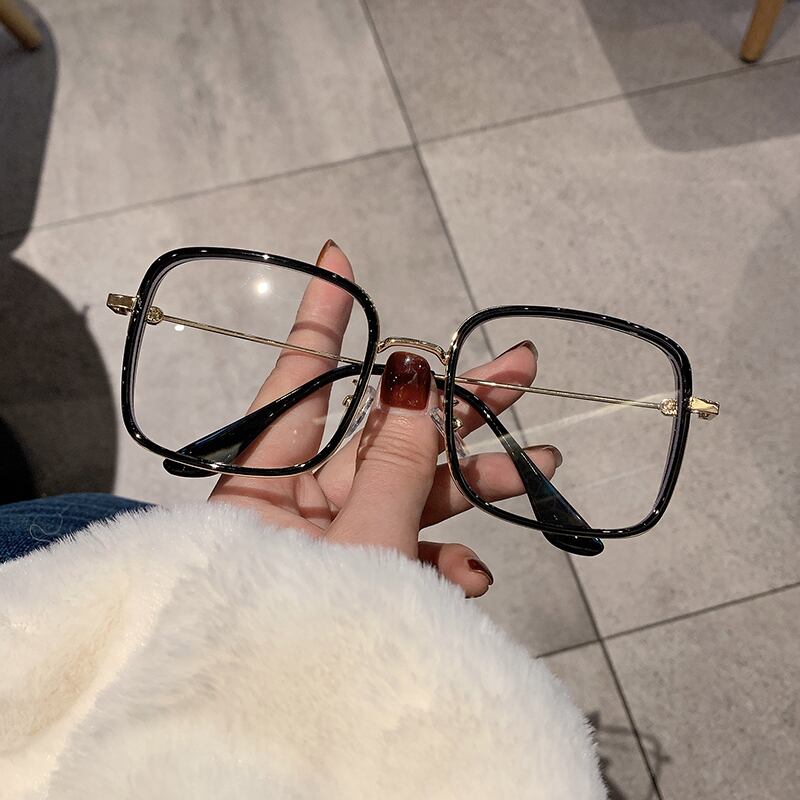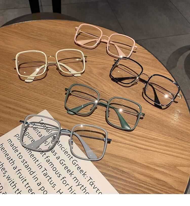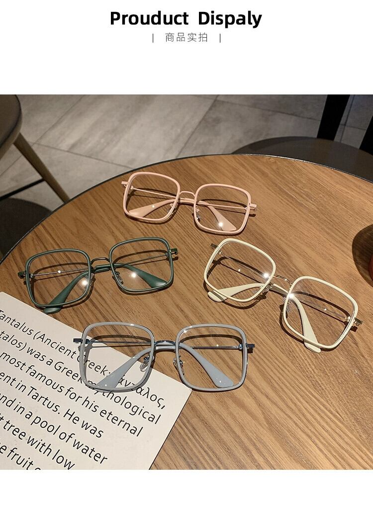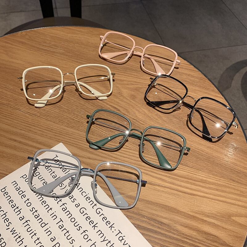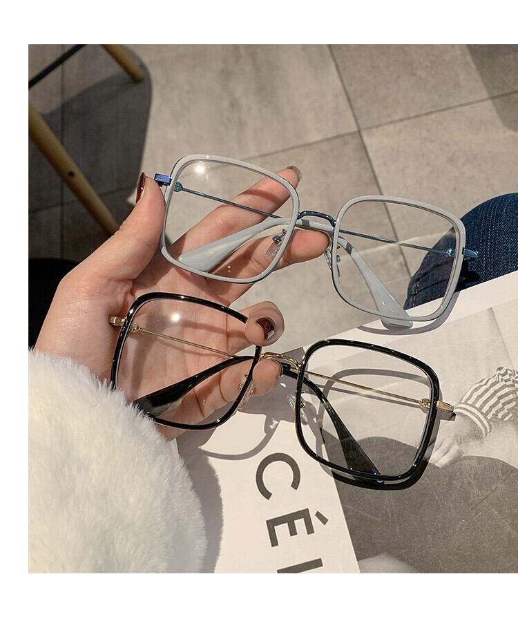 ネット赤無地小顔女性丸顔バージョン個性ファッションスクエアフレームフラットライトミラー抗青色光抗放射線ベージュフレーム潮 レッド ブルー スクウェア 15dd56377675287