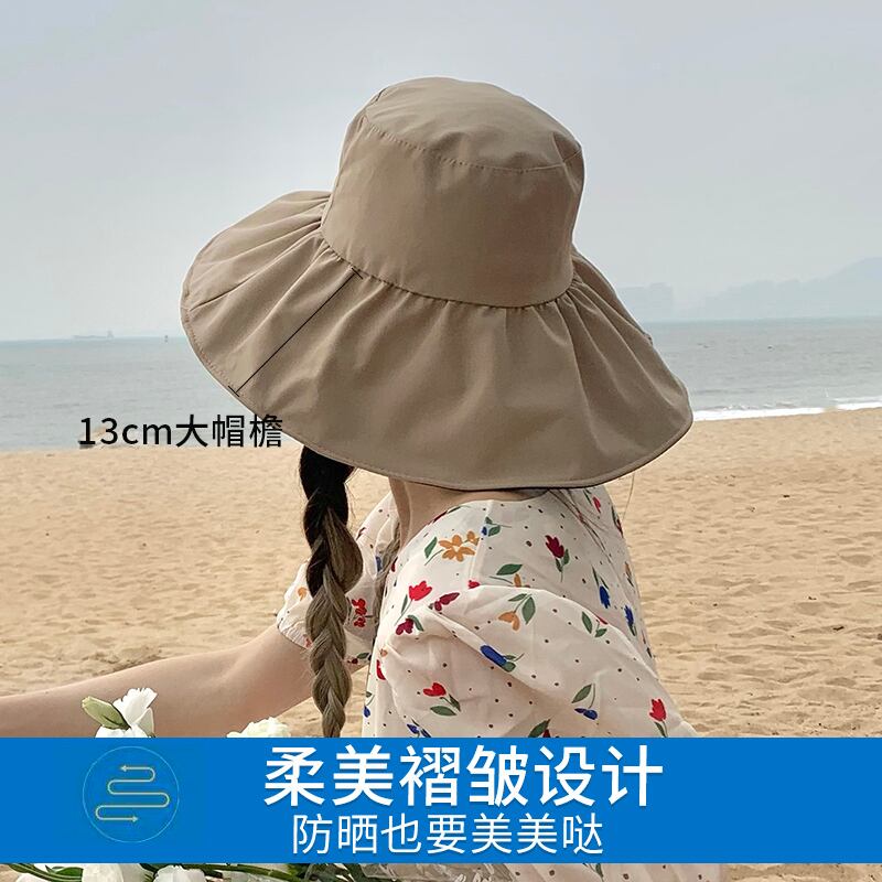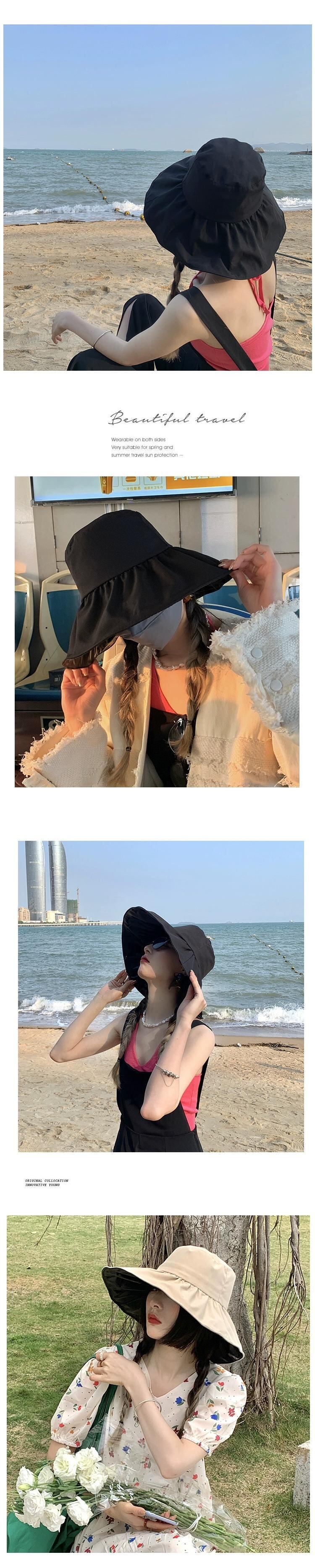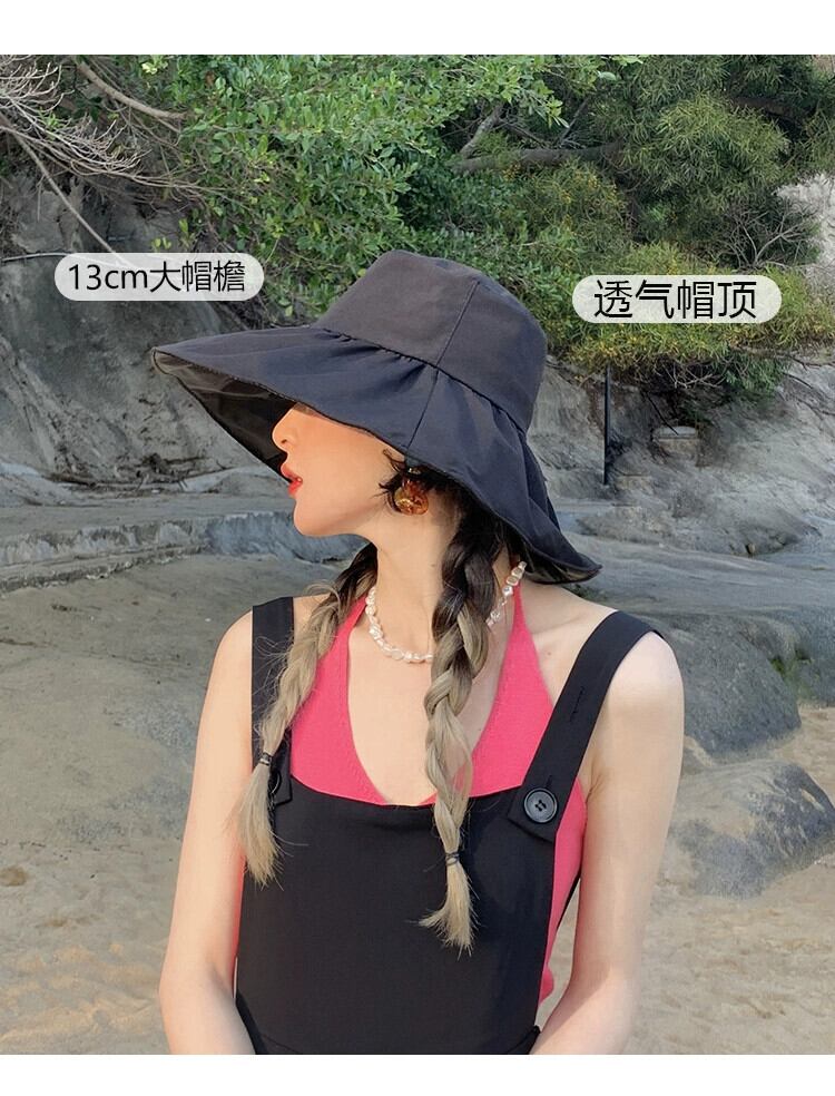 黒接着剤日焼け止め太陽の帽子抗紫外線夏大きなつば太陽の帽子カバー顔ビッグエッジ uv 漁師の帽子女性の夏 ブラック サマー 夏物 15dd25834736290